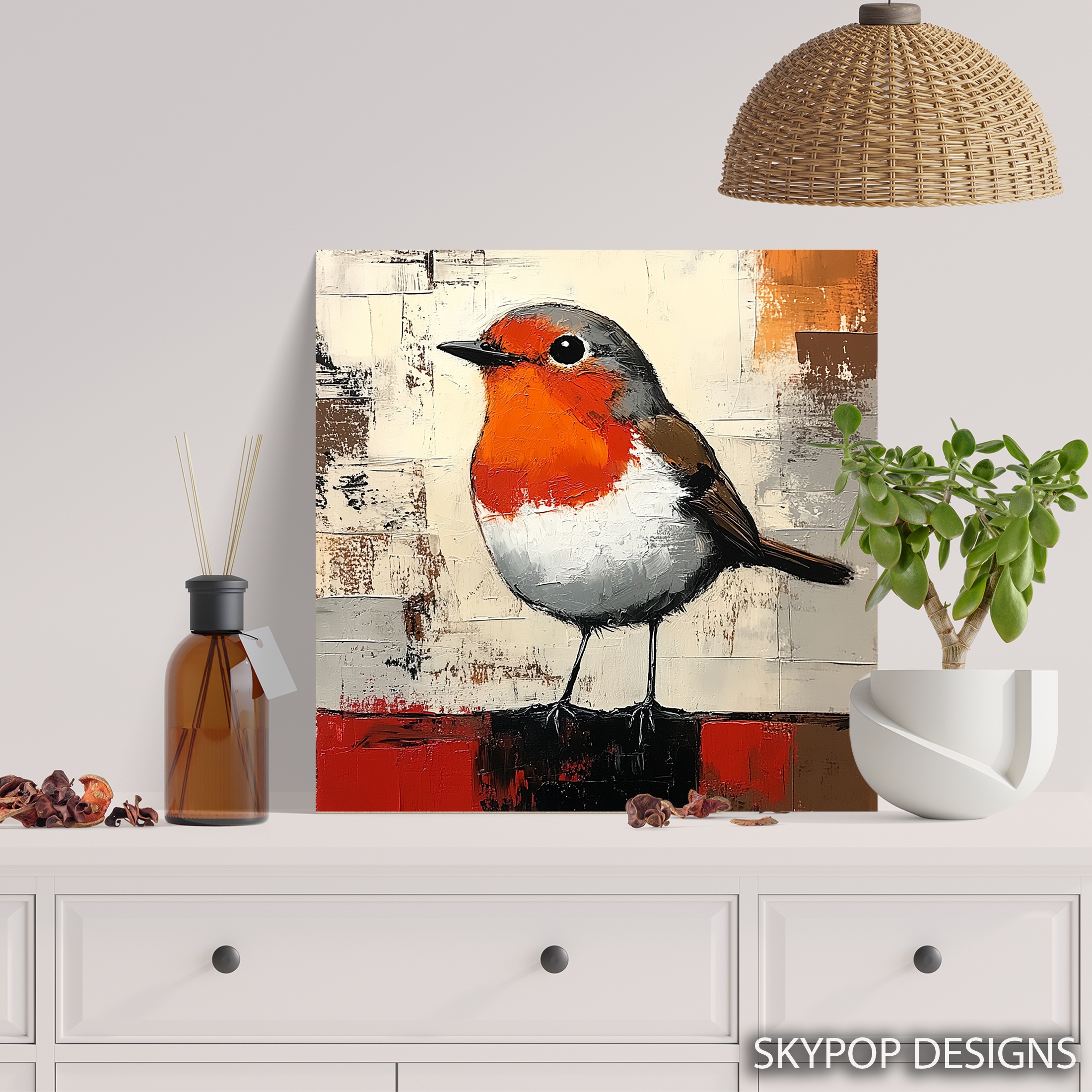 Bring the charm of nature indoors with this striking robin canvas wall art. The vibrant orange-red breast of the bird pops against a textured, neutral background, creating an eye-catching focal point for any room. This modern bird poster perfectly captures the essence of a robin, from its round body to its alert, beady eye. Ideal for nature lovers and bird enthusiasts, this canvas print adds a touch of rustic elegance to contemporary living rooms or Scandinavian-inspired dining areas. The bold colors and clean lines make it a versatile piece that complements various decor styles, from minimalist to farmhouse chic. Perfect as a standalone statement or as part of a gallery wall, this robin artwork brings a slice of the outdoors into your home. The high-quality printing ensures every brushstroke and texture is faithfully reproduced, giving depth and character to your space. Whether you’re looking to refresh your kitchen decor or add a pop of color to a neutral office, this robin wall art is sure to uplift and inspire. It’s also an excellent gift for bird watchers or anyone who appreciates the beauty of wildlife. Transform your living space today with this captivating robin canvas that celebrates the simple joy of nature’s beauty.