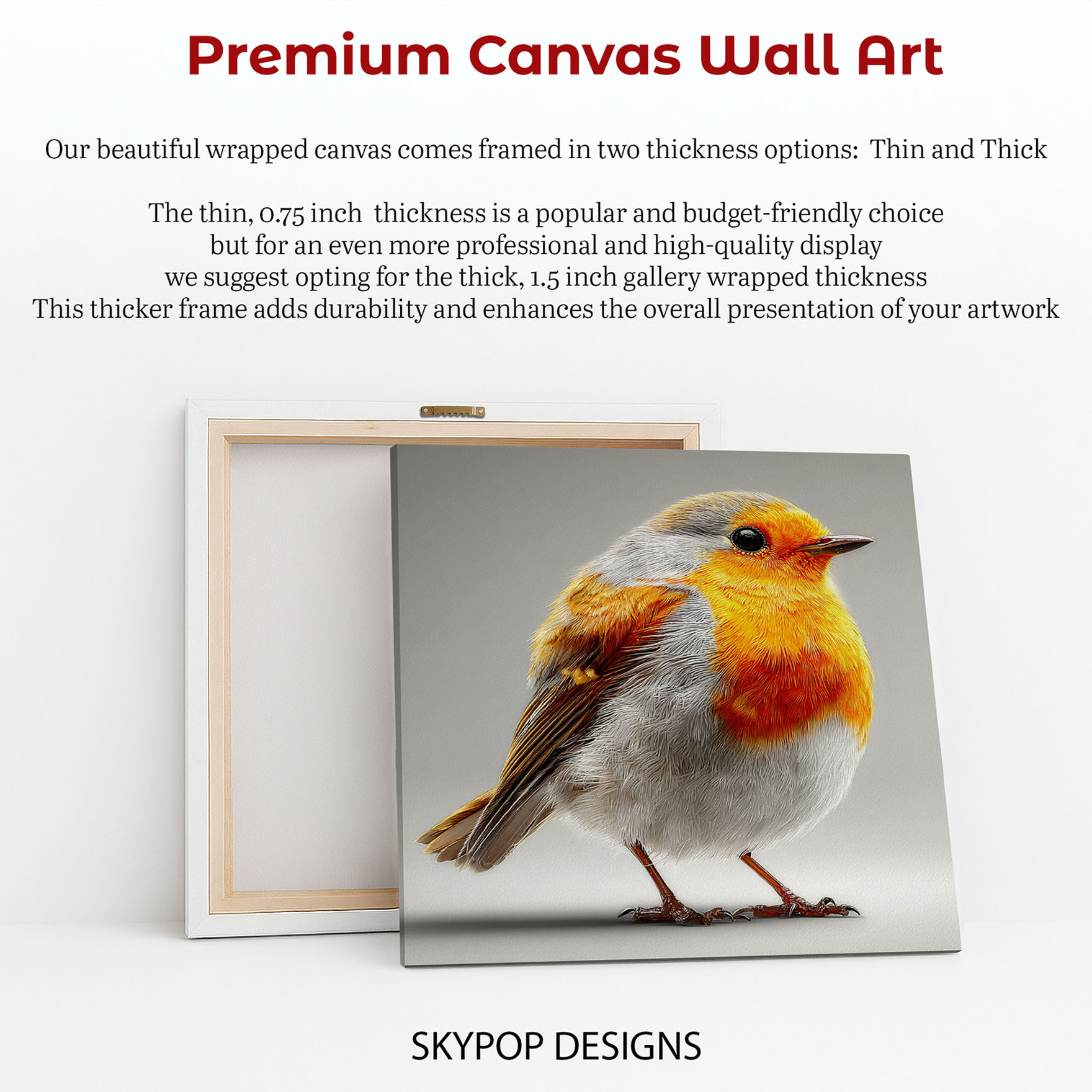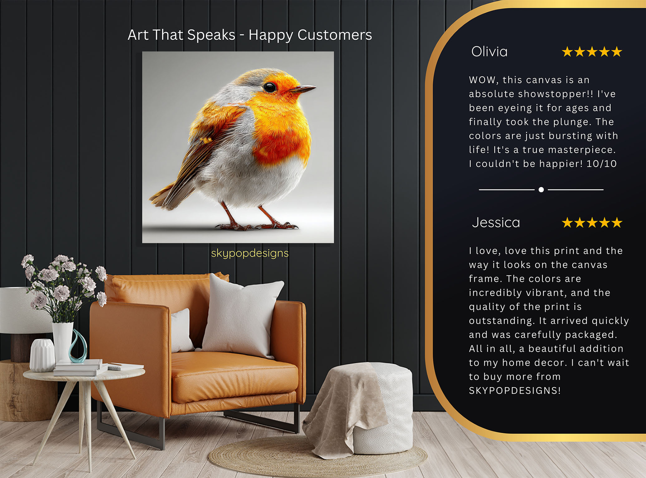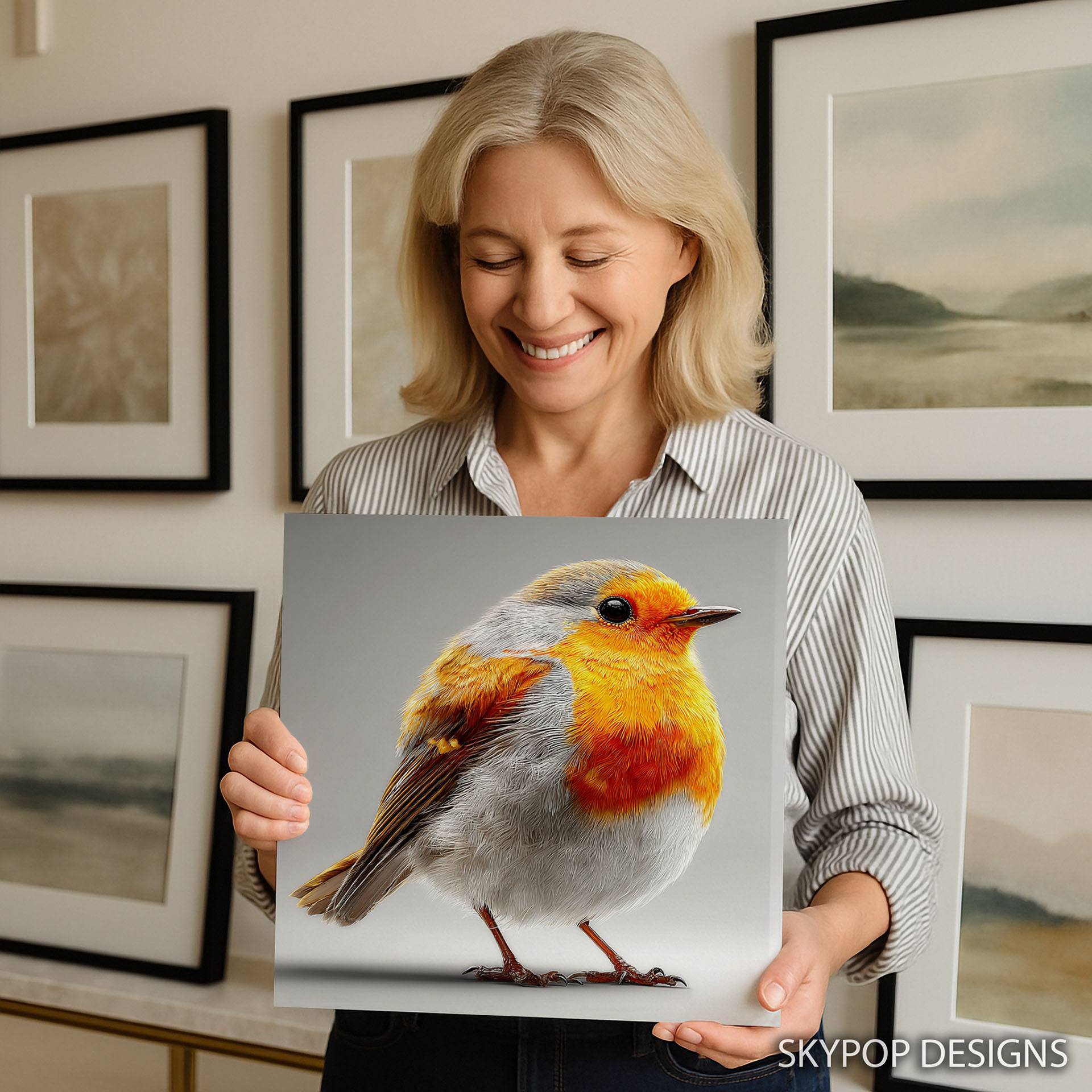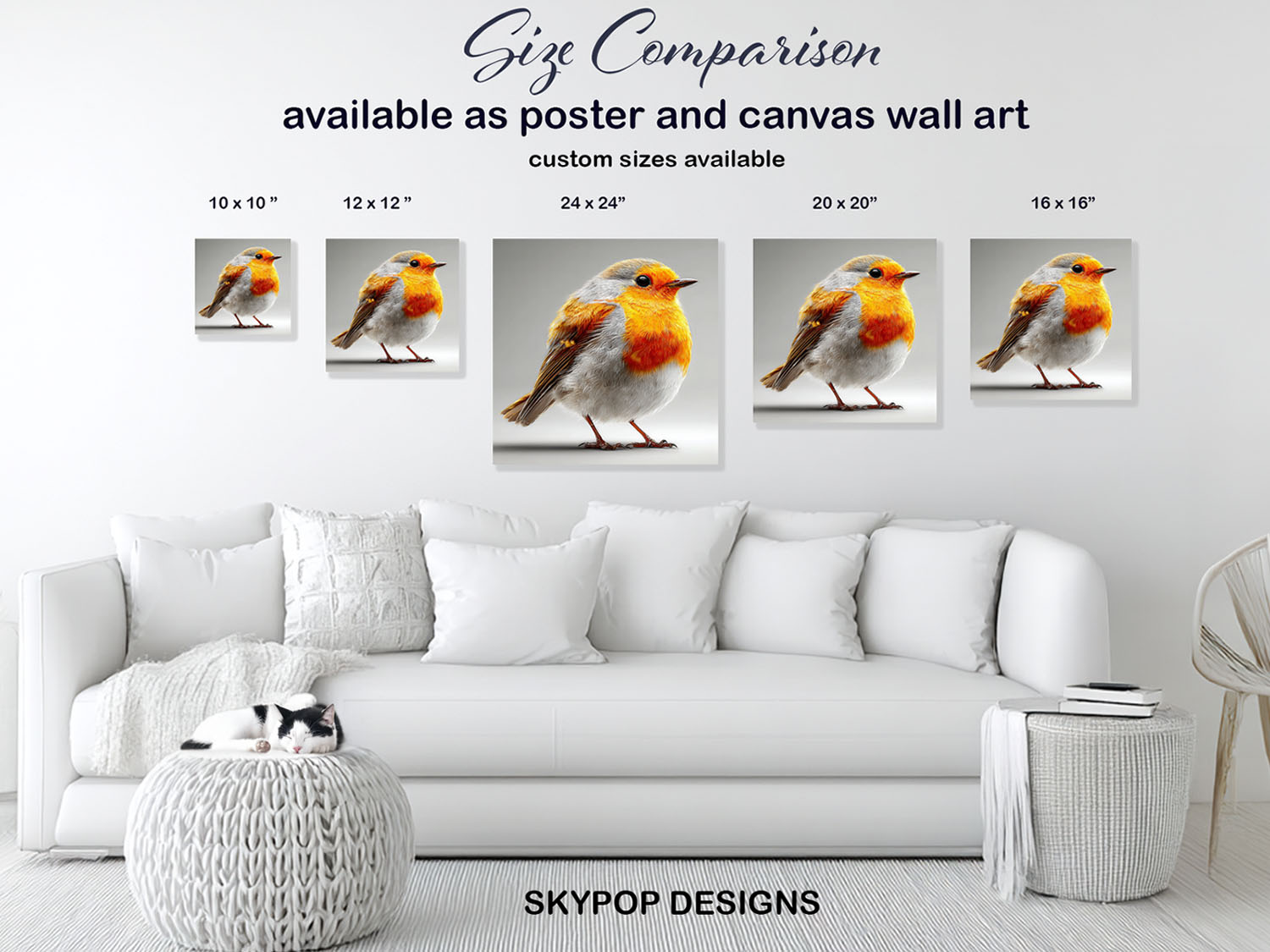 Bring the charm of nature indoors with this captivating robin canvas wall art, a perfect poster to elevate your home’s aesthetic. This stunning piece showcases a vibrant robin in exquisite detail, offering a striking focal point for any space. Its contemporary art style blends seamlessly with modern and Scandinavian decor, while also adding a touch of whimsy to bohemian interiors. The warm orange and soft grey tones of the robin bring a cheerful yet grounding energy, ideal for creating a welcoming atmosphere in your living room or a cozy retreat in your bedroom. This animal art is more than just decoration; it’s an invitation to connect with the simple beauty of the natural world. The high-quality printing ensures every feather is lifelike, making this canvas wall art a durable and cherished addition to your home decor. Perfect for a child’s room or a warm entryway accent, this robin artwork inspires joy and wonder. It serves as an exceptional gift for bird lovers, art enthusiasts, and anyone looking to infuse their home with natural beauty and contemporary flair. Whether you’re seeking unique wall art for a modern home or a delightful piece for rustic-chic settings, this robin print offers versatile appeal. Transform your space and celebrate the outdoors with this eye-catching canvas wall art that resonates with warmth and personality. Enhance your home decor collection today with this delightful robin bird art.
