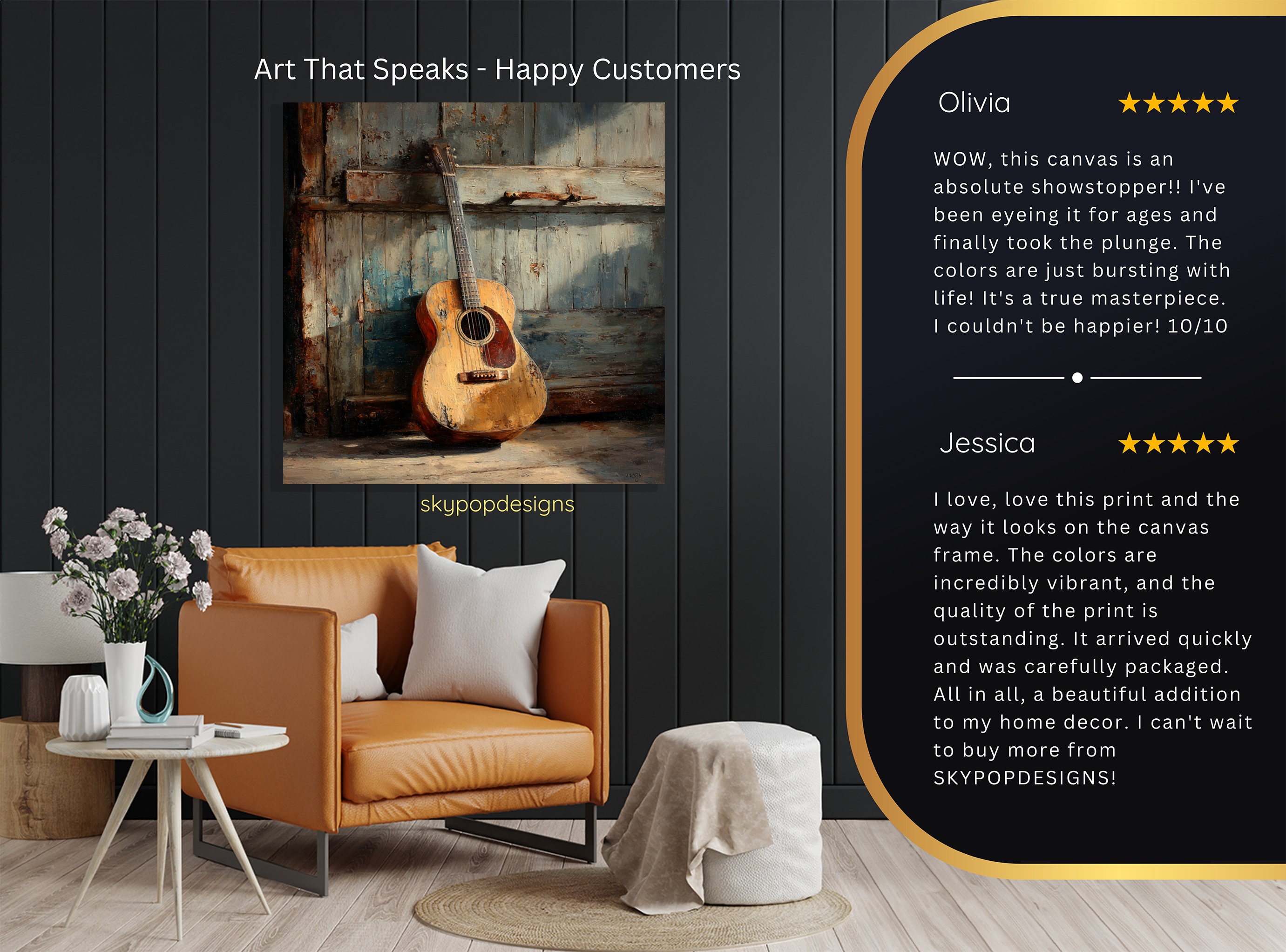At SKYPOPDESIGNS, we specialize in high-quality canvas and poster prints designed to bring sophistication and style to your space. Please note that our designs are not created with 3D textures or as original oil, acrylic, or watercolor paintings; they are instead HD reproductions of original artwork. This approach allows us to offer these visually stunning pieces at competitive prices, ensuring you receive top-tier, maintenance-free art that’s easy to enjoy.