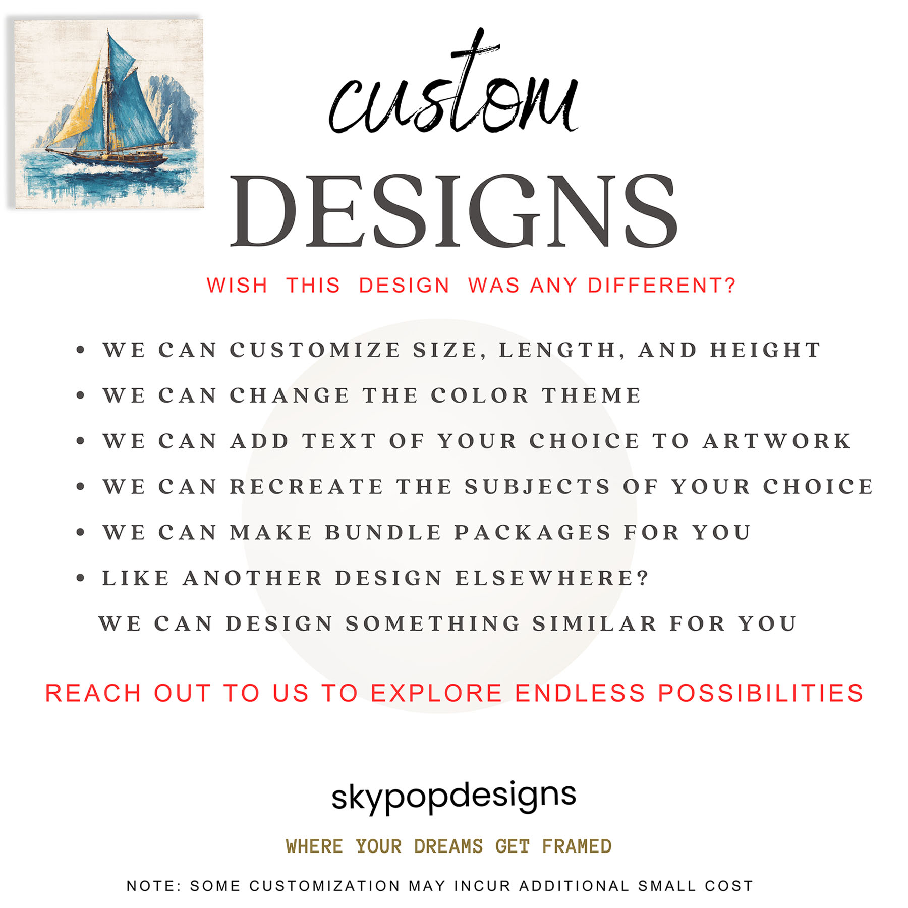 Looking for a custom design, or do you love a particular design but need it in a different size or orientation? Perhaps you’ve found a design elsewhere and wish for us to create something similar for you? Drop us a message! We’re dedicated to meeting your needs and will work closely with you to ensure your vision comes to life.