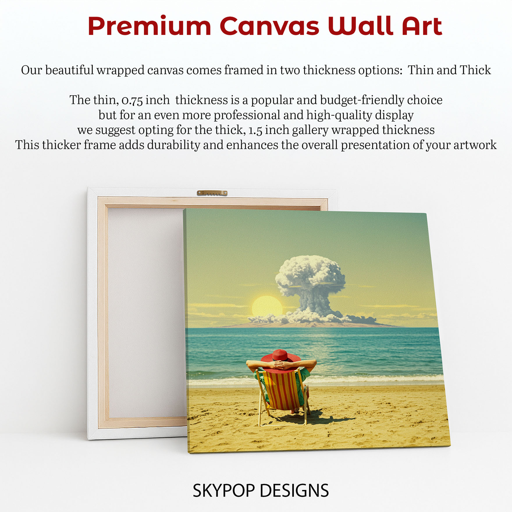 Transform your space with this striking canvas wall art that combines retro beach vibes with a surreal mushroom cloud.