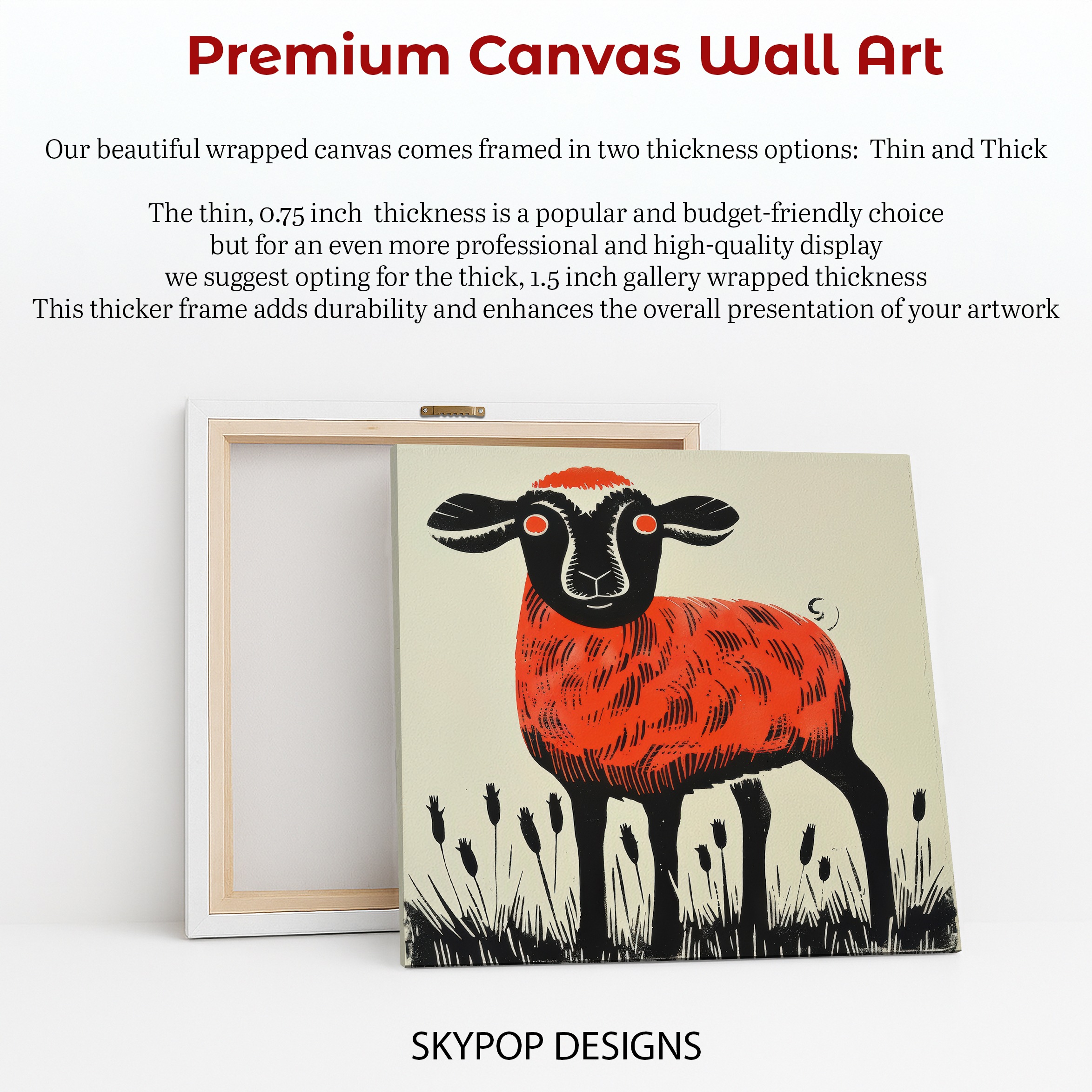 Keywords: Folk Art Sheep Print, Nature Art Wall Decor, Animal Art Canvas, Farmhouse Sheep Art, Rustic Wall Hangings, Country Decor Sheep, Bohemian Chic Art, Red Black White Sheep, Multicolor Sheep Art, Sheep Canvas Print, Living Room Art, Bedroom Decor Sheep, Kitchen Wall Art, Nursery Sheep Poster, Bold Animal Art, Graphic Sheep Art, Captivating Focal Point, Home Personality Art, Cozy Farmhouse Art, Whimsical Nursery Decor, High-Quality Canvas Print, Unique Texture Art, Rustic Decor Accent, Folk Art Inspiration, Modern Home Art, Red Black Cream Art, Warm Playful Charm, Bedroom Retreat Art, Entryway Artistic Statement, Housewarming Gift Idea, Animal Lover Gift, Unique Art Appreciation, Eye-Catching Sheep Art, Nature Indoors Art, Durable Canvas Art