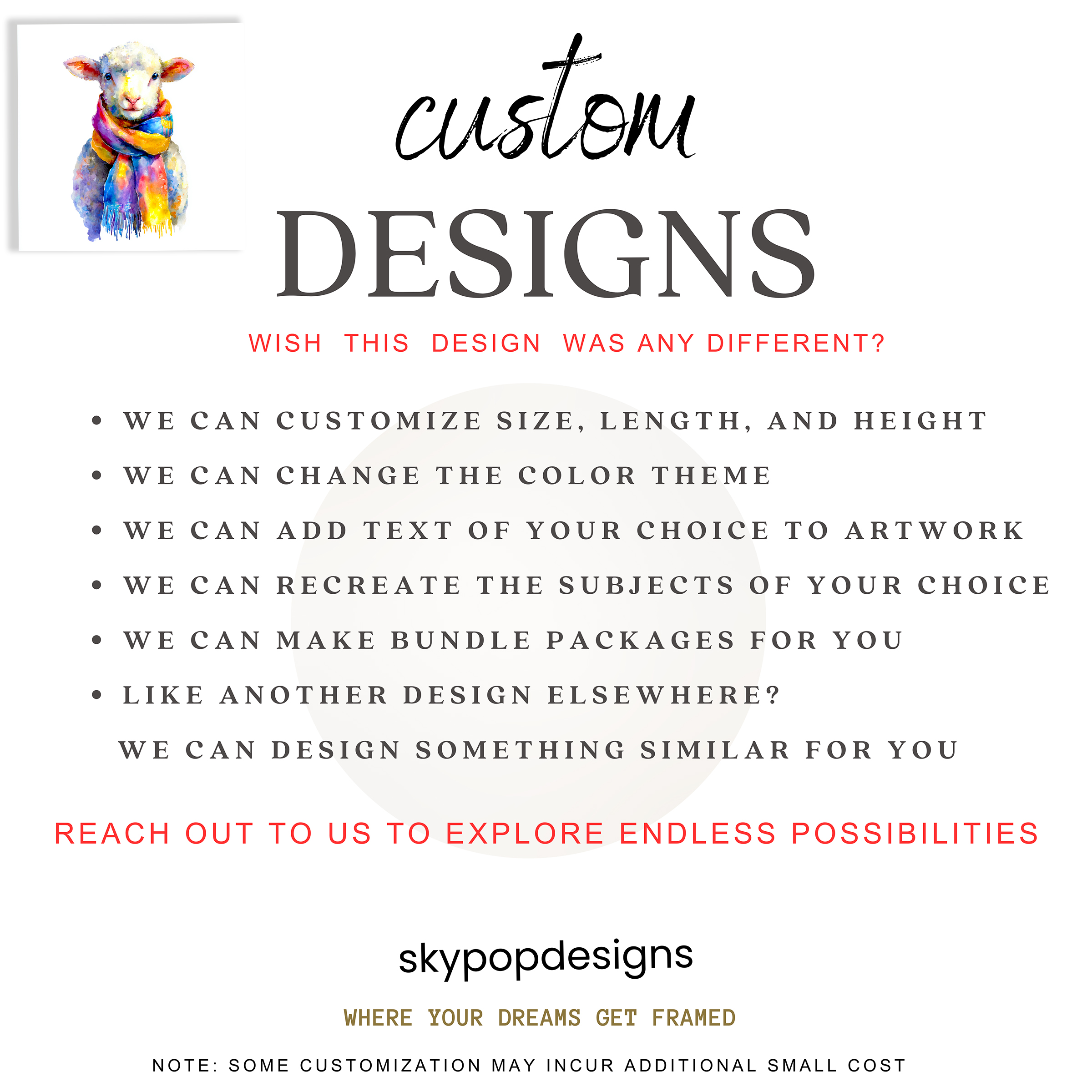 Looking for a custom design, or do you love a particular design but need it in a different size or orientation? Perhaps you’ve found a design elsewhere and wish for us to create something similar for you? Drop us a message! We’re dedicated to meeting your needs and will work closely with you to ensure your vision comes to life.