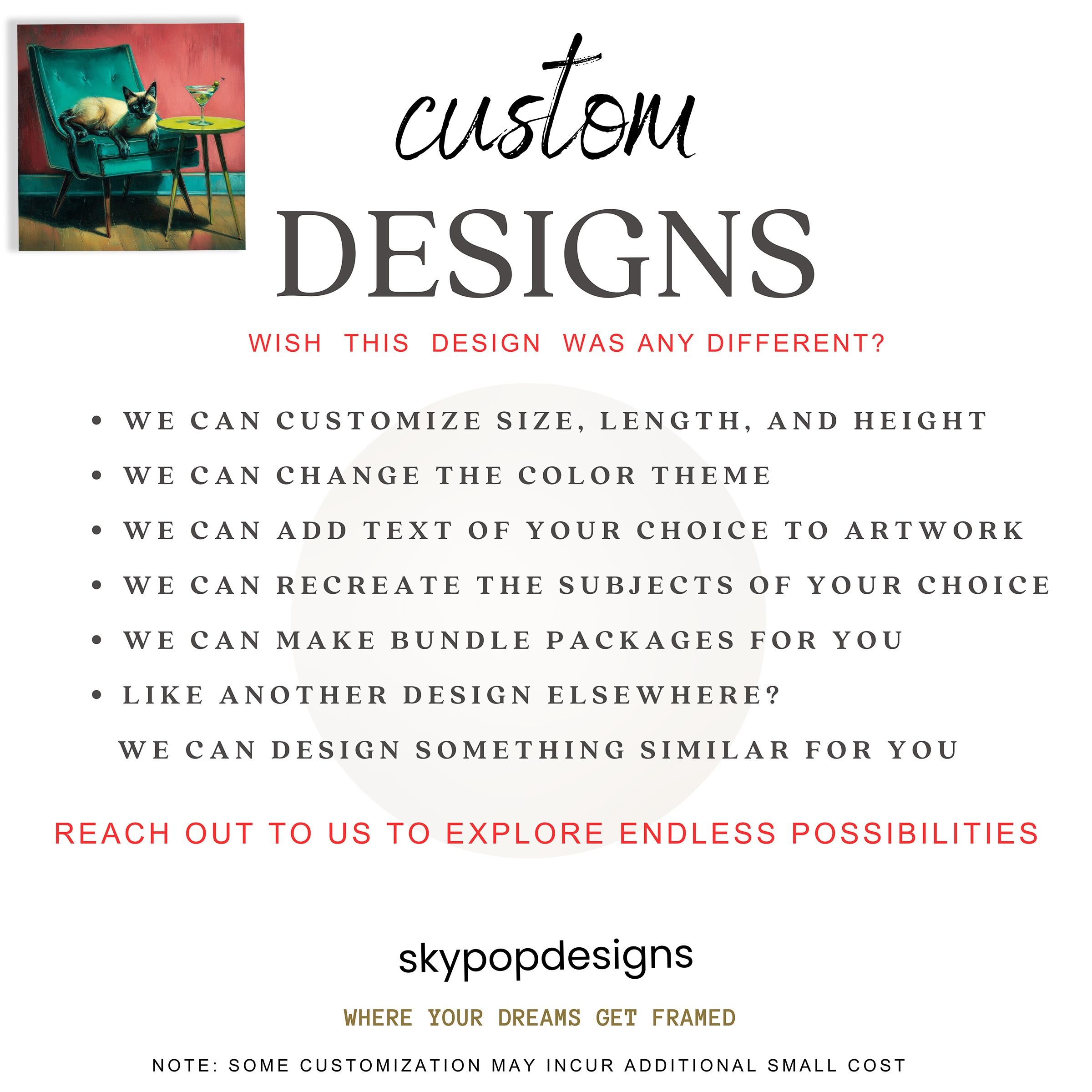 At SKYPOPDESIGNS, we specialize in high-quality canvas and poster prints designed to bring sophistication and style to your space. Please note that our designs are not created with 3D textures or as original oil, acrylic, or watercolor paintings; they are instead HD reproductions of original artwork. This approach allows us to offer these visually stunning pieces at competitive prices, ensuring you receive top-tier, maintenance-free art that’s easy to enjoy.