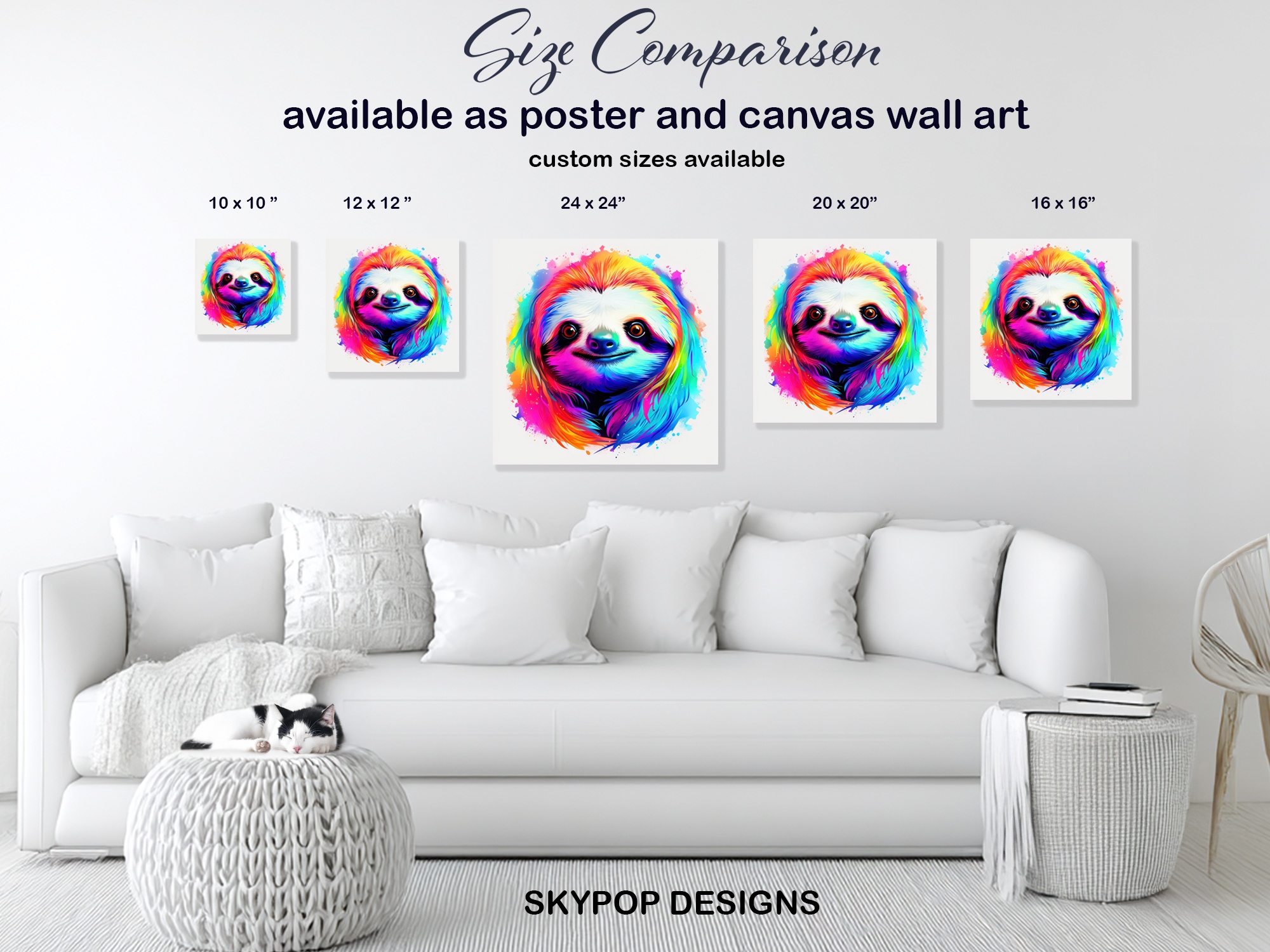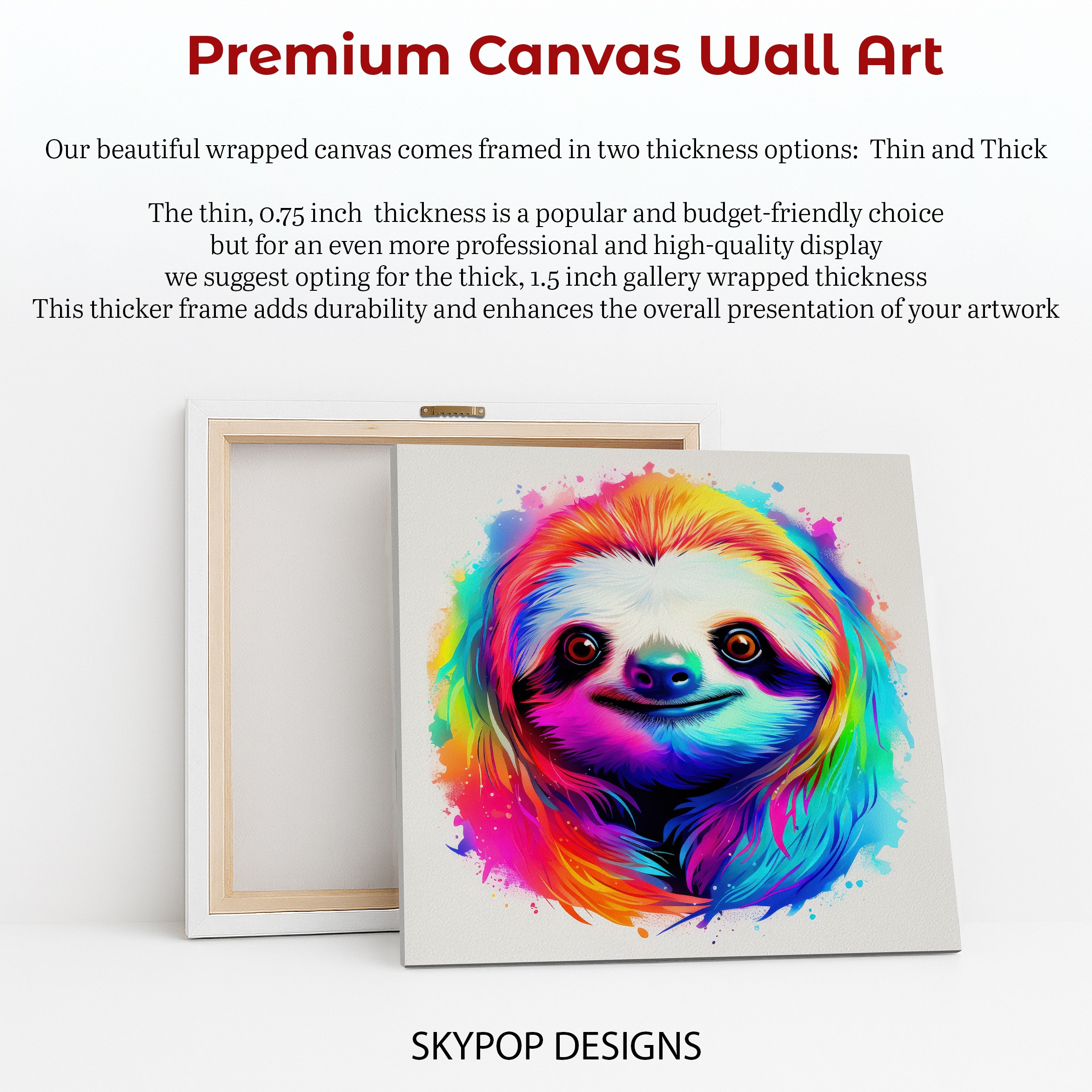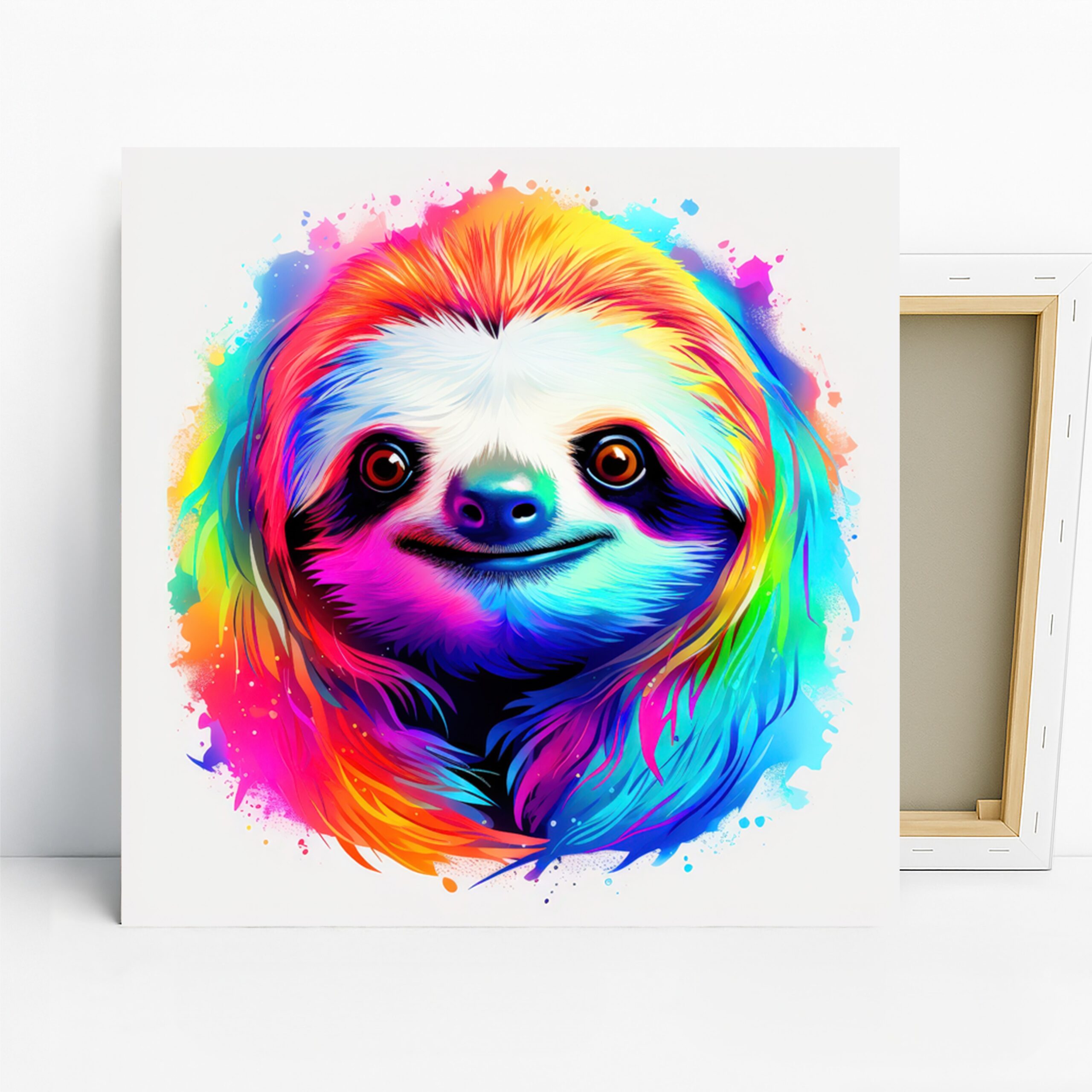 Keywords: Rainbow Sloth Canvas Art, Sloth Wall Art, Animal Art Print, Multicolor Canvas, Contemporary Sloth Art, Pop Art Sloth, Modern Bohemian Decor, Living Room Wall Art, Bedroom Wall Art, Children’s Room Art, Office Wall Decor, Vibrant Canvas Print, Happy Sloth Poster, Colorful Wall Art, Unique Home Decor, Trendy Artwork, Animal Lover Gift, Birthday Gift Idea, Housewarming Gift, Minimalist Art Accent, Playful Wall Art, Whimsical Art Piece, High-Quality Canvas, Artistic Wall Decor, Statement Wall Art, Relaxing Atmosphere Art, Joyful Home Decor, Boho Chic Art, Contemporary Style Art, Sloth Poster Art