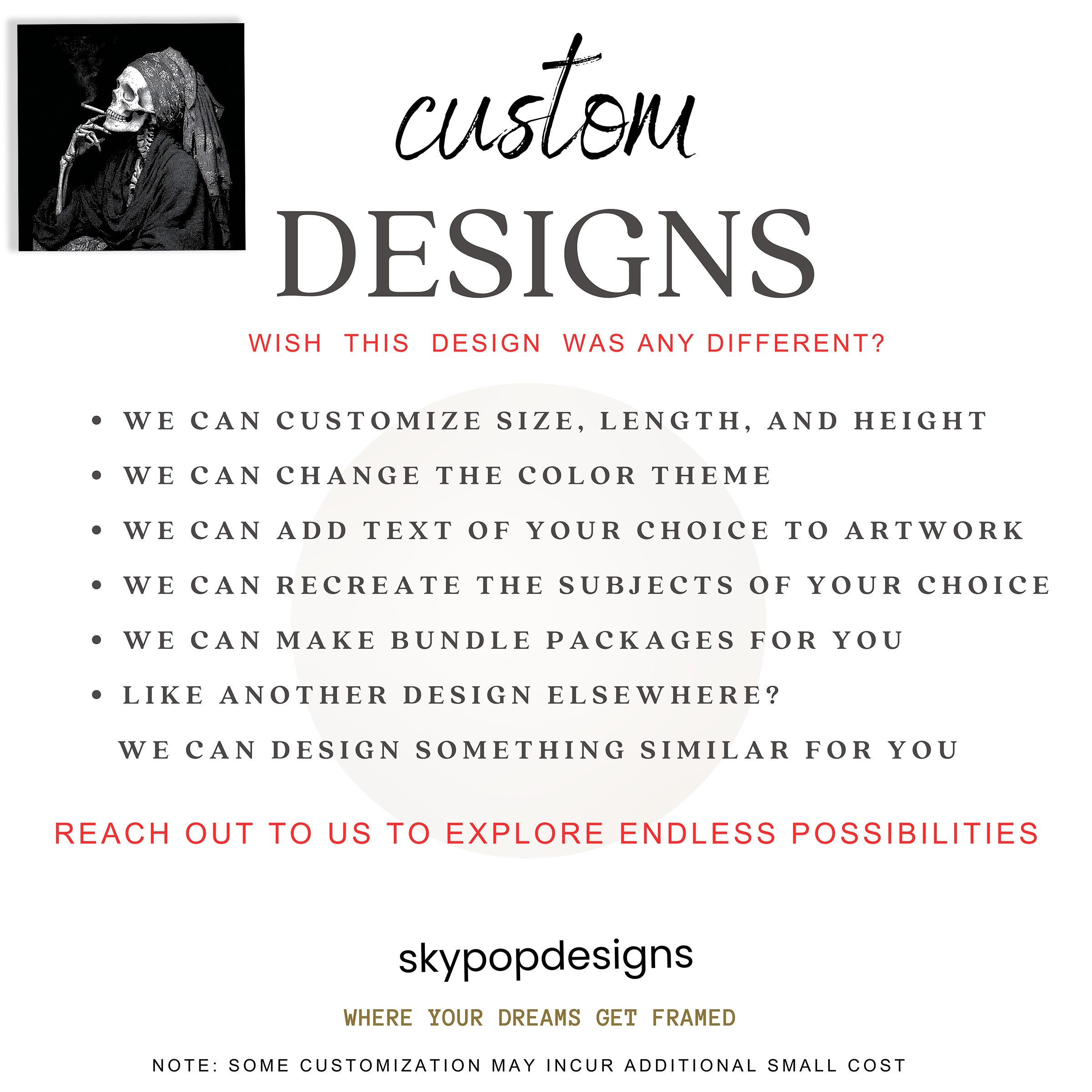 At SKYPOPDESIGNS, we specialize in high-quality canvas and poster prints designed to bring sophistication and style to your space. Please note that our designs are not created with 3D textures or as original oil, acrylic, or watercolor paintings; they are instead HD reproductions of original artwork. This approach allows us to offer these visually stunning pieces at competitive prices, ensuring you receive top-tier, maintenance-free art that’s easy to enjoy.
