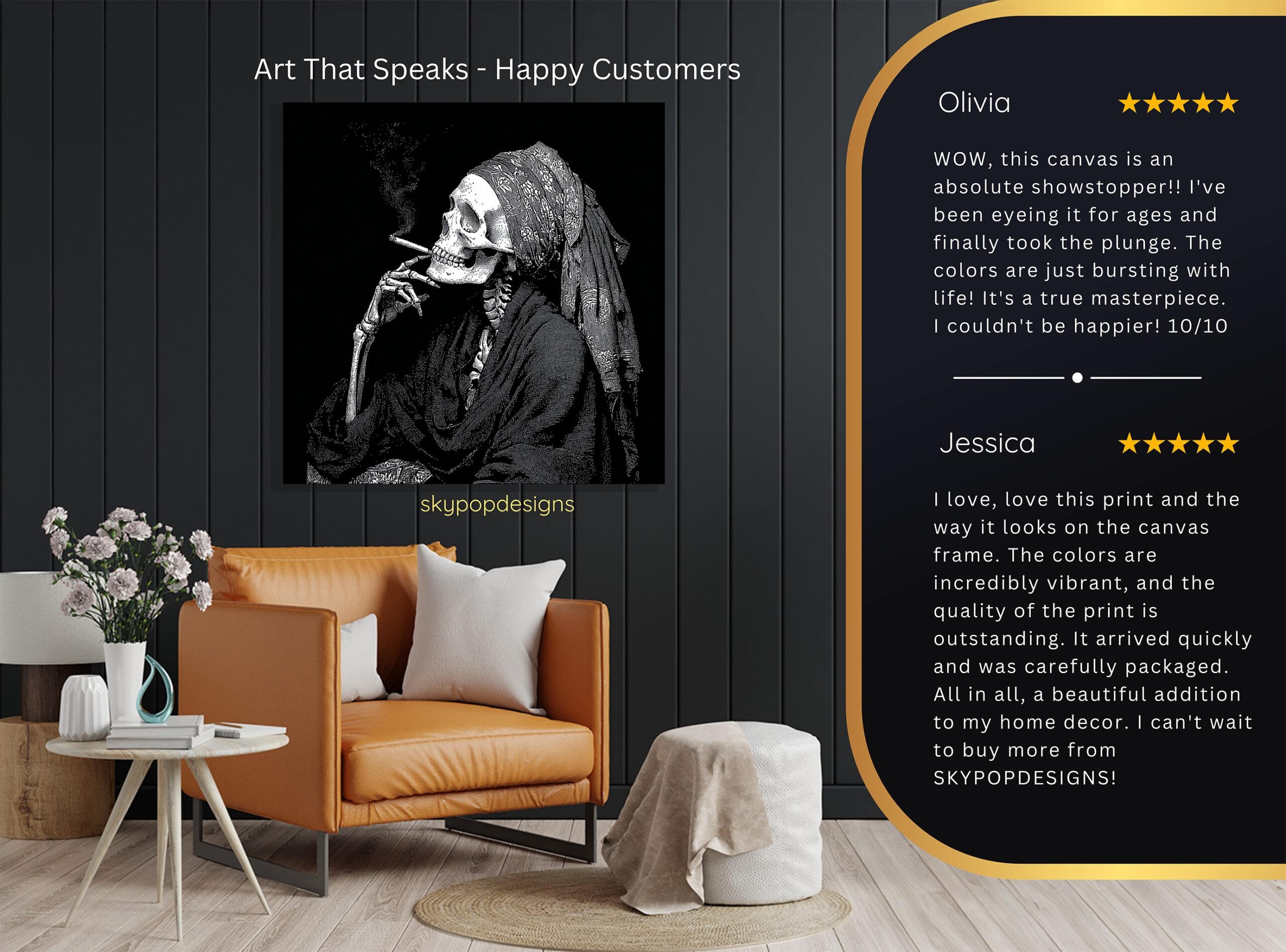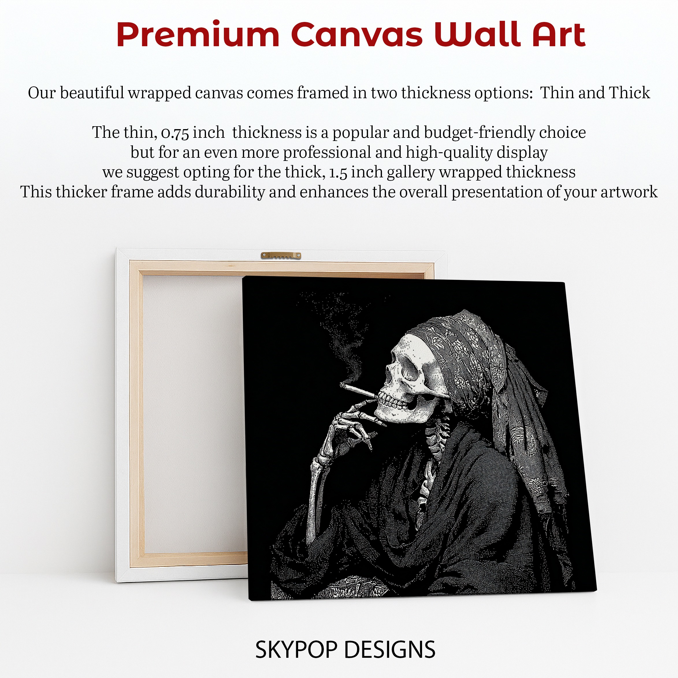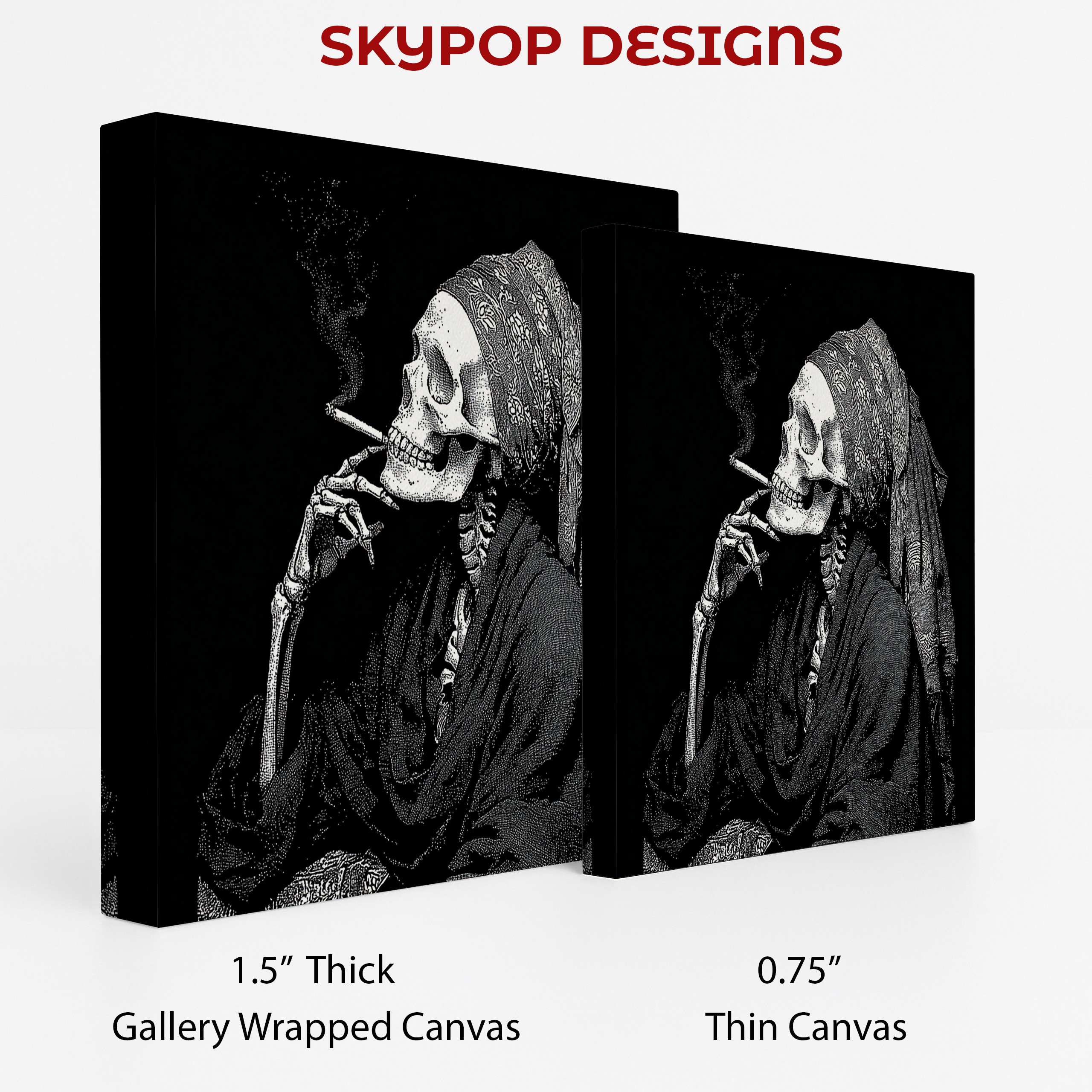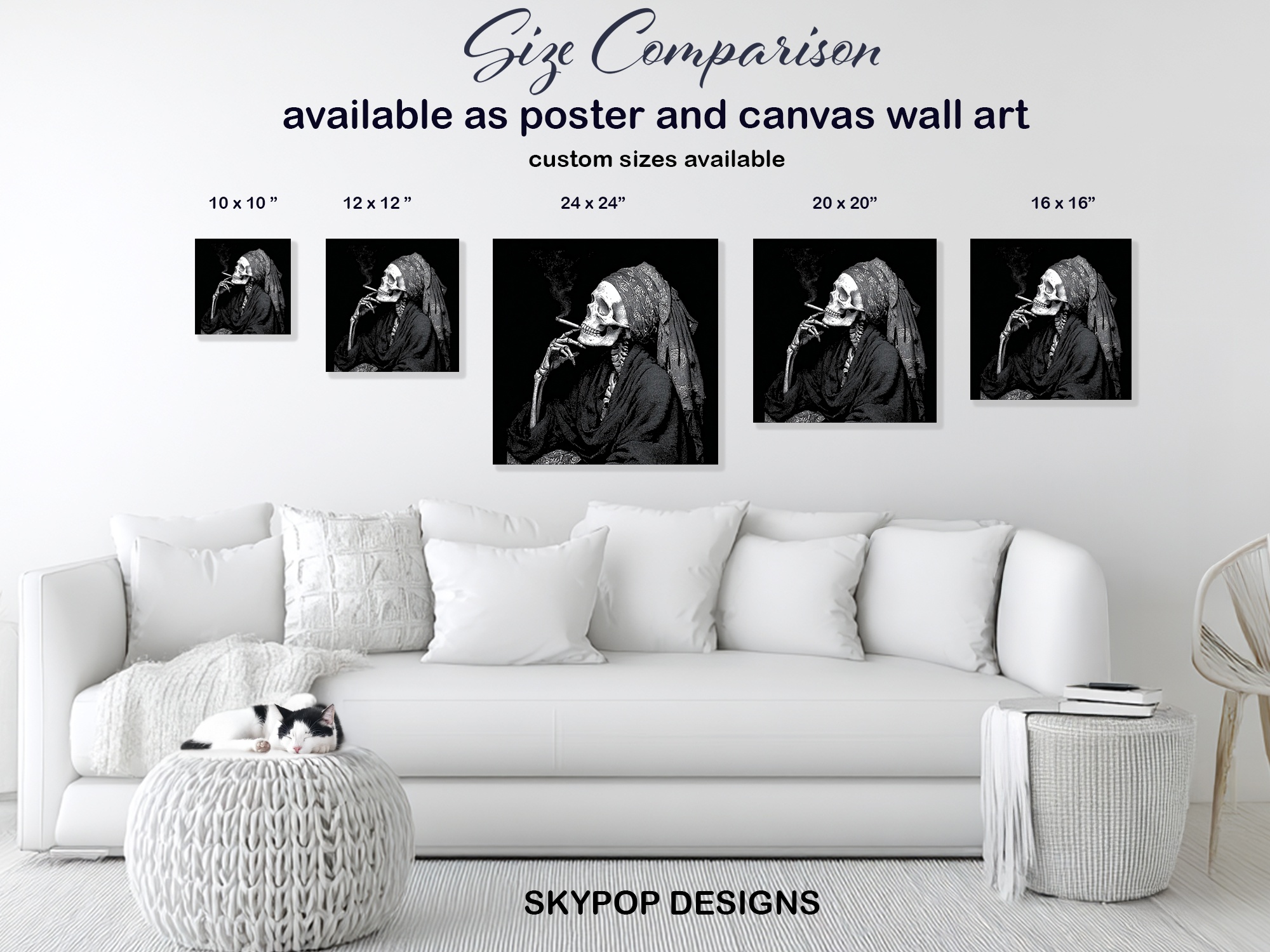 Smoking Skull Art, Canvas or Poster, Gothic Vintage Decor, Living Room Bedroom Office Game Room Wall Art, Black White Grey