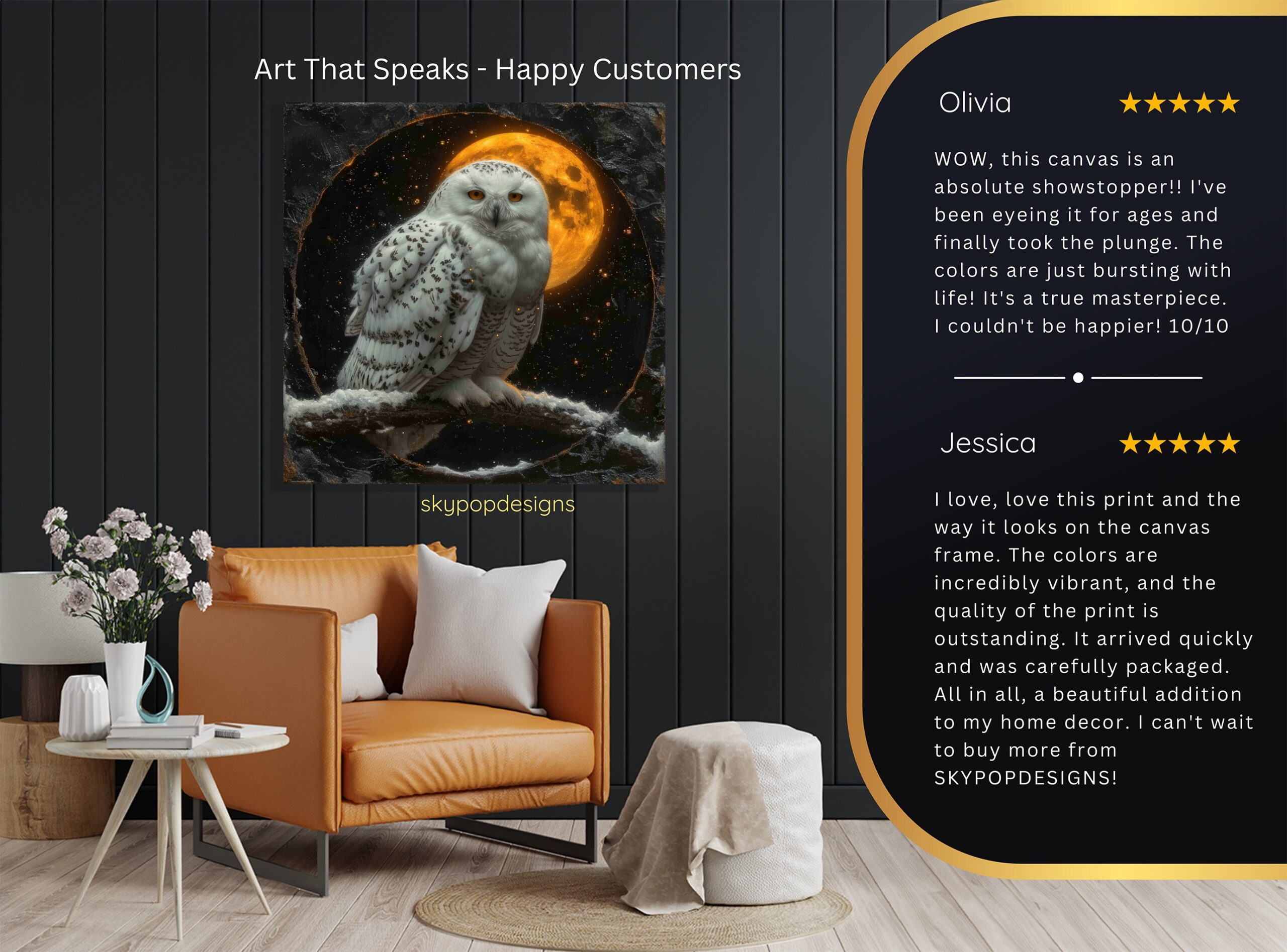Keywords: Snowy Owl Art, Owl Canvas Print, Moonscape Wall Art, Nature Poster, Animal Wall Decor, Black Orange White Gold Art, Bohemian Decor, Modern Decor, Rustic Decor, Living Room Art, Bedroom Art, Entryway Decor, Office Wall Art, Mystical Art, Wildlife Art, Nocturnal Beauty, Starry Sky Art, Full Moon Art, Fine Art Print, Gift for Nature Lover, Housewarming Gift, Birthday Gift, Holiday Gift, Atmospheric Art, Statement Wall Art, Canvas Wall Art, Abstract Animal Art, Traditional Art, Inspiring Art, Home Decor