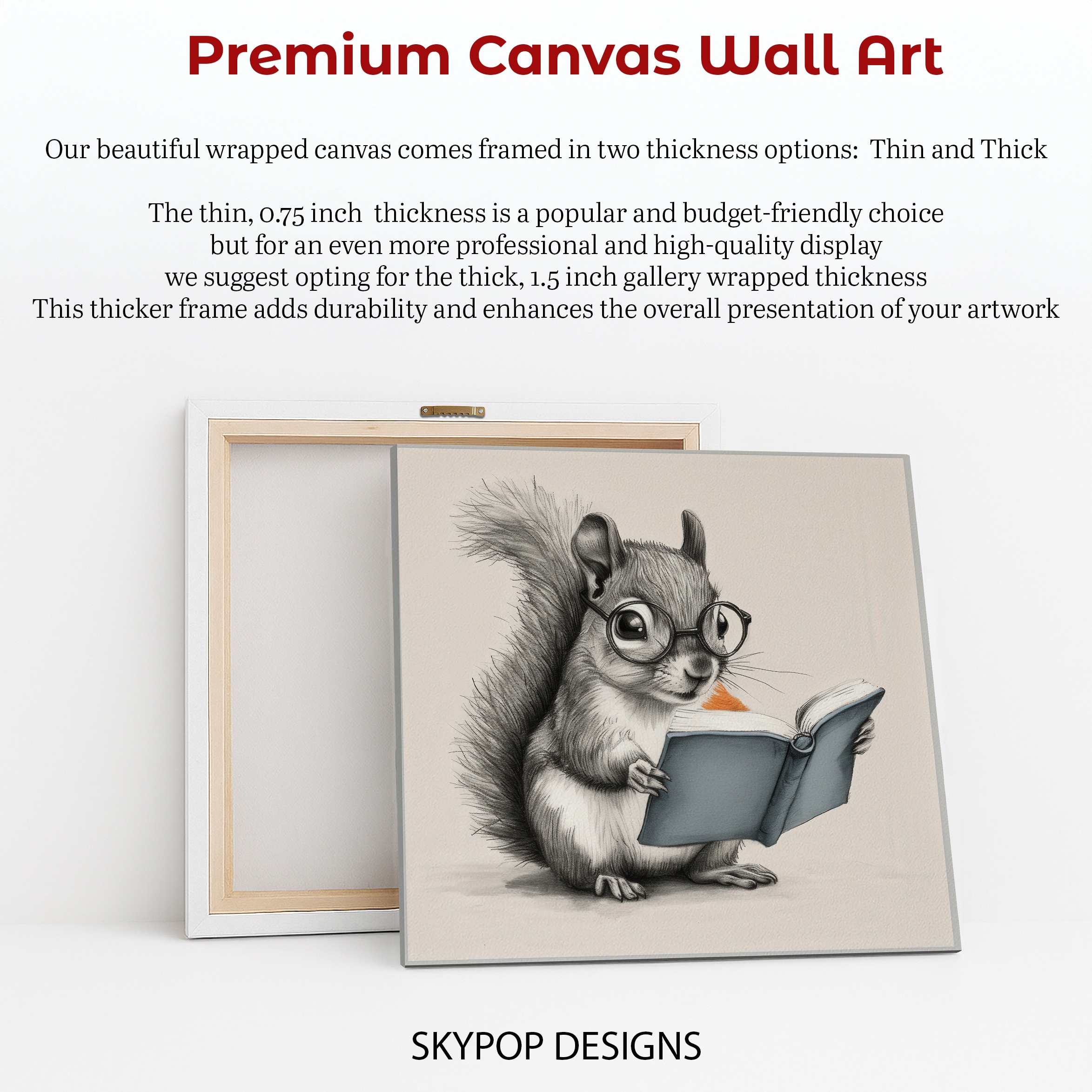 Transform your space with this charming squirrel canvas wall art, featuring a wise squirrel engrossed in a book. This exquisite piece of animal art will elevate any room, showcasing a unique blend of whimsy and nature. The detailed pencil sketch style, with subtle hints of color, creates a captivating visual that’s perfect for book lovers and nature enthusiasts alike. This delightful poster or canvas wall art is ideal for creating a cozy reading nook in your living room or adding character to your office or library. Its sweet depiction of a reading squirrel evokes a sense of calm and intellectual curiosity, perfect for a minimalist or farmhouse decor. The striking contrast between the detailed fur and the serene book sets this piece apart, making it a wonderful conversation starter. Celebrate the joy of learning and the outdoors with this versatile wall art, suitable for a child’s room or a sophisticated study. It’s a perfect gift for housewarmings, birthdays, or any occasion for someone who appreciates charming animal artwork. High-quality printing ensures the intricate details and subtle shading are beautifully preserved on canvas. Enhance your home’s ambiance with this heartwarming squirrel artwork, a delightful addition to any wall. Elevate your decor with this unique piece that brings personality and warmth to your home. Add this charming squirrel canvas wall art to your collection today and inspire your inner bookworm.