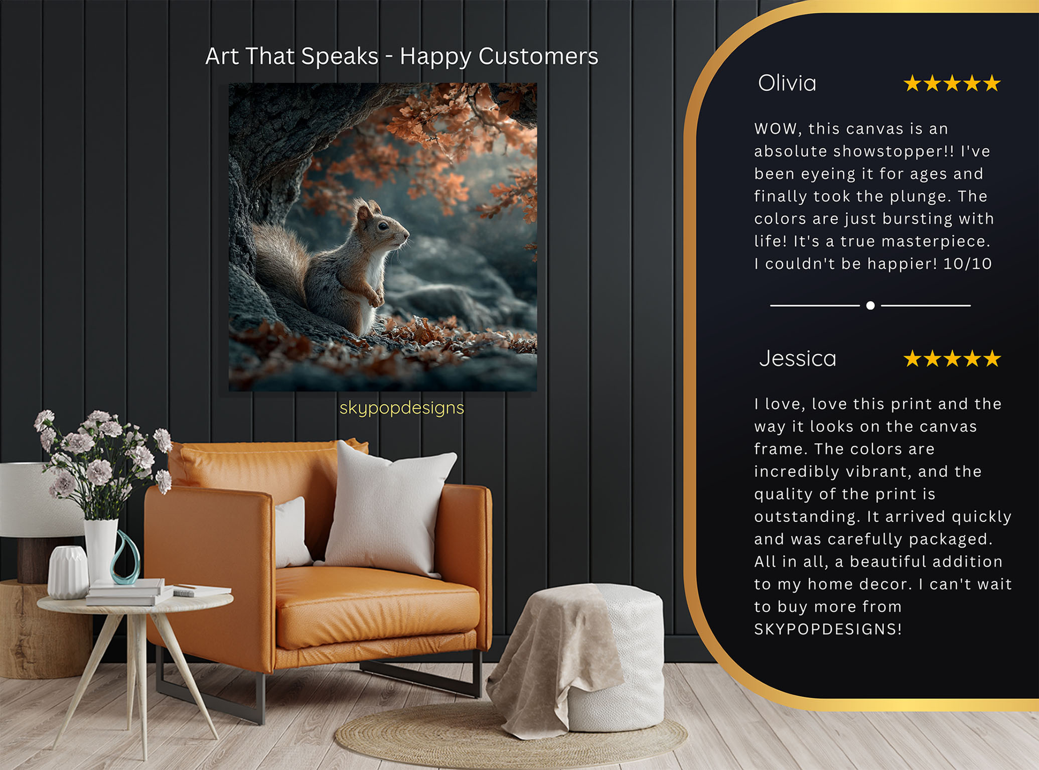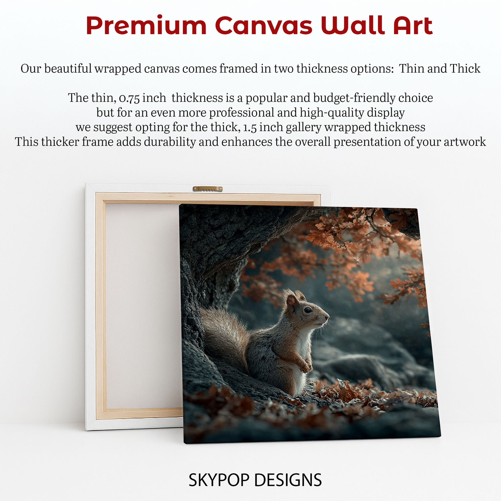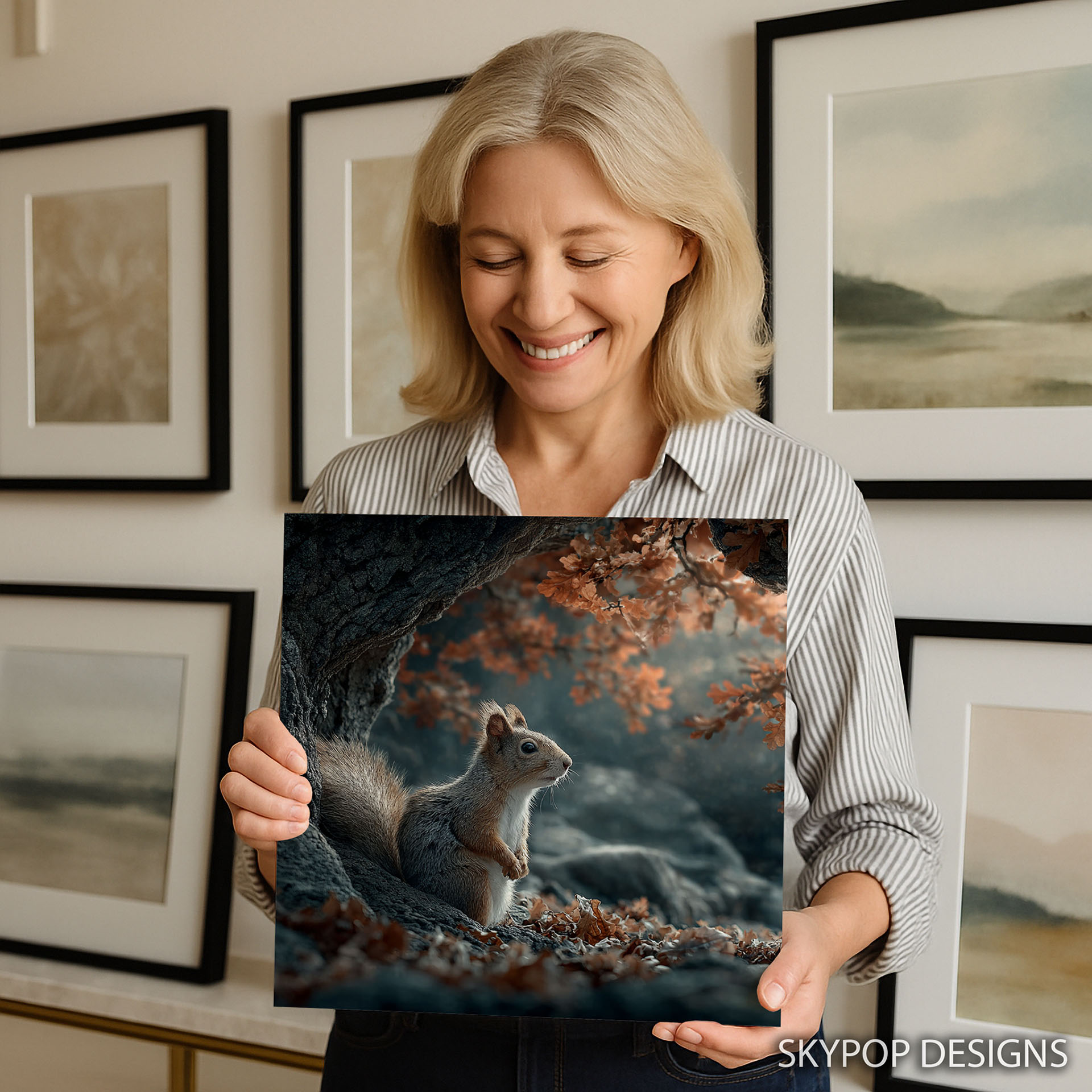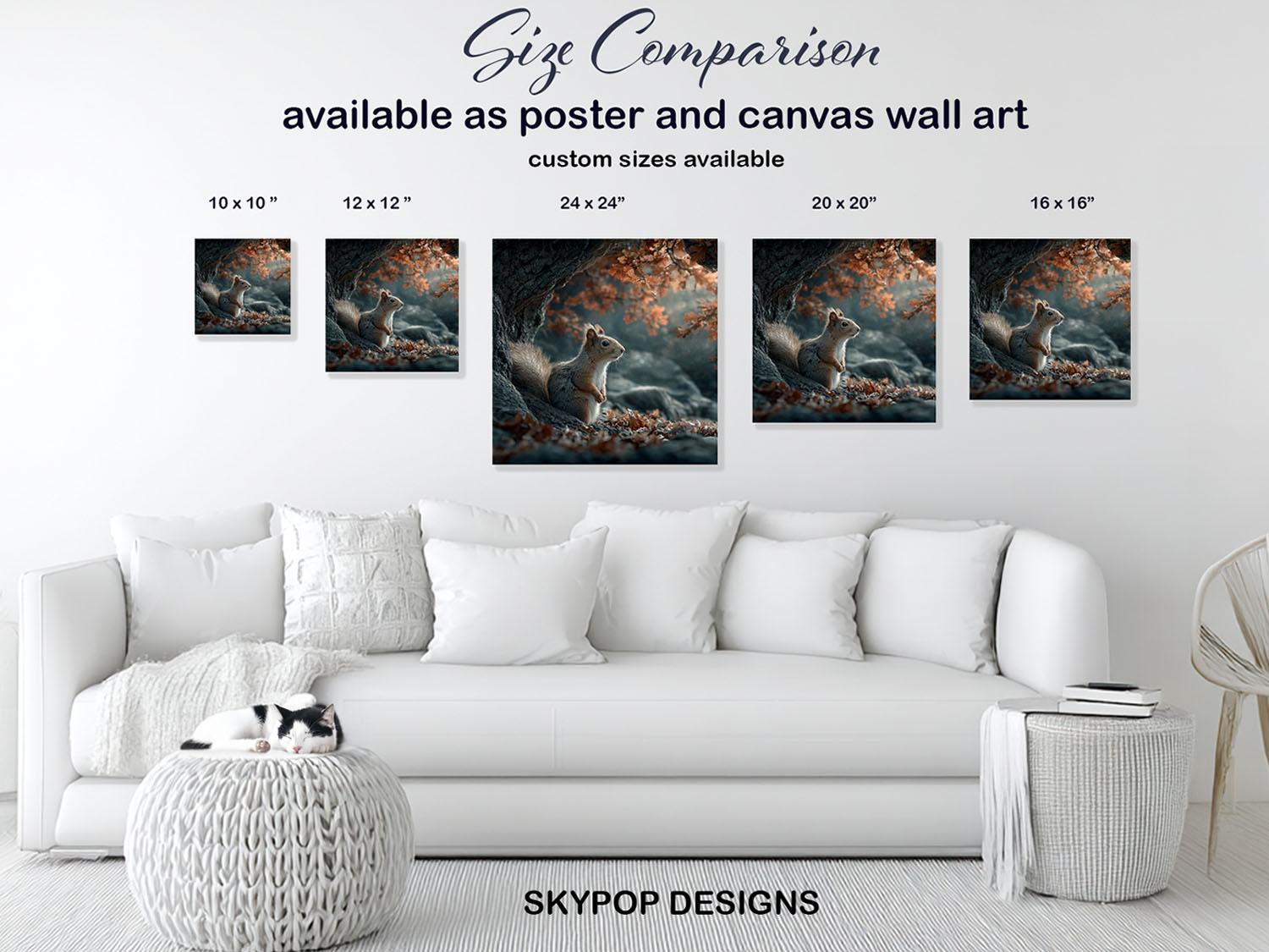 Capture the charm of nature with this captivating squirrel canvas wall art, a perfect addition to any nature lover’s collection. This stunning poster or canvas wall art showcases a solitary squirrel nestled by a rustic tree trunk, surrounded by the warm hues of autumn foliage. The rich browns and subtle oranges create a cozy and inviting atmosphere, ideal for transforming your living room or bedroom into a natural sanctuary. This animal art piece brings the outdoors in, offering a striking focal point for your rustic or farmhouse decor. The intricate details of the squirrel’s fur and the textural bark of the tree are brought to life with high-quality printing, ensuring a breathtaking visual experience. This versatile canvas wall art is also a wonderful choice for an entryway or sunroom, adding a touch of natural beauty to any space. Whether you’re looking for a unique piece of wall decor or an ideal gift for a housewarming or birthday, this captivating squirrel artwork is sure to impress. The earthy color palette promotes a sense of tranquility and connection to the natural world. Elevate your home’s aesthetic with this beautifully rendered nature art poster that celebrates the simple wonders of wildlife. Make this enchanting squirrel canvas art the centerpiece of your wall decor today.