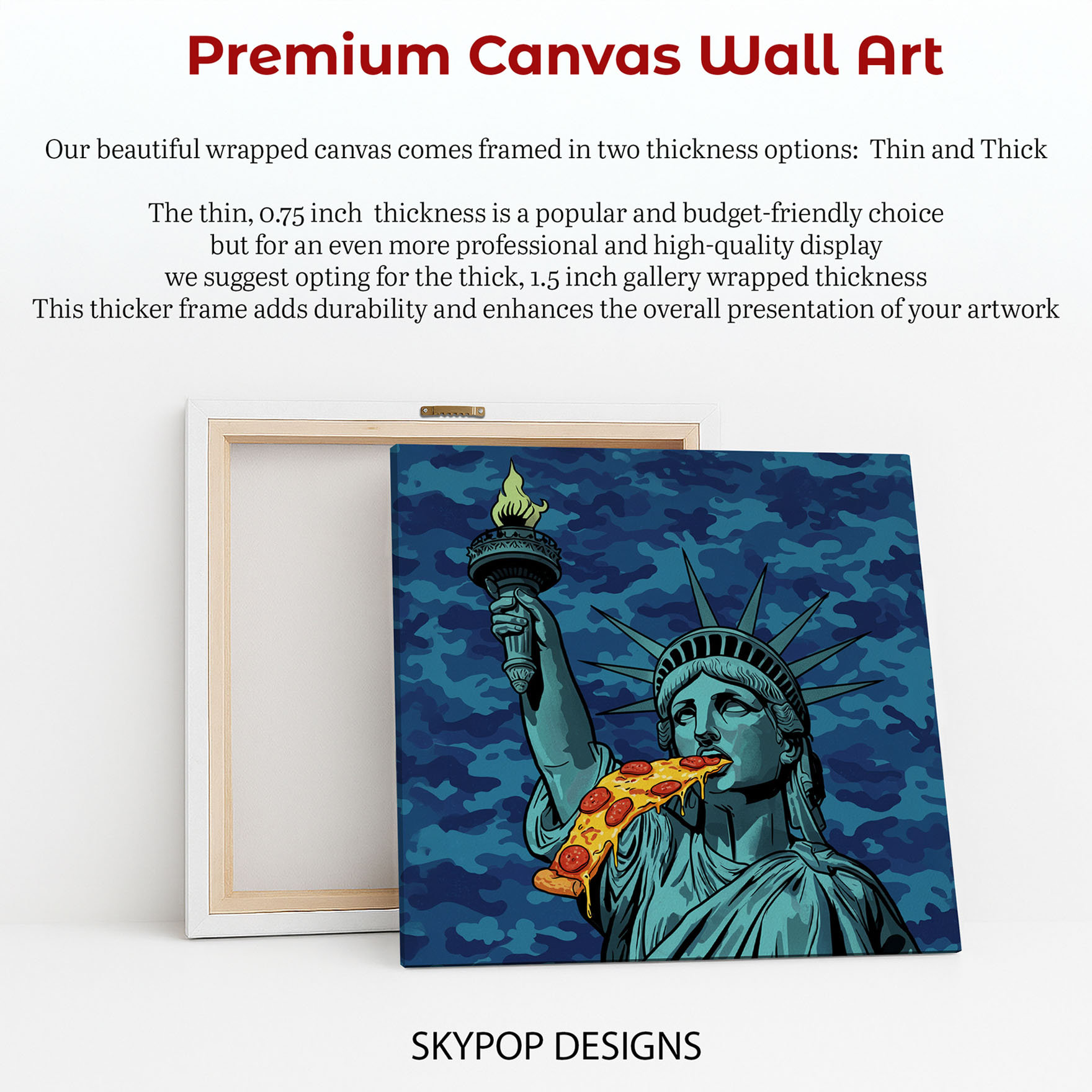 Statue of Liberty Pizza Art, Canvas or Poster, Pop Art Bohemian Decor, Living Room Game Room Office Wall Art, Blue Multicolor, Yellow