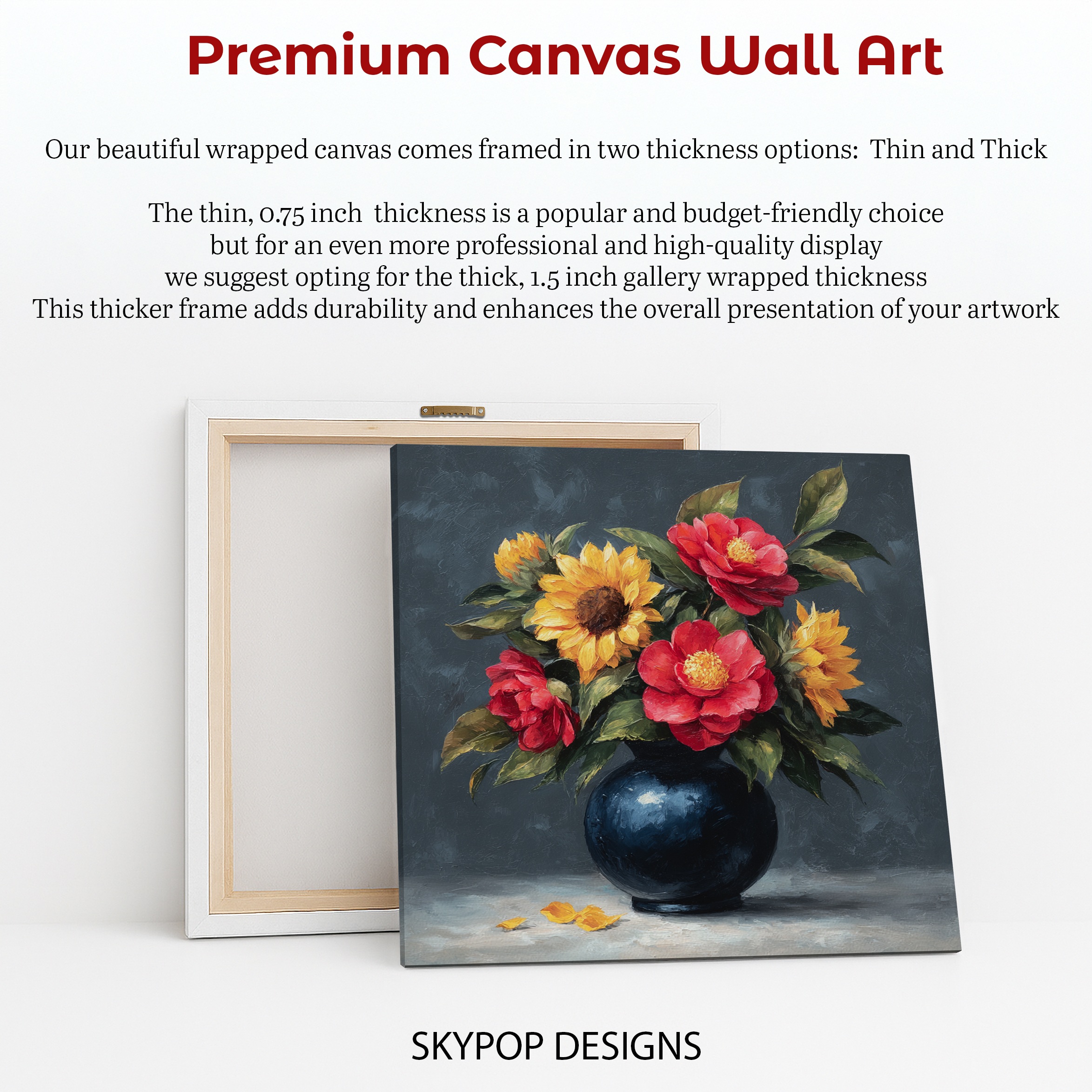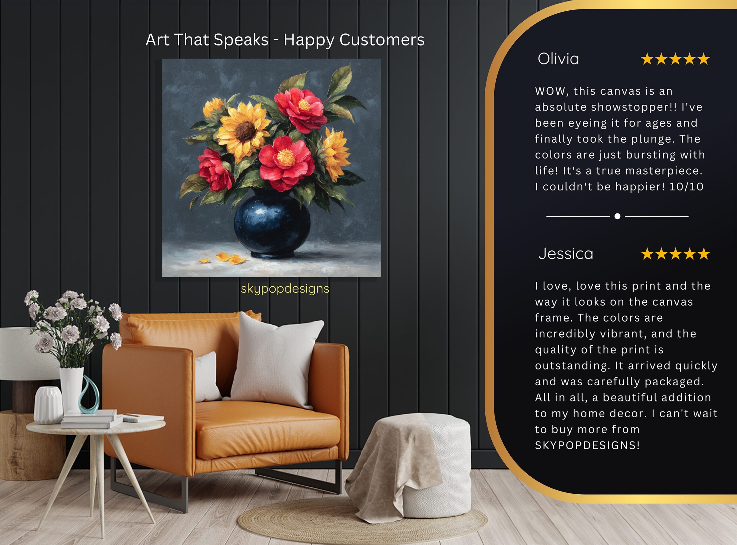 At SKYPOPDESIGNS, we specialize in high-quality canvas and poster prints designed to bring sophistication and style to your space. Please note that our designs are not created with 3D textures or as original oil, acrylic, or watercolor paintings; they are instead HD reproductions of original artwork. This approach allows us to offer these visually stunning pieces at competitive prices, ensuring you receive top-tier, maintenance-free art that’s easy to enjoy.