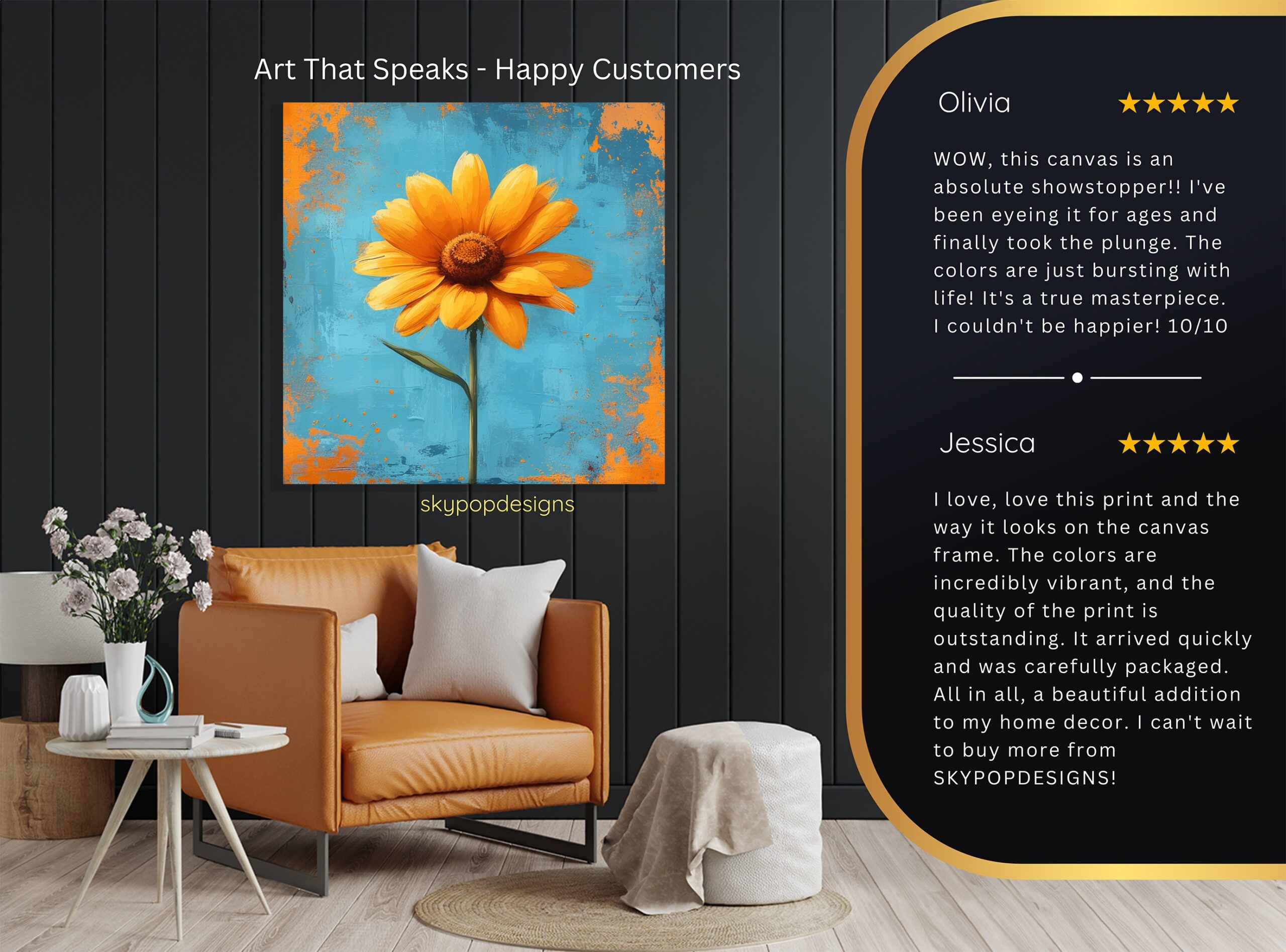 At SKYPOPDESIGNS, we specialize in high-quality canvas and poster prints designed to bring sophistication and style to your space. Please note that our designs are not created with 3D textures or as original oil, acrylic, or watercolor paintings; they are instead HD reproductions of original artwork. This approach allows us to offer these visually stunning pieces at competitive prices, ensuring you receive top-tier, maintenance-free art that’s easy to enjoy.