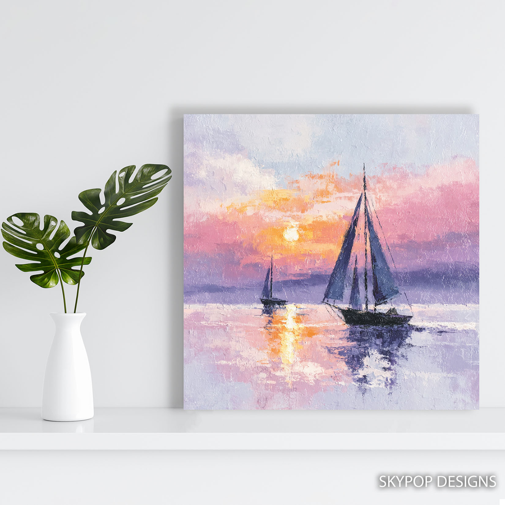 Transform your home with this breathtaking canvas wall art featuring sailboats at sunset, rendered in a captivating Impressionist style.