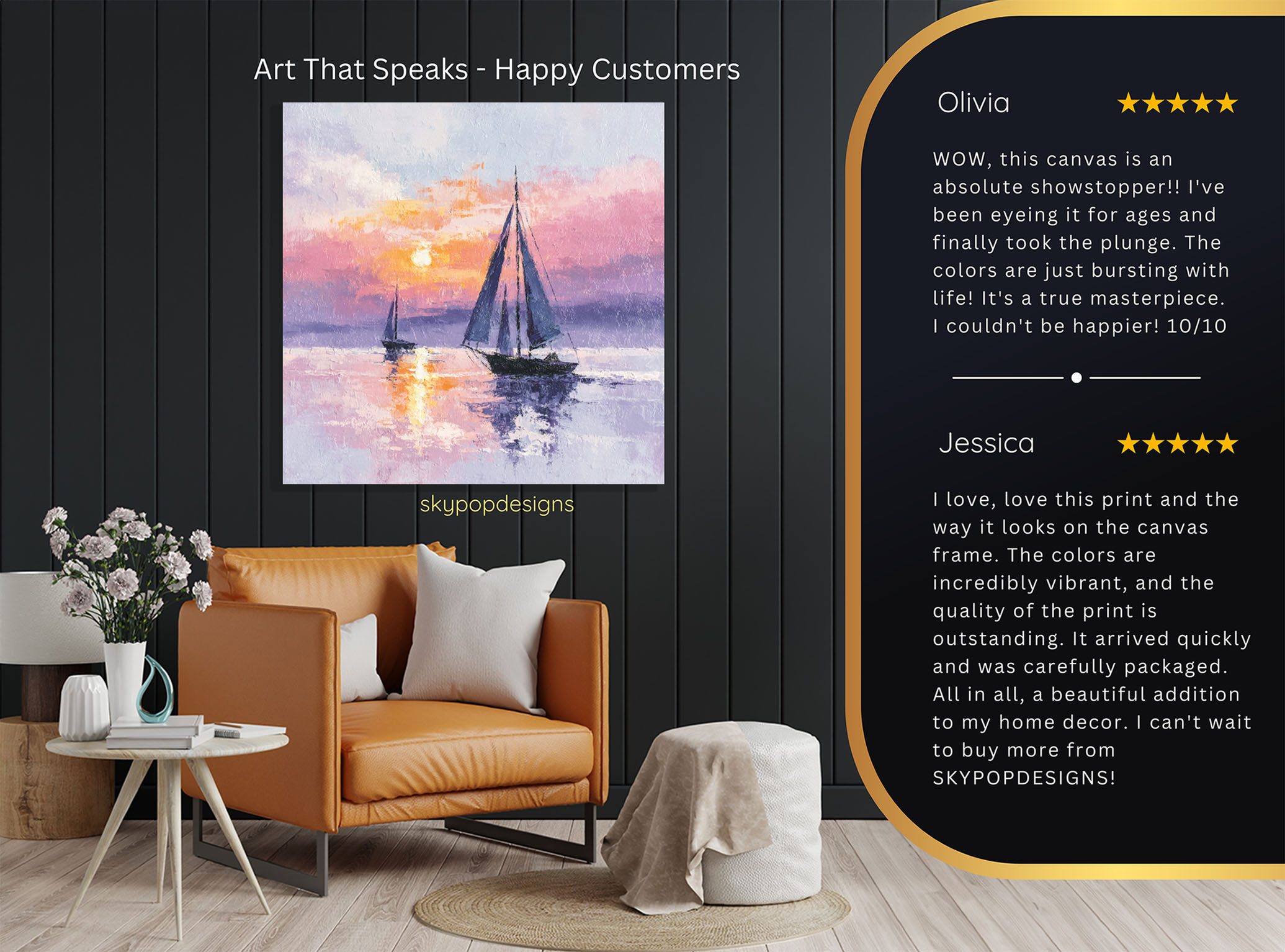 At SKYPOPDESIGNS, we specialize in high-quality canvas and poster prints designed to bring sophistication and style to your space. Please note that our designs are not created with 3D textures or as original oil, acrylic, or watercolor paintings; they are instead HD reproductions of original artwork. This approach allows us to offer these visually stunning pieces at competitive prices, ensuring you receive top-tier, maintenance-free art that’s easy to enjoy.