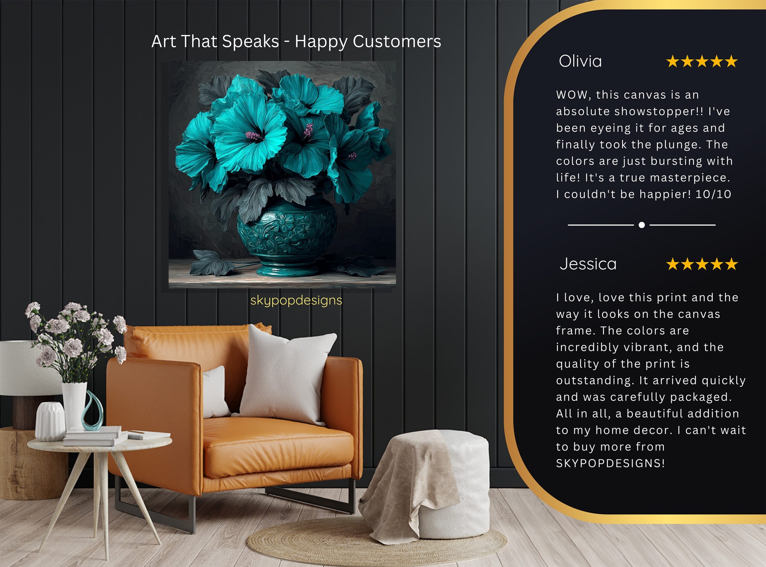 At SKYPOPDESIGNS, we specialize in high-quality canvas and poster prints designed to bring sophistication and style to your space. Please note that our designs are not created with 3D textures or as original oil, acrylic, or watercolor paintings; they are instead HD reproductions of original artwork. This approach allows us to offer these visually stunning pieces at competitive prices, ensuring you receive top-tier, maintenance-free art that’s easy to enjoy.