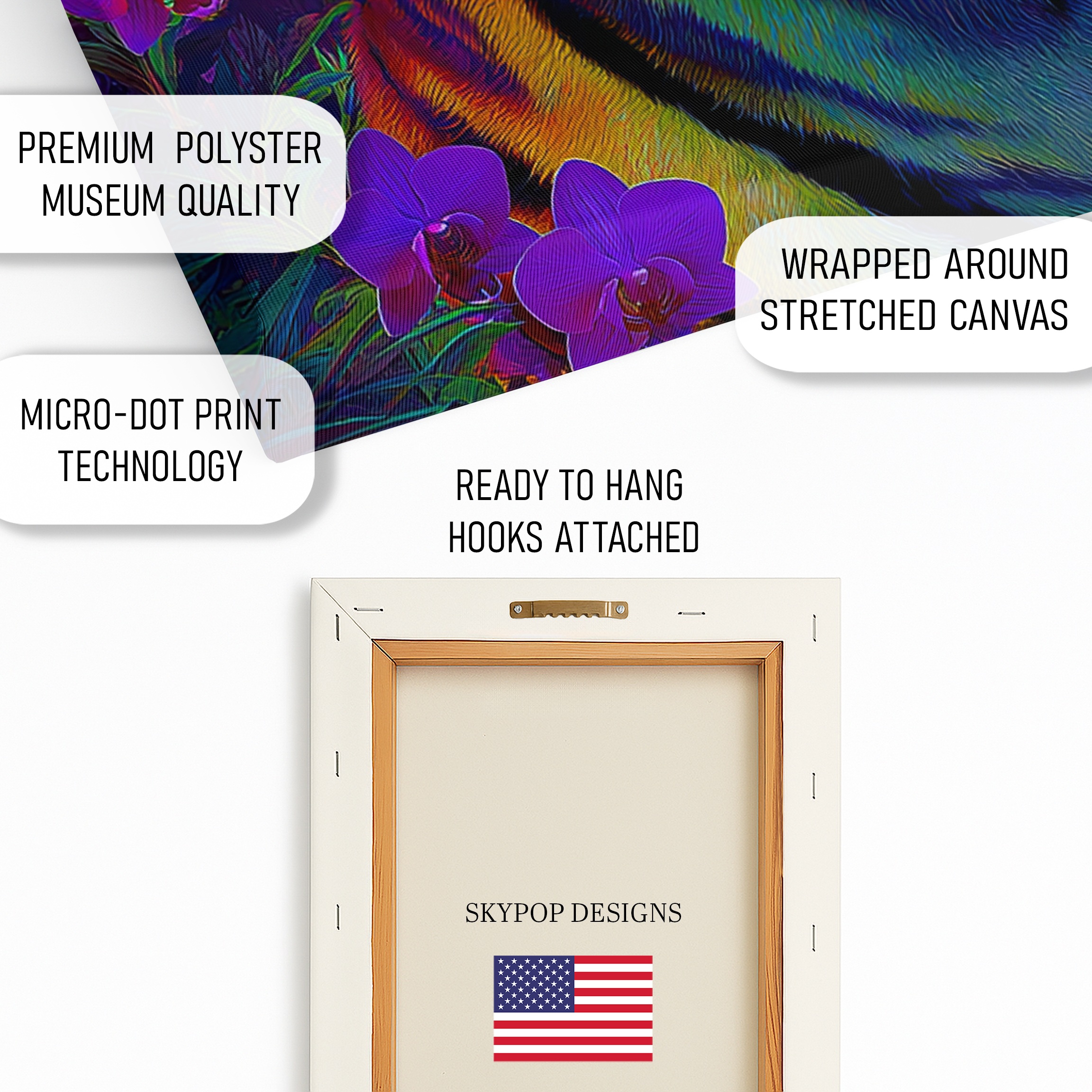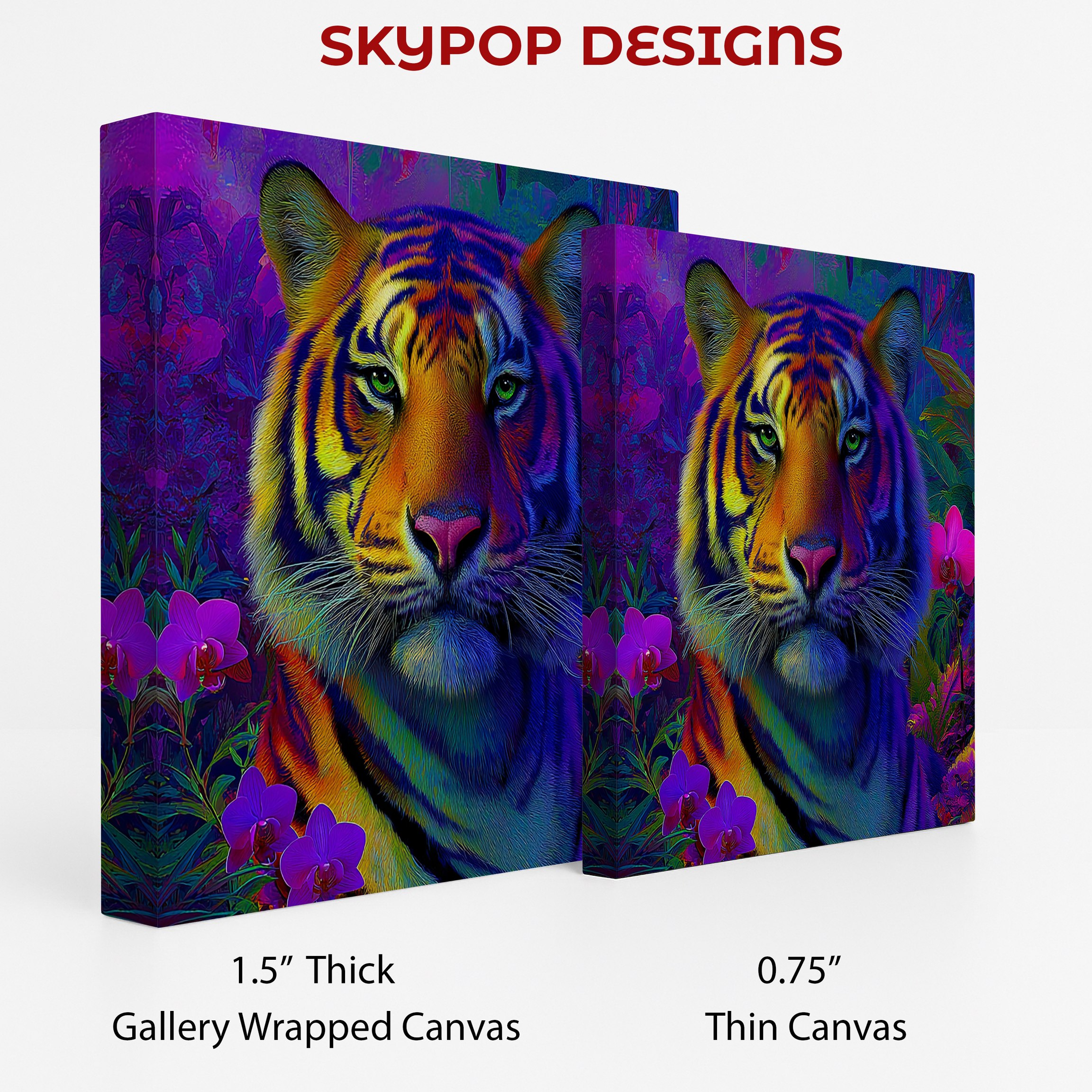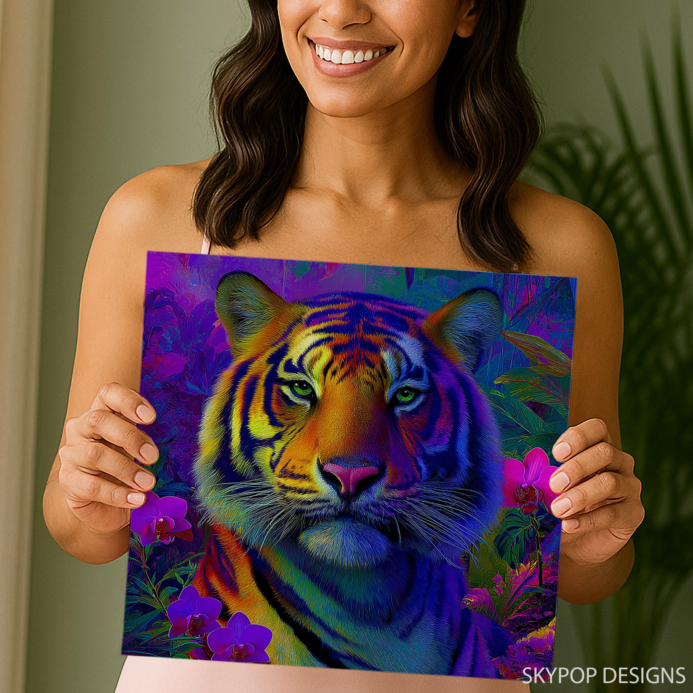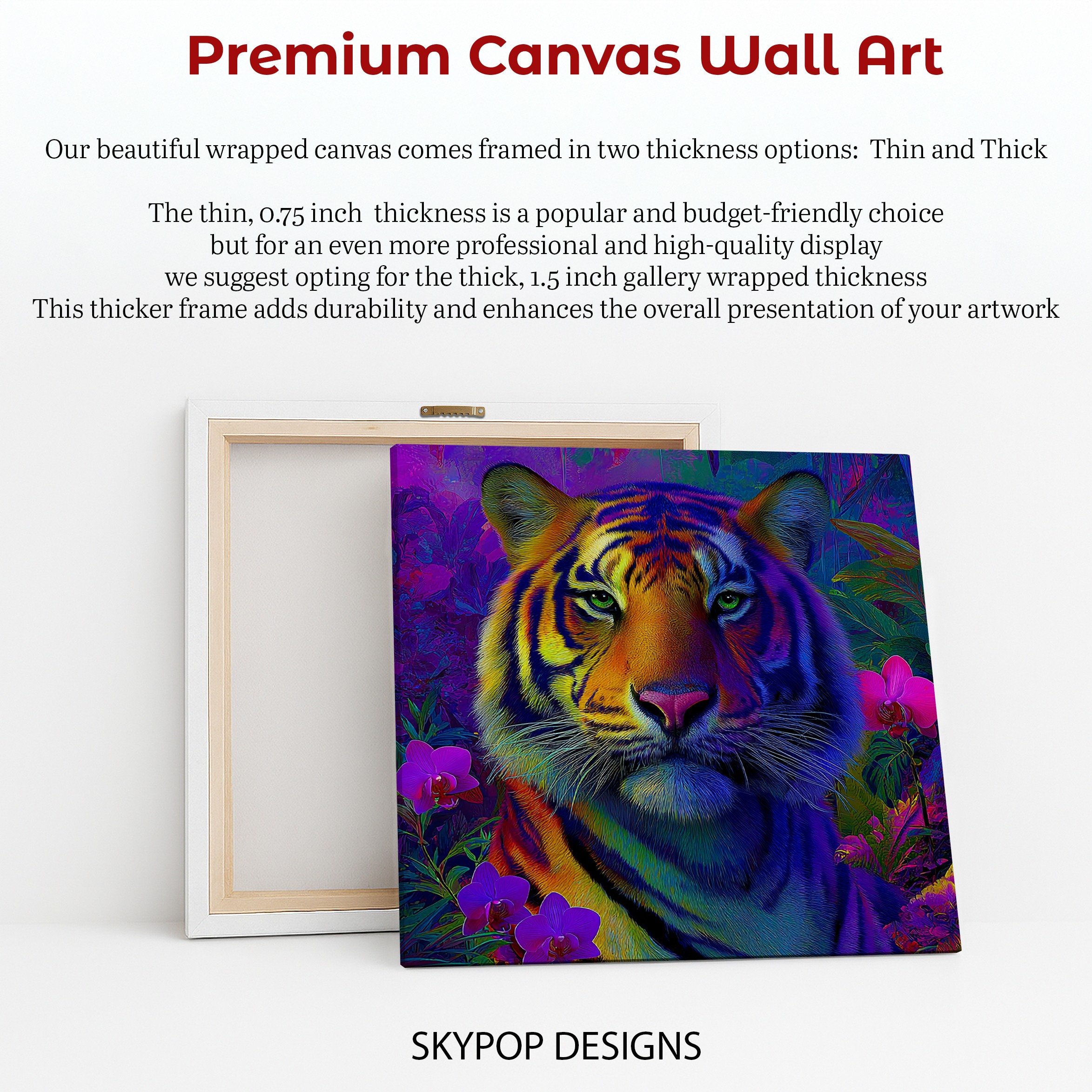 Bring the wild side of art into your home with this stunning colorful tiger canvas wall art. This vibrant poster captures the fierce beauty of a tiger in an explosion of psychedelic hues, perfect for making a bold statement in any room. The striking blend of purple, orange, yellow, and blue creates an eye-catching piece that instantly becomes the focal point of your space. Ideal for modern living rooms or eclectic bedrooms, this canvas art infuses energy and personality into your decor. The intense gaze of the tiger, rendered in vivid green eyes, seems to follow you across the room, adding a touch of mystery and intrigue. This contemporary animal art is a fantastic way to showcase your love for wildlife while embracing cutting-edge design trends. The high-quality printing ensures every brushstroke and color transition is captured in crisp detail, making this piece a conversation starter for years to come. Whether you’re looking to add a pop of color to a neutral office or create a whimsical atmosphere in a child’s room, this tiger wall art adapts beautifully to various settings. The large-scale format makes it suitable for filling empty wall spaces or creating a gallery-style display. Transform your home today with this unforgettable tiger artwork that celebrates the beauty of nature through a modern, artistic lens. Perfect as a unique gift for art lovers or as a treat for yourself, this canvas brings the jungle’s vibrant spirit right into your living space.