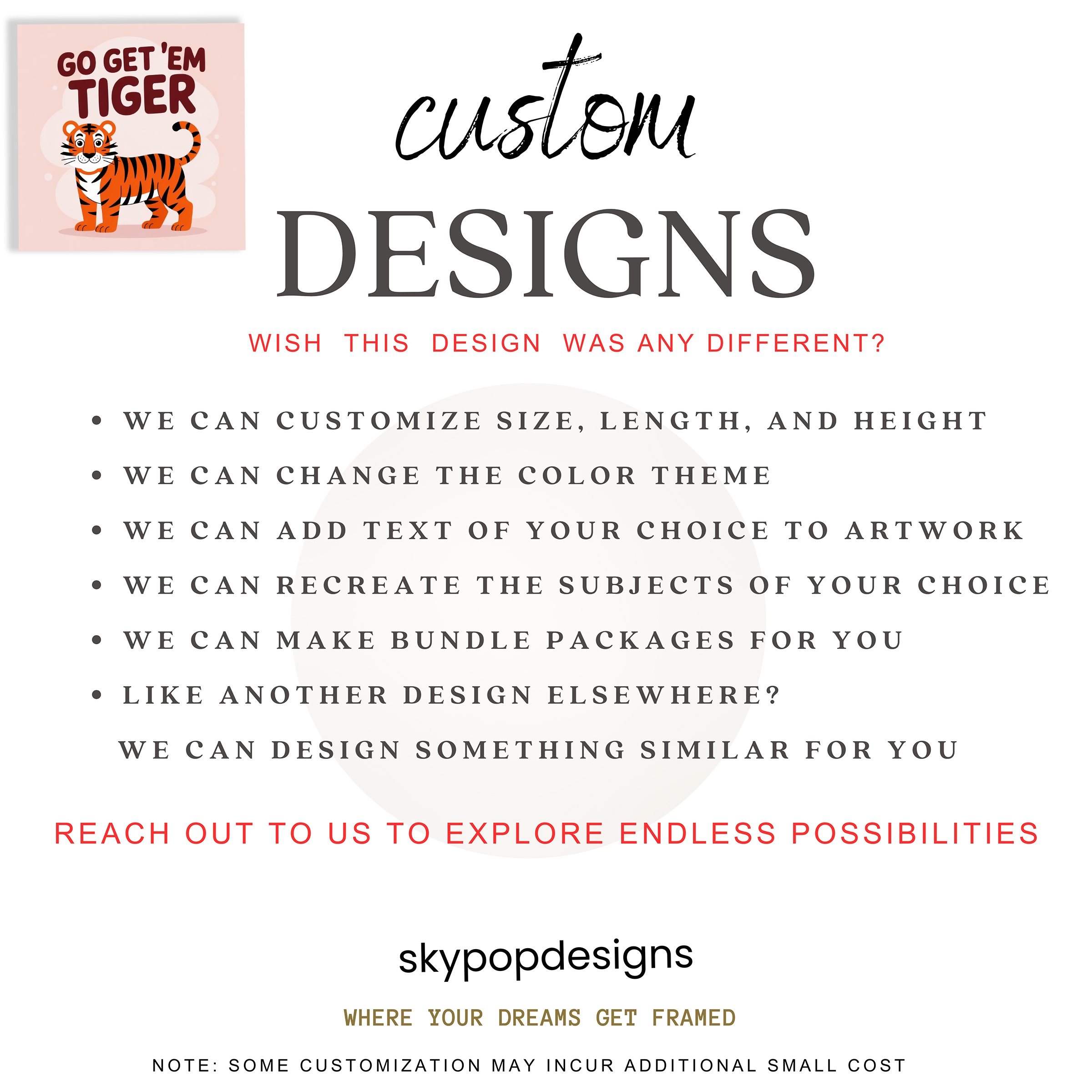 Looking for a custom design, or do you love a particular design but need it in a different size or orientation? Perhaps you’ve found a design elsewhere and wish for us to create something similar for you? Drop us a message! We’re dedicated to meeting your needs and will work closely with you to ensure your vision comes to life.