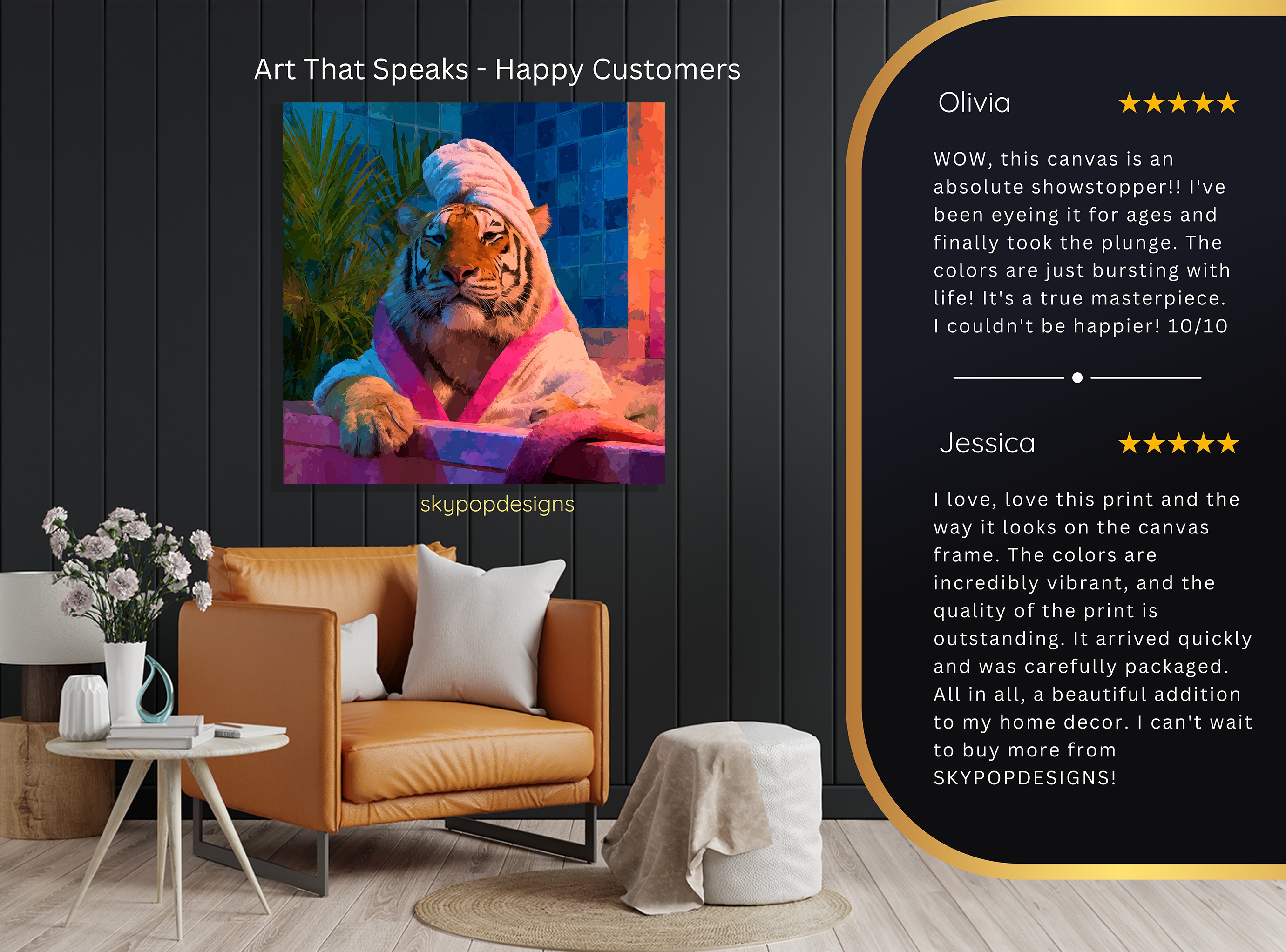 At SKYPOPDESIGNS, we specialize in high-quality canvas and poster prints designed to bring sophistication and style to your space. Please note that our designs are not created with 3D textures or as original oil, acrylic, or watercolor paintings; they are instead HD reproductions of original artwork. This approach allows us to offer these visually stunning pieces at competitive prices, ensuring you receive top-tier, maintenance-free art that’s easy to enjoy.
