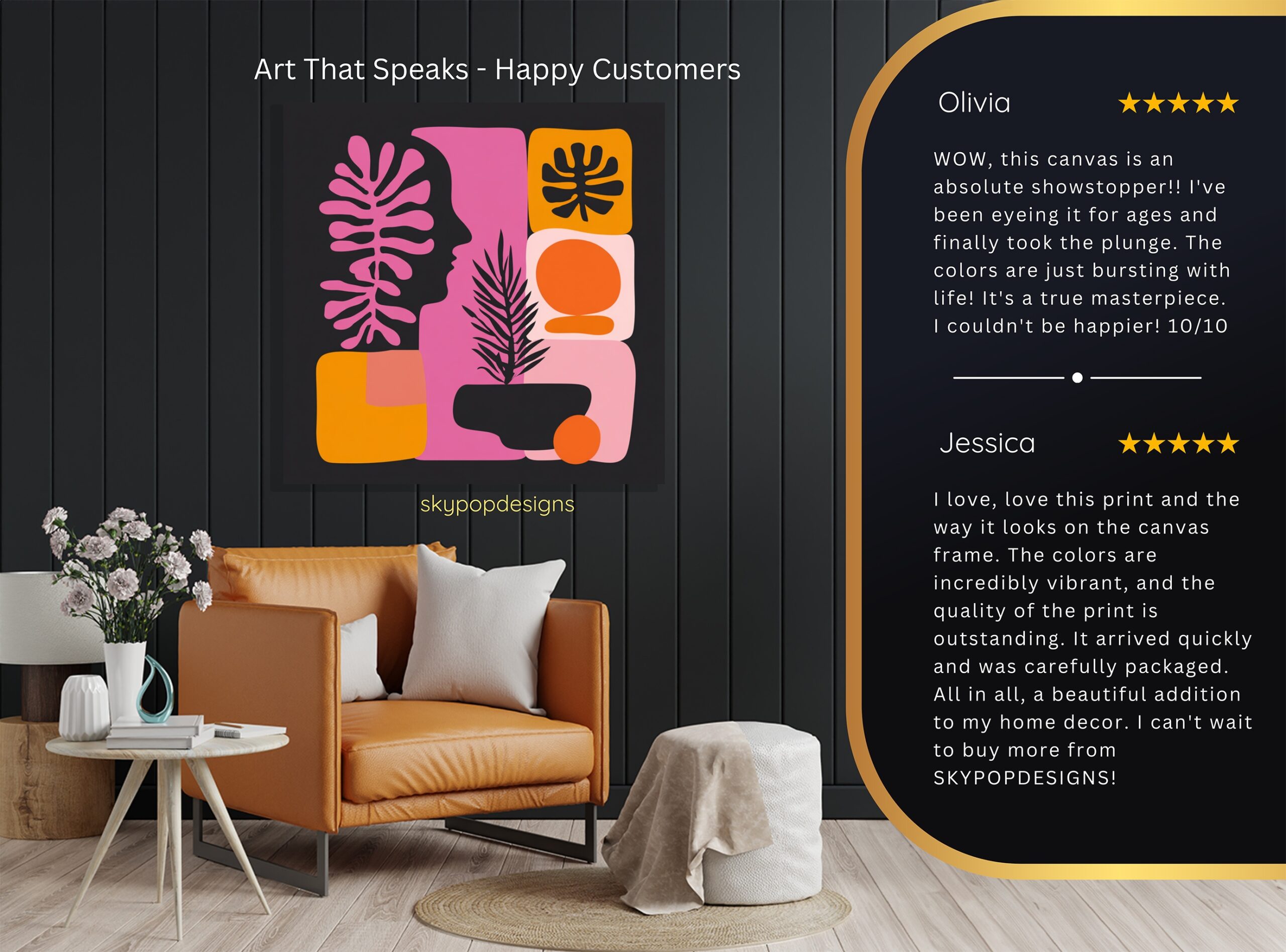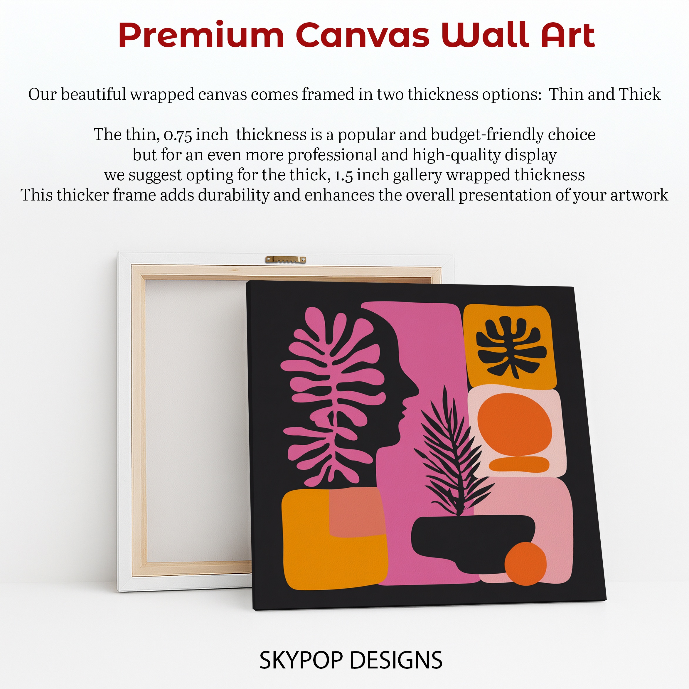 At SKYPOPDESIGNS, we specialize in high-quality canvas and poster prints designed to bring sophistication and style to your space. Please note that our designs are not created with 3D textures or as original oil, acrylic, or watercolor paintings; they are instead HD reproductions of original artwork. This approach allows us to offer these visually stunning pieces at competitive prices, ensuring you receive top-tier, maintenance-free art that’s easy to enjoy.
