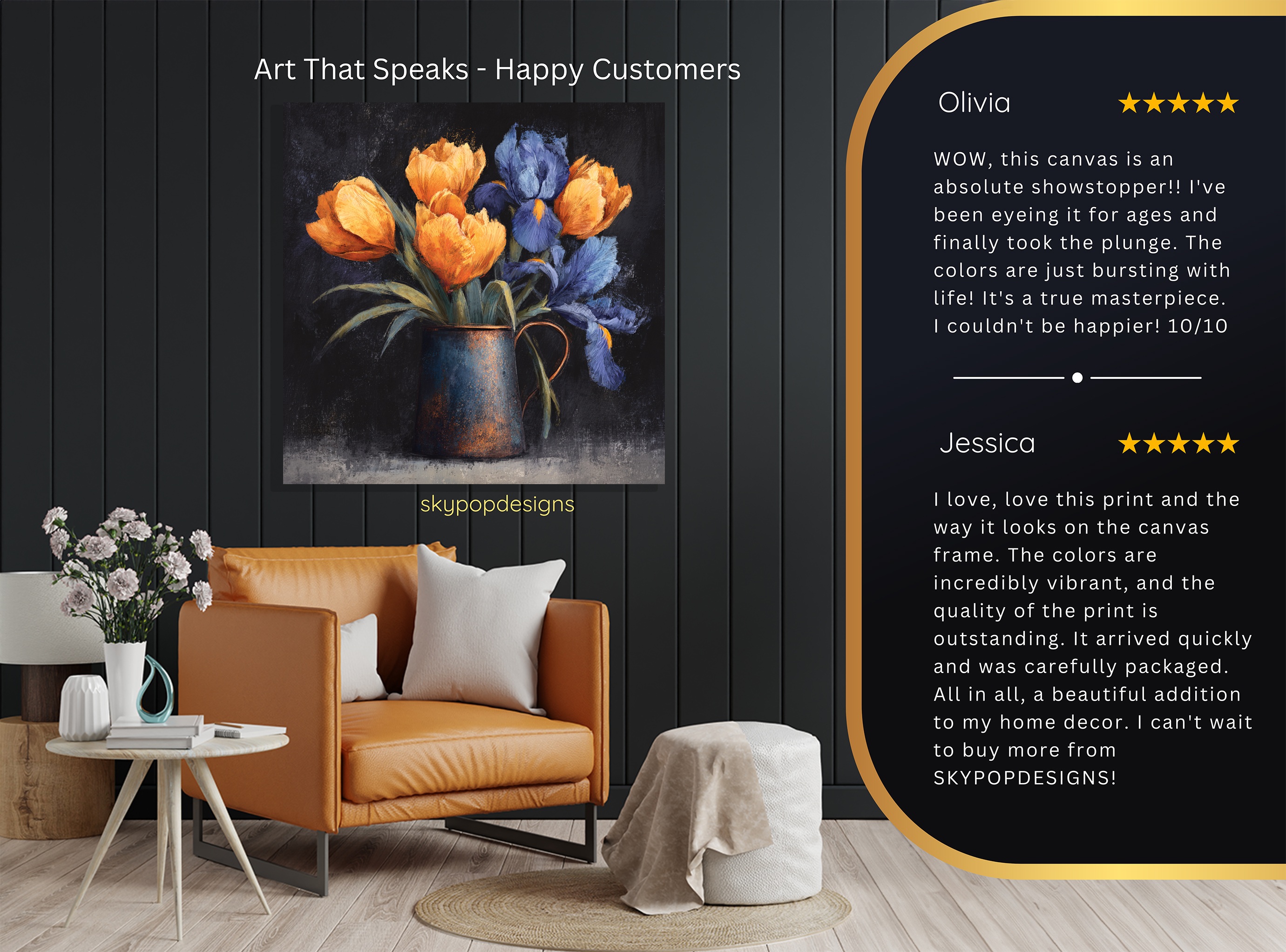 At SKYPOPDESIGNS, we specialize in high-quality canvas and poster prints designed to bring sophistication and style to your space. Please note that our designs are not created with 3D textures or as original oil, acrylic, or watercolor paintings; they are instead HD reproductions of original artwork. This approach allows us to offer these visually stunning pieces at competitive prices, ensuring you receive top-tier, maintenance-free art that’s easy to enjoy.