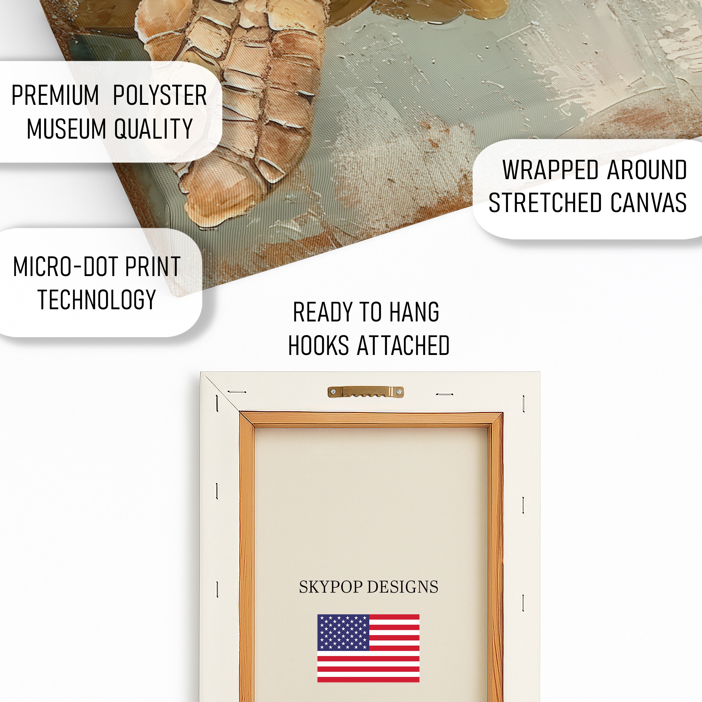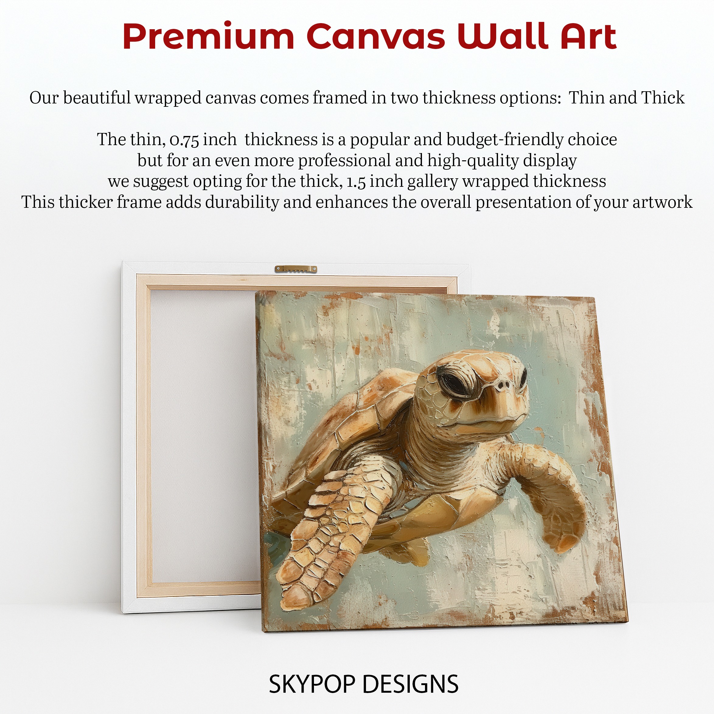 Keywords: Turtle wall art, Sea turtle canvas, Coastal art, Ocean wall decor, Nature art, Animal art, Impressionism art, Beach house decor, Teal and brown art, Multicolor wall art, Living room art, Bedroom art, Bathroom art, Entryway art, Coastal living room, Modern coastal decor, Rustic beach decor, Serene wall art, Tranquil artwork, Ocean lovers gift, Birthday gift, Housewarming gift, Canvas print, Wall poster, Home decor, Nature’s beauty art, Wildlife art, Textured wall art, Painterly finish art, Captivating canvas