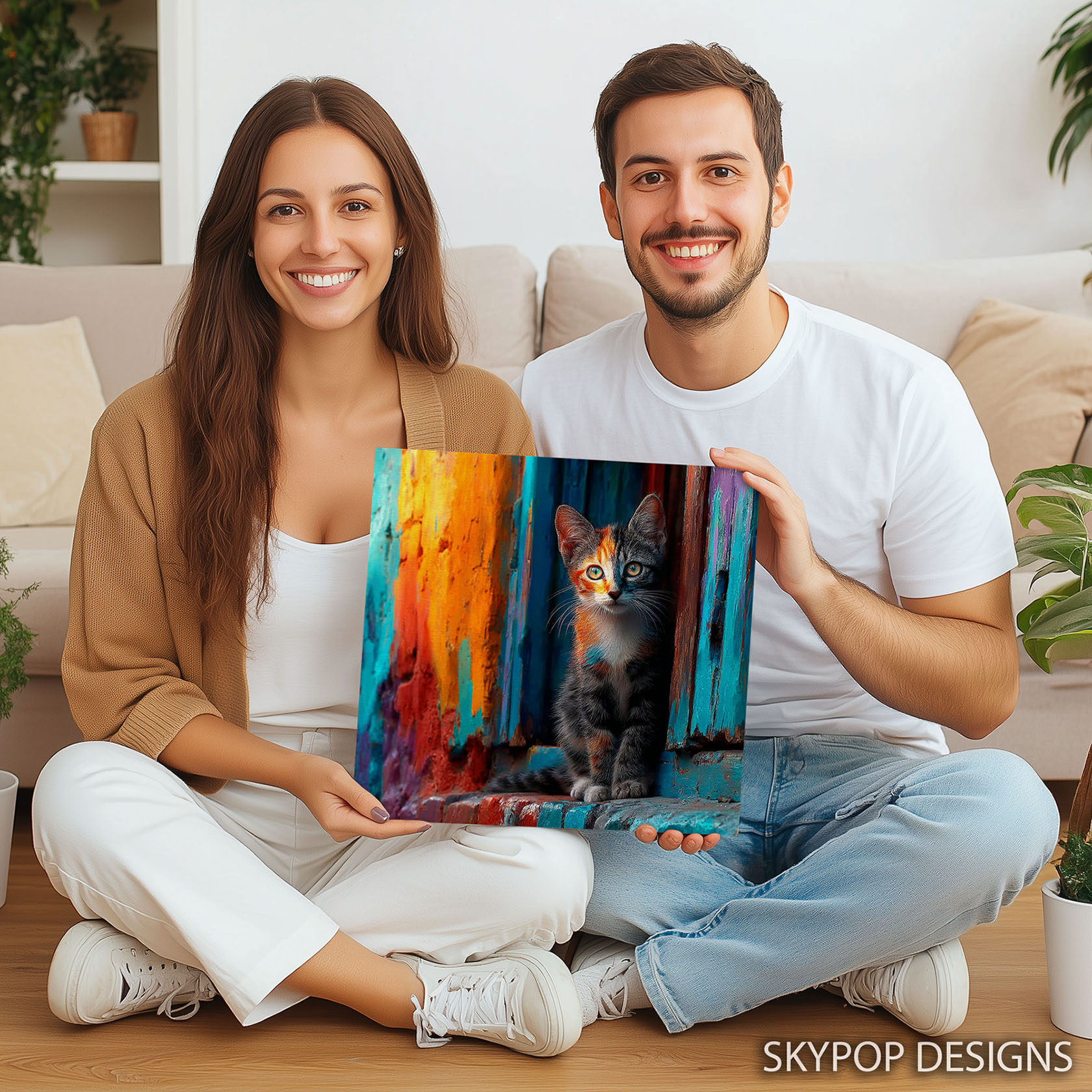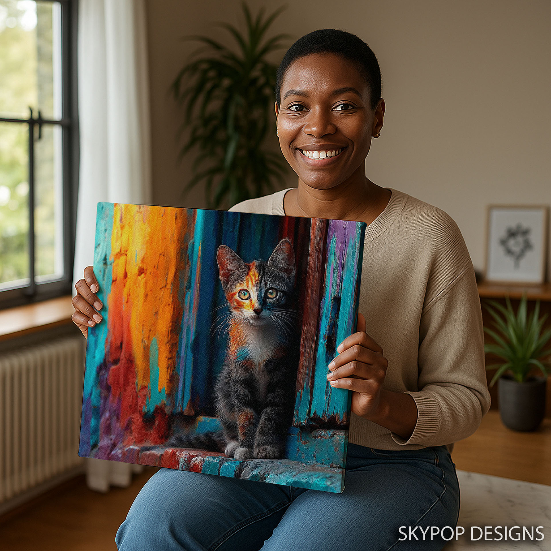 Brighten your home with this vibrant cat canvas wall art that brings the energy of the city streets indoors. This striking poster or canvas wall art showcases a charming cat against a backdrop of colorful graffiti, creating a modern and eye-catching piece. The bold orange, blue, and teal hues pop against each other, infusing any room with a lively and artistic atmosphere. Perfect for contemporary living rooms or eclectic bohemian bedrooms, this animal art piece effortlessly transforms ordinary spaces. The playful nature of the cat combined with the urban street art style makes it an ideal addition to entryways, inviting guests with its unique charm. This canvas wall art serves as a captivating focal point, engaging viewers with its dynamic colors and whimsical subject. The high-quality printing captures the textured effect of the graffiti and the intricate details of the cat’s fur, making it a stunning piece of wall decor. Enhance your home with this versatile poster that adds personality and a touch of urban flair to any setting. It’s a fantastic housewarming gift or a special treat for cat lovers and art enthusiasts alike. This colorful canvas art piece is designed to inspire joy and spark conversation, reflecting a love for pets and contemporary design. Elevate your interior design with this unique blend of animal art and street style, adding a splash of bold color to your walls today. Discover the perfect wall art to express your vibrant style.