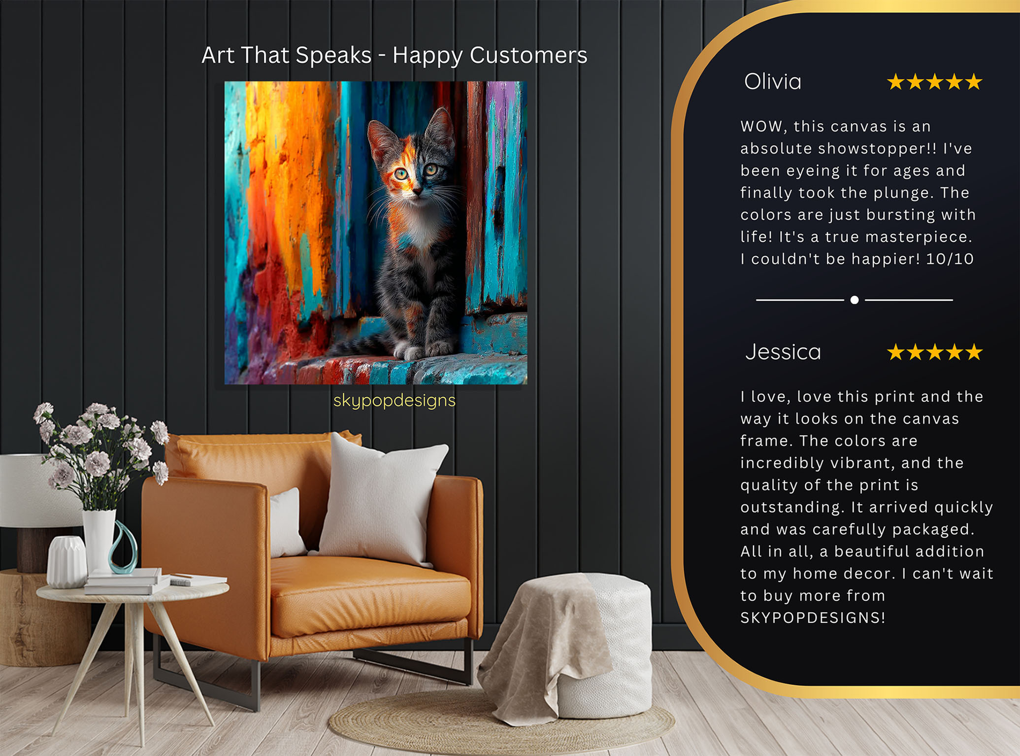 At SKYPOPDESIGNS, we specialize in high-quality canvas and poster prints designed to bring sophistication and style to your space. Please note that our designs are not created with 3D textures or as original oil, acrylic, or watercolor paintings; they are instead HD reproductions of original artwork. This approach allows us to offer these visually stunning pieces at competitive prices, ensuring you receive top-tier, maintenance-free art that’s easy to enjoy.