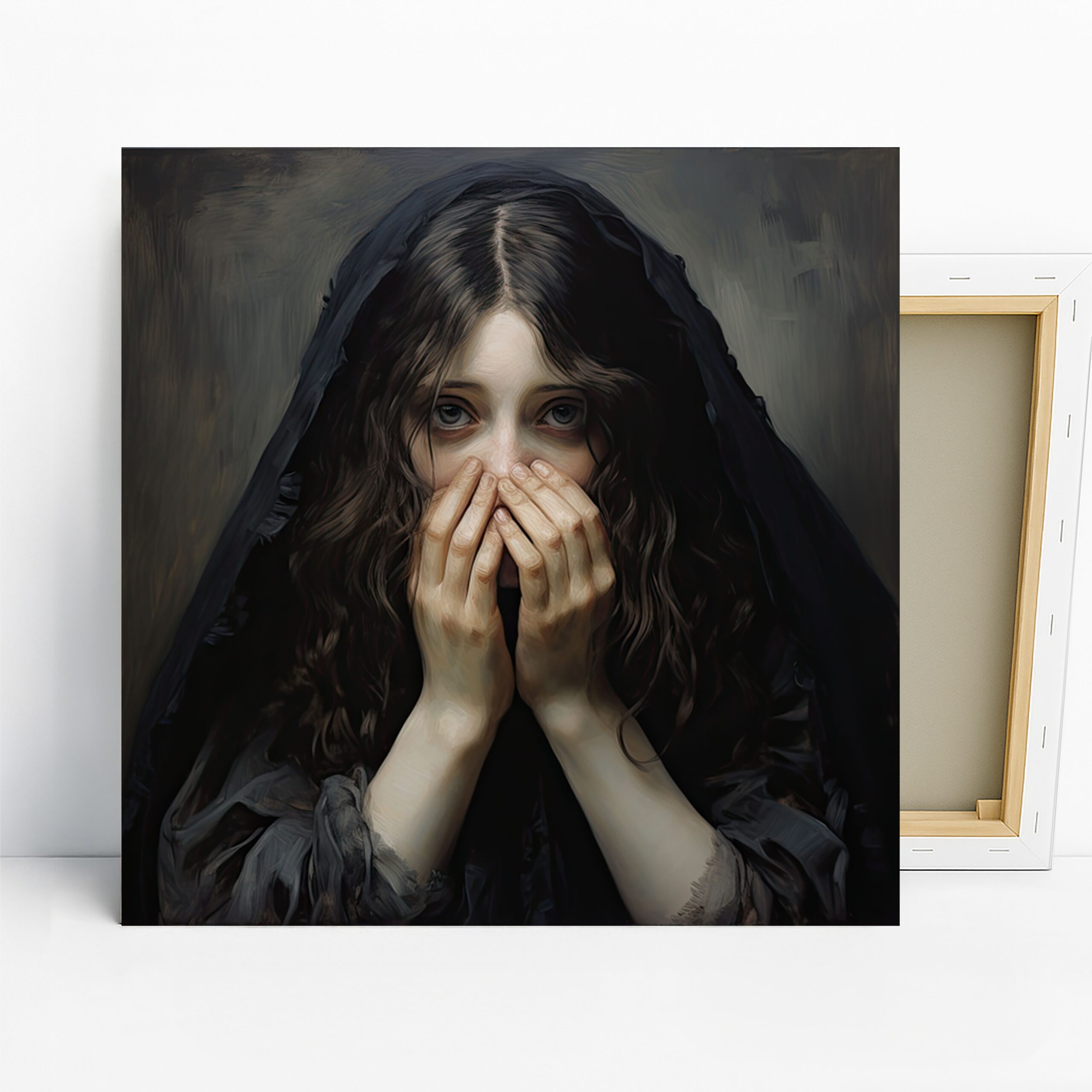 Keywords: Figurative Art, Classic Art, Contemporary Art, Traditional Decor, Gothic Decor, Victorian Decor, Bedroom Art, Living Room Art, Hallway Art, Bathroom Art, Black and White Art, Grey Art, Maroon Art, Melancholy Portrait, Veil Portrait, Canvas Wall Art, Poster Art, Emotional Art, Mystery Art, Elegant Art, Introspective Art, Timeless Art, Dark Academia Decor, Dramatic Art, Expressive Portrait, Wall Decor, Home Decor, Art Gift, Art Lover Gift, Statement Art