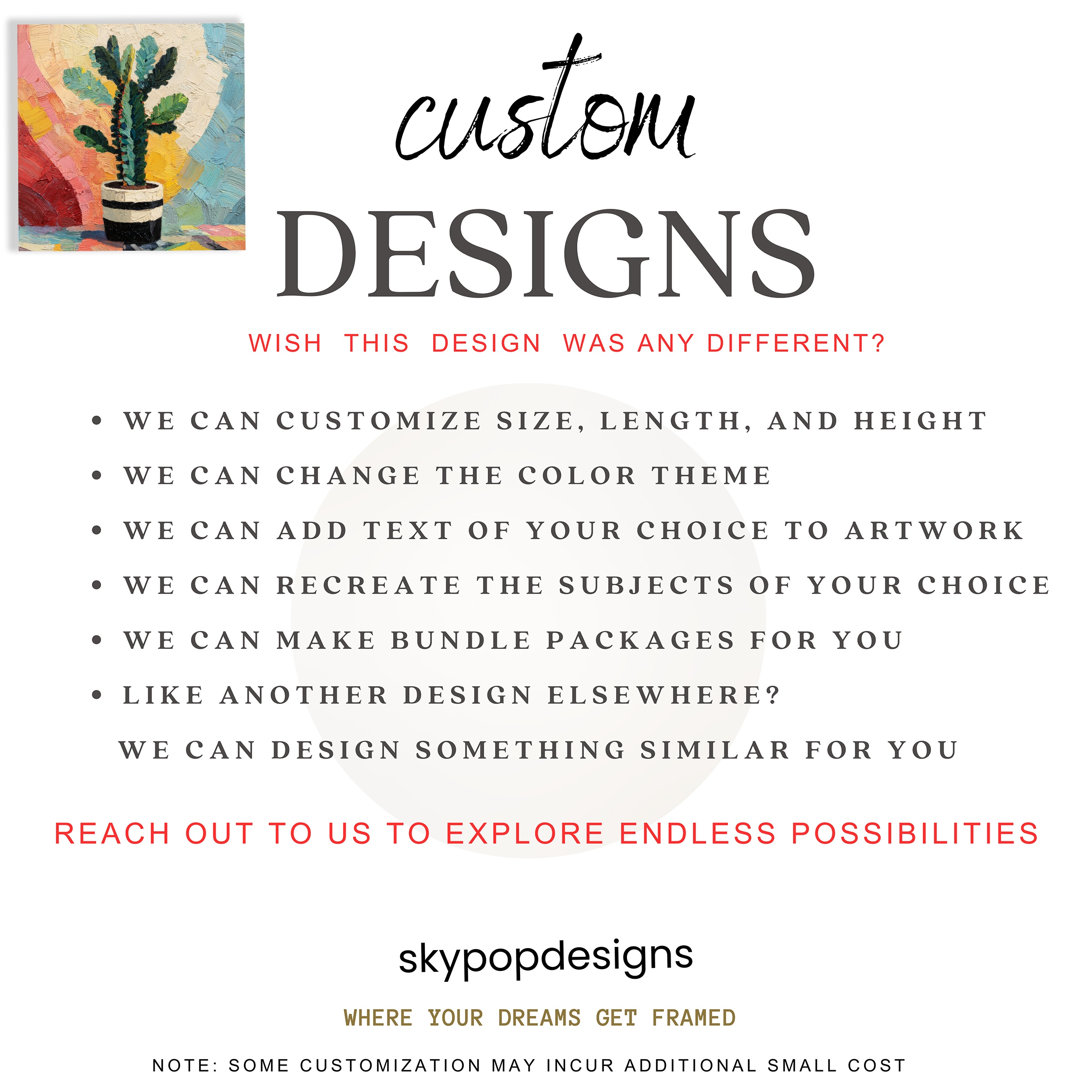 At SKYPOPDESIGNS, we specialize in high-quality canvas and poster prints designed to bring sophistication and style to your space. Please note that our designs are not created with 3D textures or as original oil, acrylic, or watercolor paintings; they are instead HD reproductions of original artwork. This approach allows us to offer these visually stunning pieces at competitive prices, ensuring you receive top-tier, maintenance-free art that’s easy to enjoy.