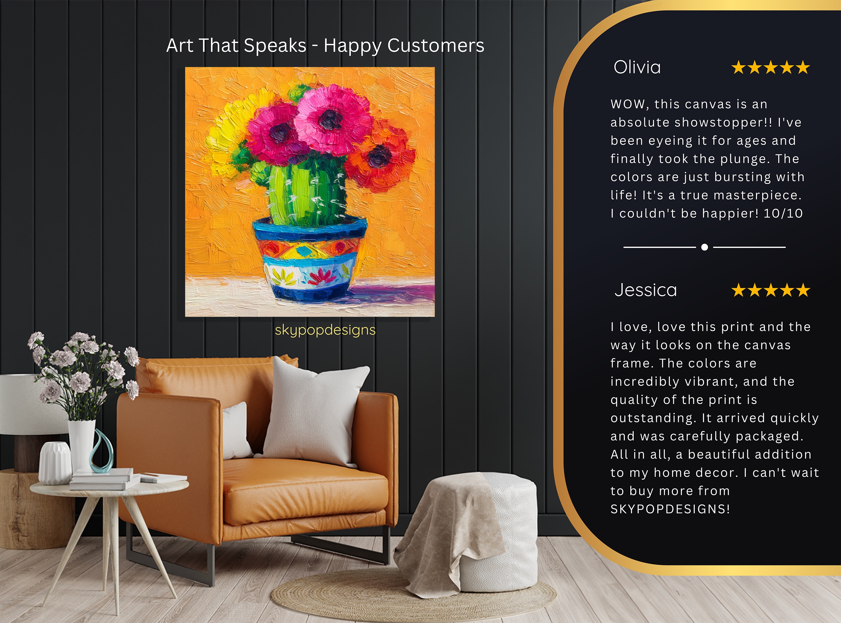 At SKYPOPDESIGNS, we specialize in high-quality canvas and poster prints designed to bring sophistication and style to your space. Please note that our designs are not created with 3D textures or as original oil, acrylic, or watercolor paintings; they are instead HD reproductions of original artwork. This approach allows us to offer these visually stunning pieces at competitive prices, ensuring you receive top-tier, maintenance-free art that’s easy to enjoy.