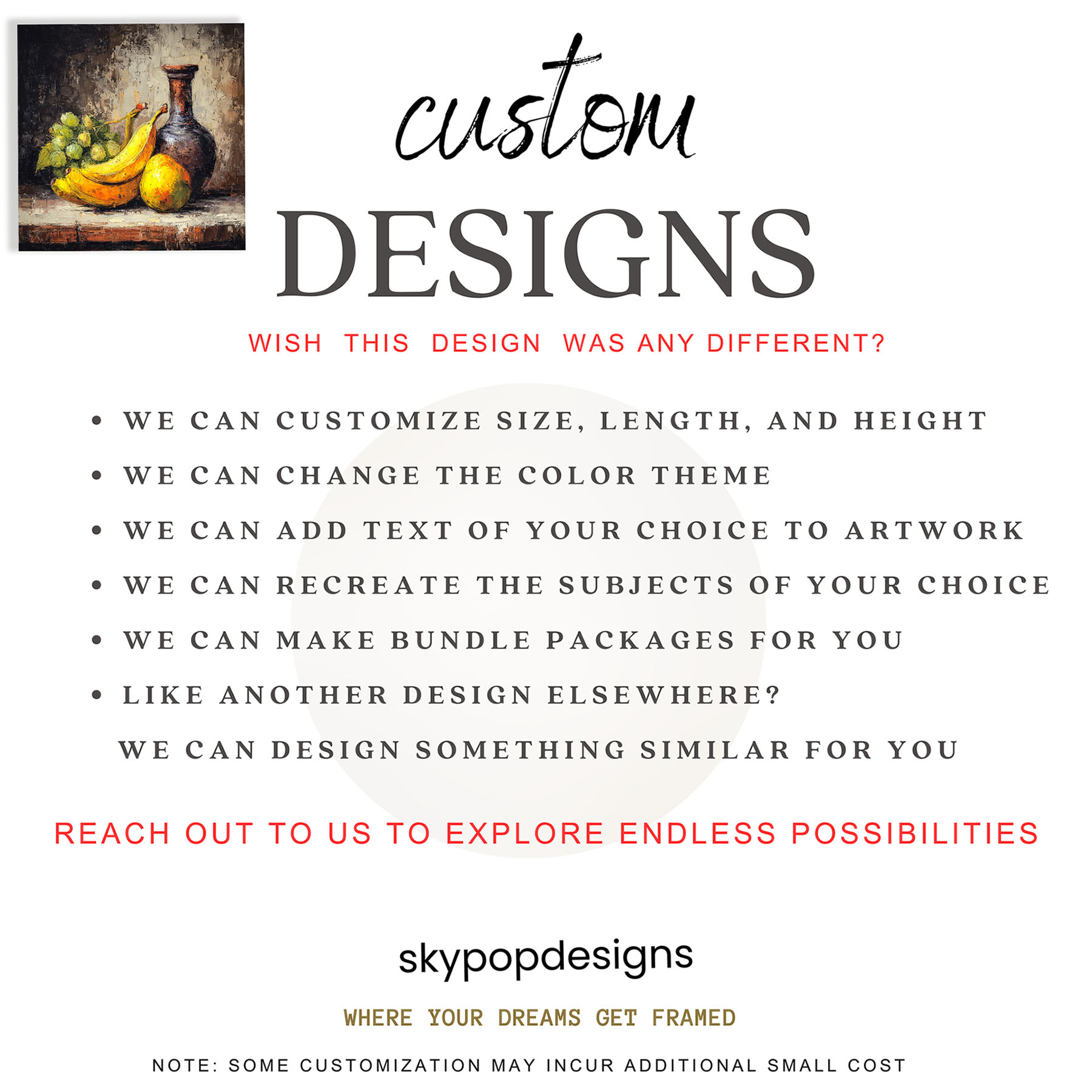 At SKYPOPDESIGNS, we specialize in high-quality canvas and poster prints designed to bring sophistication and style to your space. Please note that our designs are not created with 3D textures or as original oil, acrylic, or watercolor paintings; they are instead HD reproductions of original artwork. This approach allows us to offer these visually stunning pieces at competitive prices, ensuring you receive top-tier, maintenance-free art that’s easy to enjoy.