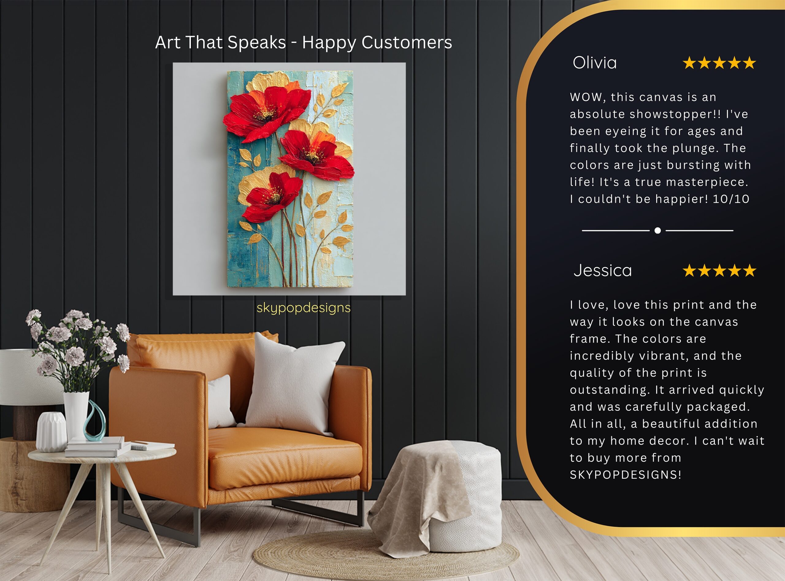 Keywords: Poppy Wall Art, Red Poppies Canvas, Floral Wall Art, Nature Art Canvas, Textured Wall Art, Contemporary Art, Modern Wall Decor, Glam Decor, Teal and Gold Art, Multicolor Wall Art, Living Room Art, Bedroom Wall Art, Entryway Decor, Dining Room Art, Statement Wall Art, Vibrant Red Art, Gold Accent Art, Canvas Poster, Home Decor Artwork, Interior Design Art, Wall Decor Ideas, Housewarming Gift, Birthday Gift Idea, Holiday Gift Art, Passion and Beauty Art, Luxurious Wall Art, Elegant Home Decor, Artistic Wall Piece, Poppy Artwork Canvas, Unique Wall Art