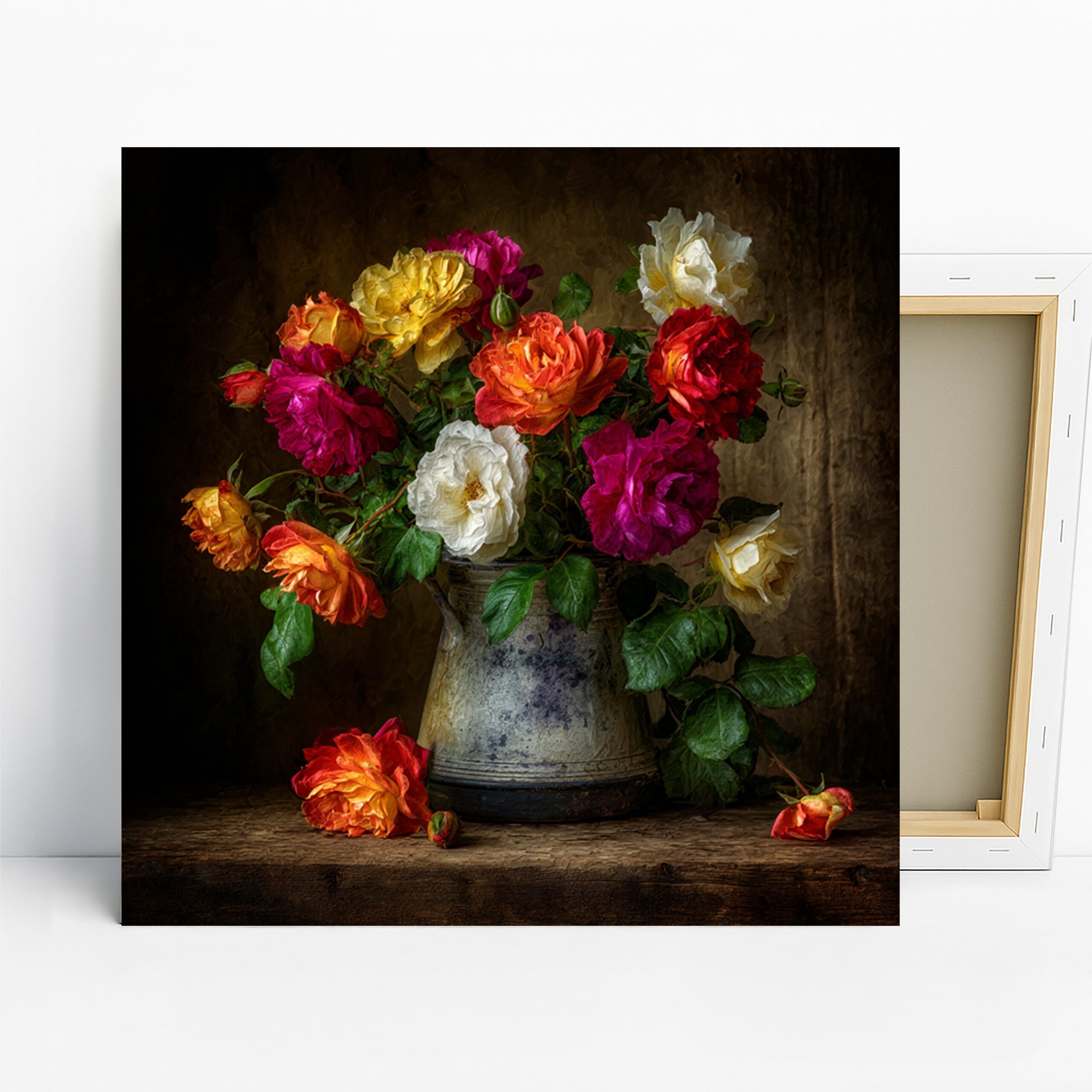 Elevate your home decor with this stunning floral canvas wall art featuring a lush bouquet of vibrant roses. This captivating still life poster transforms any space into a gallery of natural beauty, perfect for traditional or country-style interiors. The rich palette of reds, yellows, pinks, and whites creates a warm, inviting atmosphere that brightens up living rooms, dining areas, or bedrooms. Ideal for flower lovers and those seeking to bring a touch of timeless elegance to their walls, this canvas art showcases the intricate details of each petal and leaf. The rustic ceramic vase adds a charming, vintage feel, making it a versatile piece that complements various decor styles. Whether you’re looking to create a focal point in your entryway or add a pop of color to a neutral space, this rose bouquet artwork delivers. The high-quality printing ensures every brushstroke and texture is faithfully reproduced, bringing museum-quality art into your home. Gift this beautiful floral poster to celebrate special occasions like Mother’s Day, housewarmings, or anniversaries. With its classic appeal and vibrant energy, this canvas wall art is sure to inspire and delight for years to come. Transform your room today with this timeless floral masterpiece.