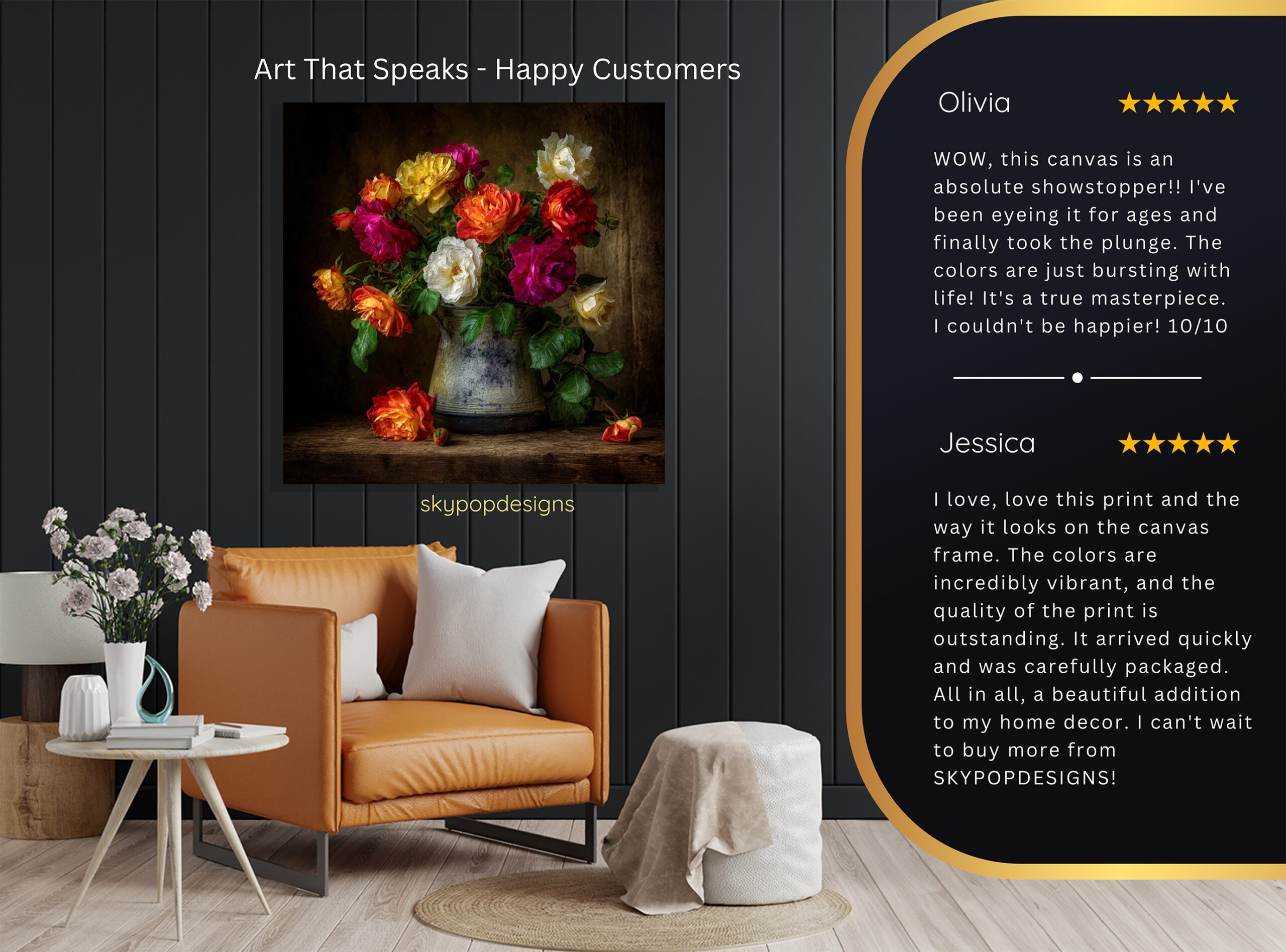 At SKYPOPDESIGNS, we specialize in high-quality canvas and poster prints designed to bring sophistication and style to your space. Please note that our designs are not created with 3D textures or as original oil, acrylic, or watercolor paintings; they are instead HD reproductions of original artwork. This approach allows us to offer these visually stunning pieces at competitive prices, ensuring you receive top-tier, maintenance-free art that’s easy to enjoy.