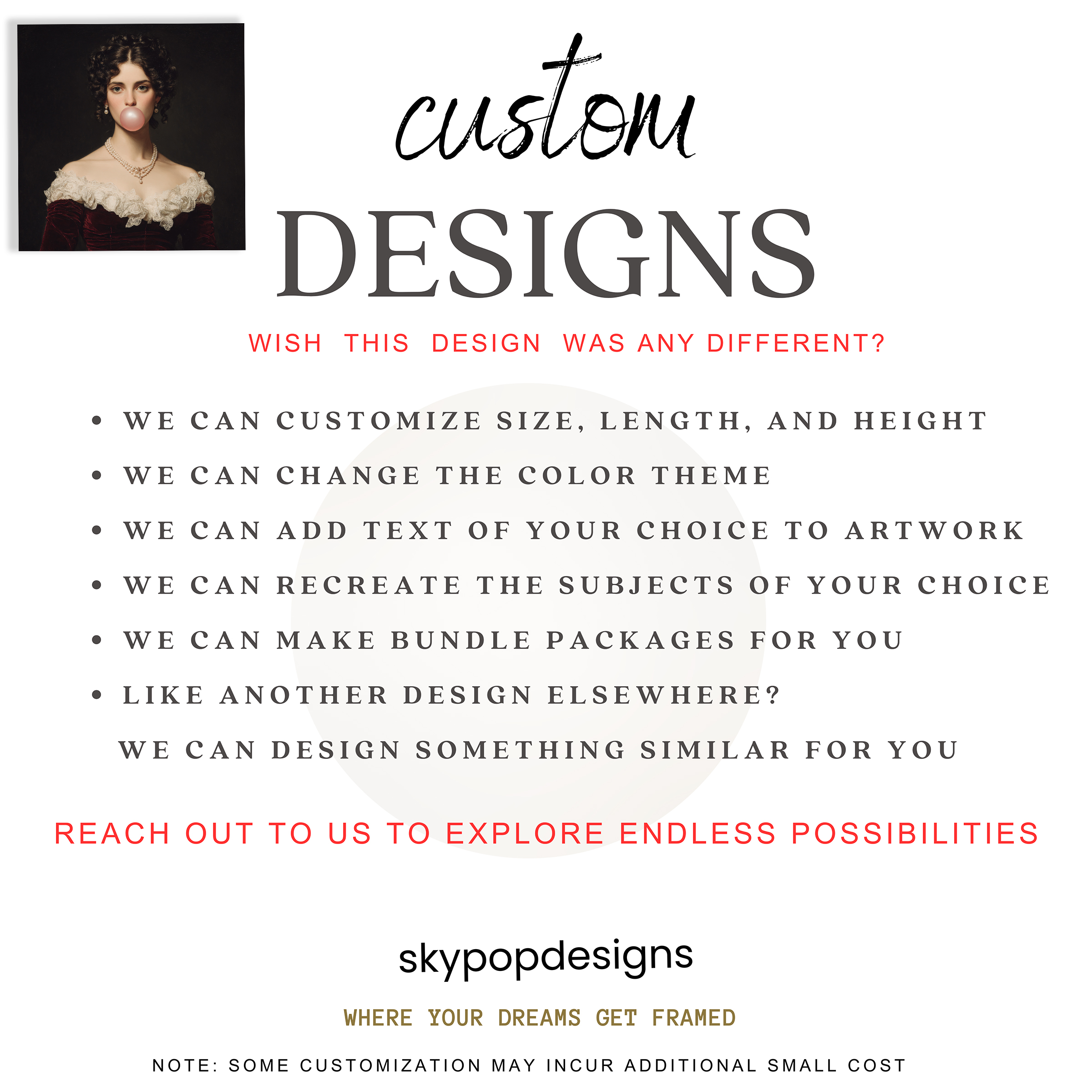 At SKYPOPDESIGNS, we specialize in high-quality canvas and poster prints designed to bring sophistication and style to your space. Please note that our designs are not created with 3D textures or as original oil, acrylic, or watercolor paintings; they are instead HD reproductions of original artwork. This approach allows us to offer these visually stunning pieces at competitive prices, ensuring you receive top-tier, maintenance-free art that’s easy to enjoy.