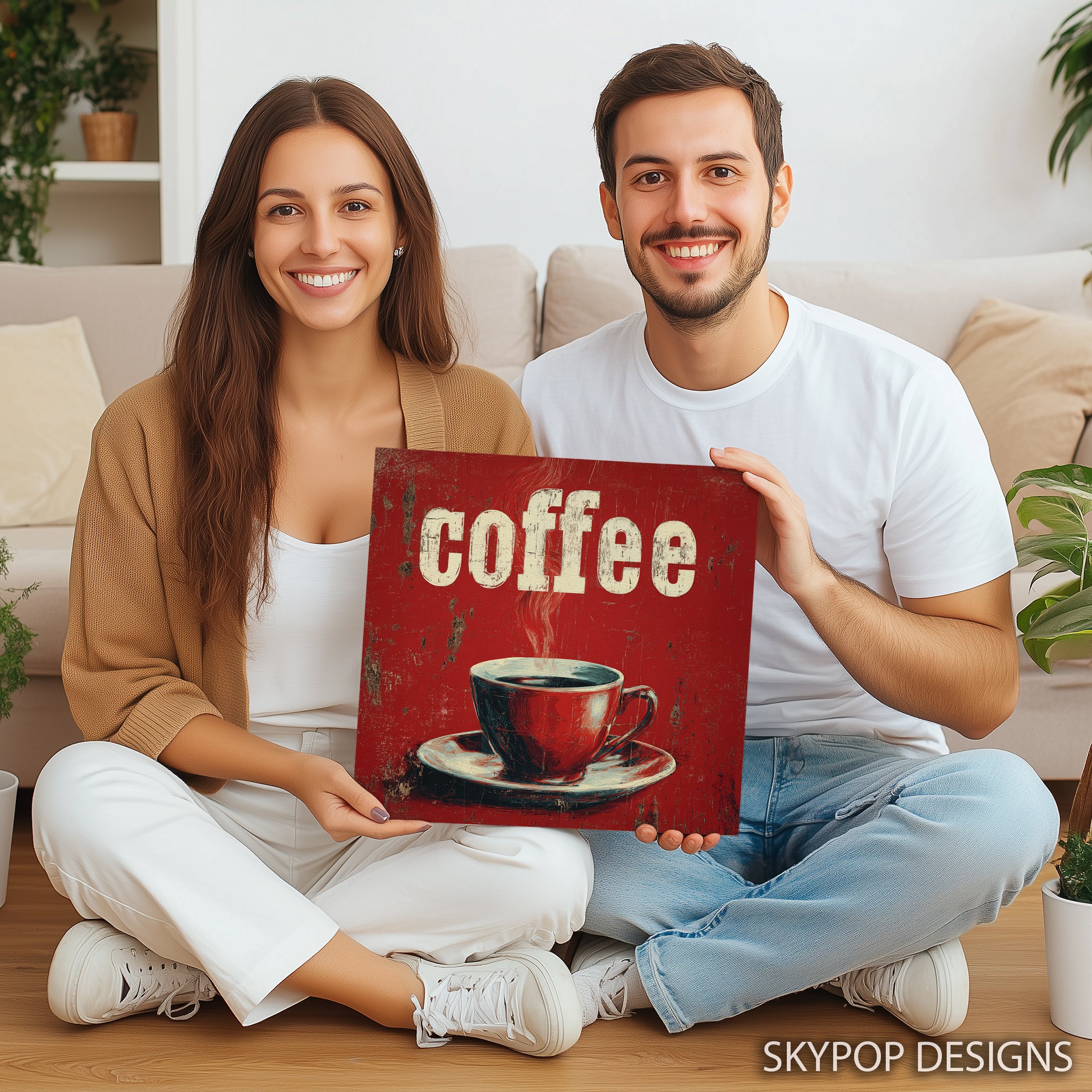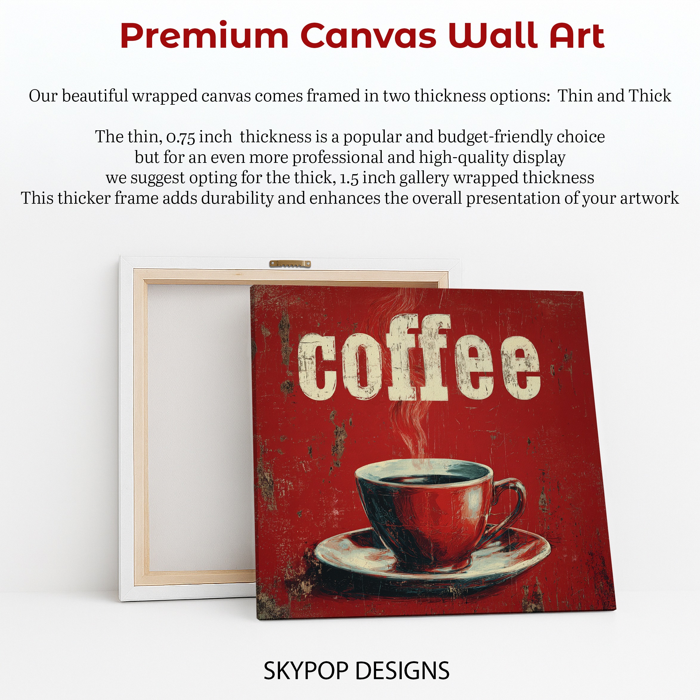 Elevate your space with this eye-catching vintage coffee canvas wall art that celebrates the timeless appeal of a perfect brew. The striking red background instantly draws attention, making this piece a focal point in any room. Perfect for kitchen decor, cafe ambiance, or adding a touch of retro charm to your dining area, this poster captures the essence of coffee culture. The distressed texture and worn edges give an authentic vintage feel, ideal for rustic or farmhouse-inspired interiors. The bold white “coffee” text contrasts beautifully against the vibrant red, creating a visually impactful design that’s sure to spark conversation. This canvas art isn’t just decorative – it’s a daily reminder to savor life’s simple pleasures. The steaming cup of coffee adds a cozy, inviting element, making it a great addition to breakfast nooks or home offices. Whether you’re a coffee enthusiast or simply appreciate retro-inspired decor, this piece adds character and warmth to any space. The high-quality printing ensures every detail, from the textured background to the cup’s subtle shading, is captured beautifully. Available in various sizes, this versatile wall art adapts to different room layouts and pairs well with both modern and traditional furnishings. Transform your space today with this charming coffee-themed artwork that blends vintage appeal with contemporary style.