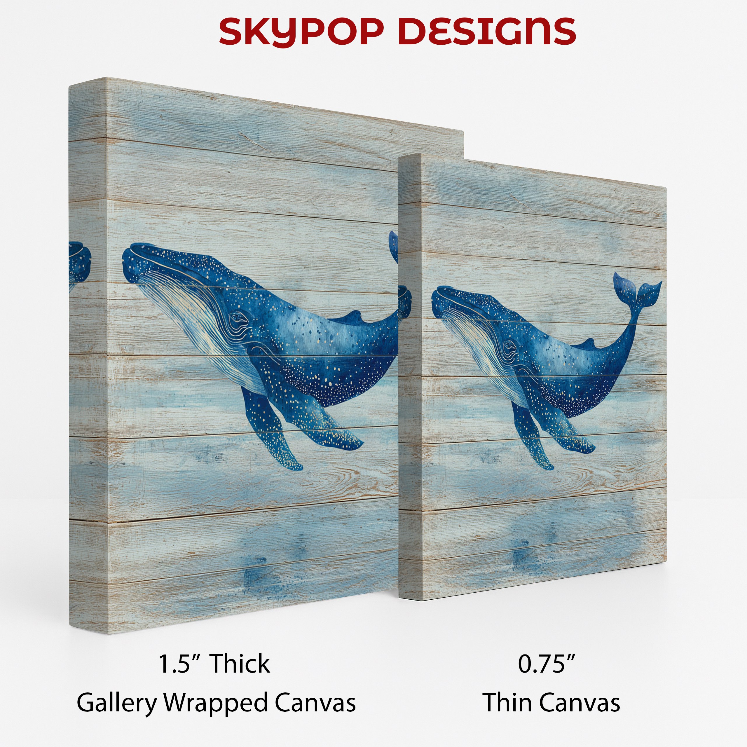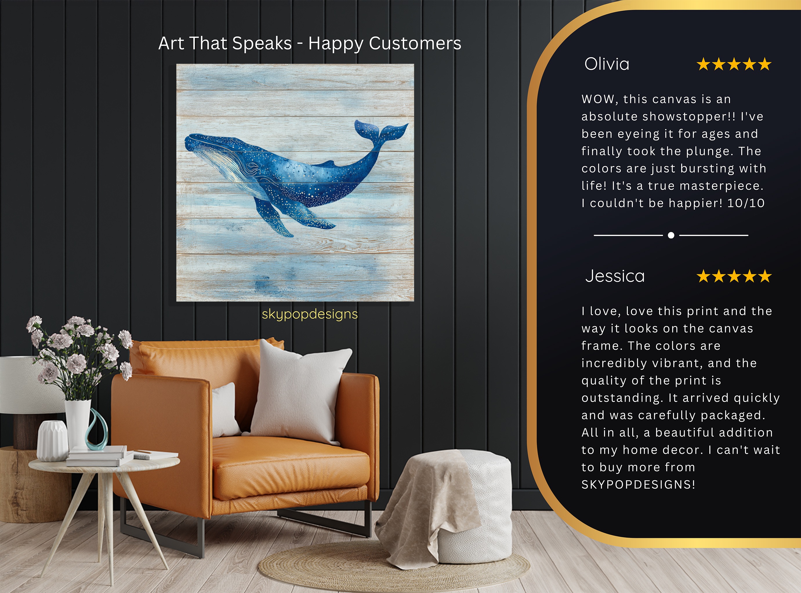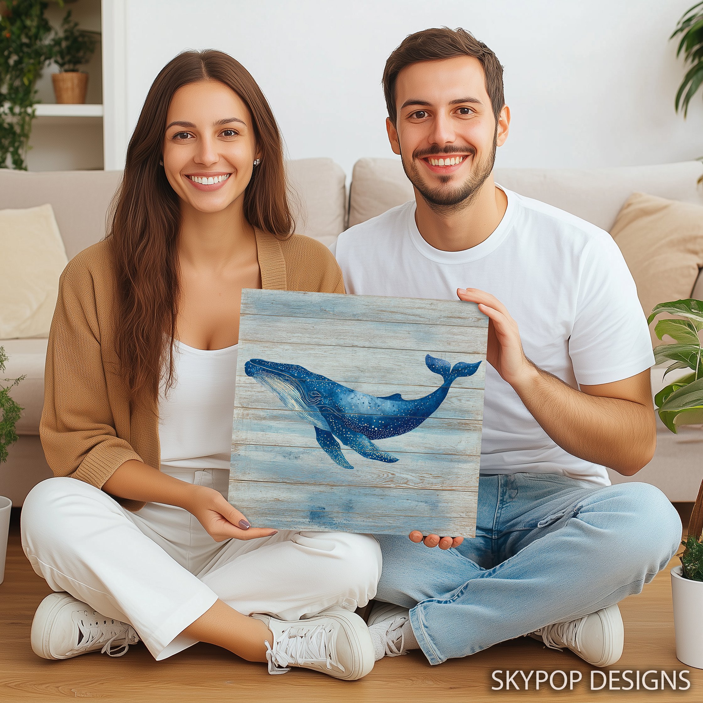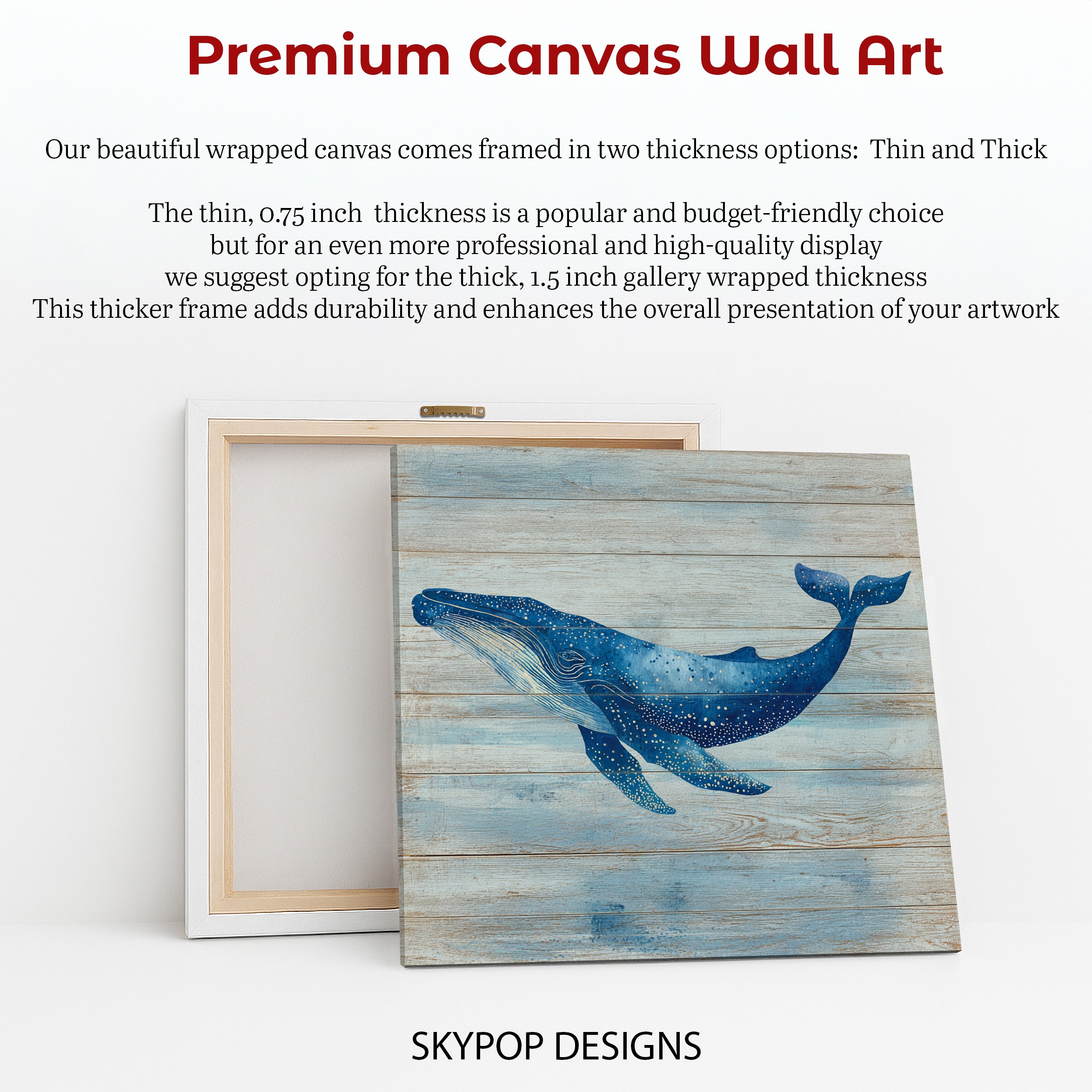 Dive into serenity with this stunning blue whale canvas wall art, perfect for transforming your space into a coastal oasis. The majestic whale, adorned with shimmering gold speckles, swims gracefully across a weathered wood background, creating a captivating blend of rustic charm and modern elegance. This eye-catching poster brings the calming essence of the ocean into your home, making it ideal for contemporary bathrooms, coastal-themed bedrooms, or modern living rooms seeking a touch of nature. The deep blue hues of the whale evoke a sense of tranquility, while the gold accents add a luxurious sparkle that catches the light beautifully. Versatile in size, this canvas art works wonderfully as a statement piece or as part of a curated gallery wall. The detailed artwork captures the whale’s gentle eye and streamlined form, celebrating the beauty of marine life. Perfect as a thoughtful housewarming gift or to elevate your own decor, this whale wall art inspires a connection to nature and the sea. The high-quality printing ensures every intricate detail shines, from the textured wood grain to the whale’s starry pattern. Whether you’re creating a relaxing bathroom retreat, a serene bedroom sanctuary, or a nature-inspired office space, this whale artwork brings a sense of wonder and coastal calm. Enhance your home’s atmosphere with this unique blend of animal art and contemporary style that celebrates the majesty of the ocean. Transform your walls and bring the beauty of the sea indoors with this enchanting whale canvas art today.