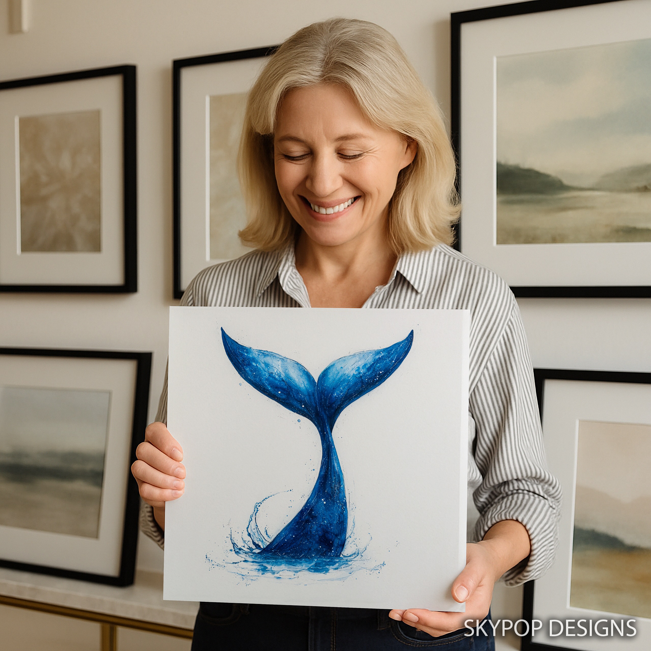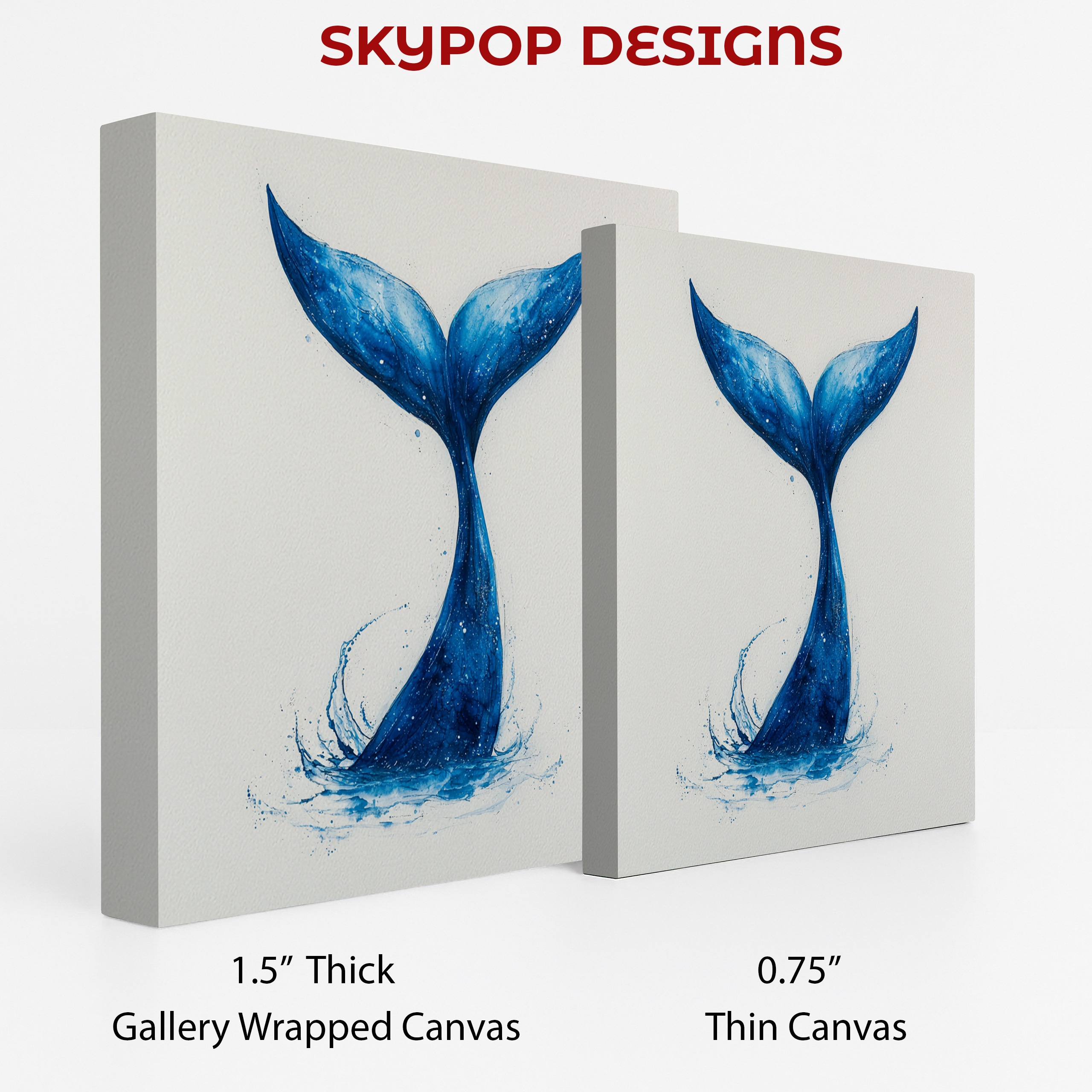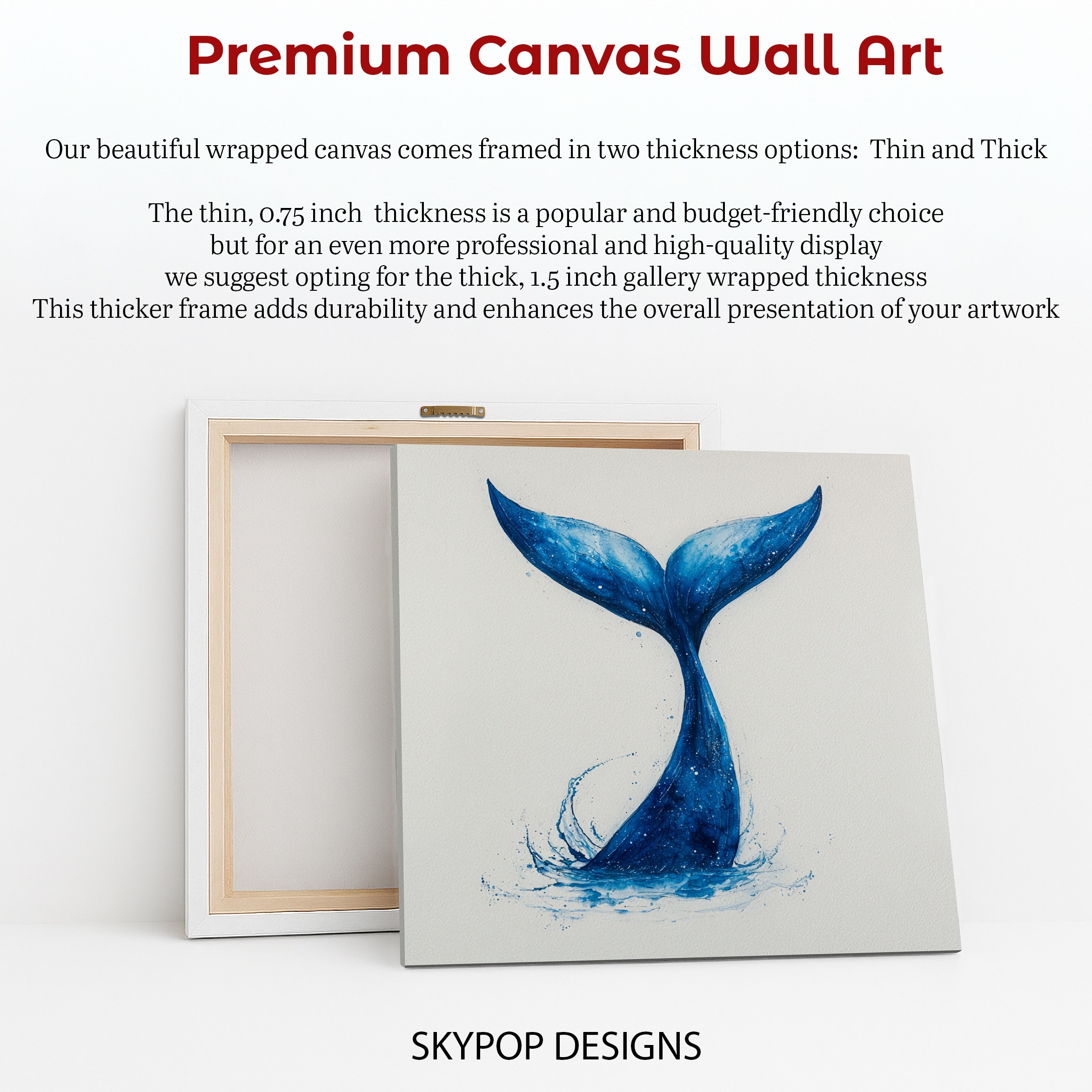 Dive into serenity with this stunning blue whale tail canvas wall art, perfect for transforming any space into a coastal oasis. The vibrant shades of blue capture the essence of the ocean, bringing a calming yet energizing presence to your home. This eye-catching poster showcases the majestic tail of a whale, emerging from splashing water, symbolizing strength and grace. Ideal for modern bathrooms or contemporary bedrooms, this piece adds a touch of marine wonder to your decor. The watercolor-like texture and minimalist design make it a versatile addition to living rooms or offices seeking a tranquil atmosphere. The striking contrast between the deep blue tail and white background creates a focal point that draws the eye and sparks conversation. Perfect as a housewarming gift or to celebrate your love for marine life, this canvas art adapts beautifully to various interior styles. The high-quality printing ensures every detail of the whale’s tail and water droplets is captured with precision. Whether you’re creating a coastal retreat or simply want to bring a piece of the ocean into your urban dwelling, this whale tail artwork is sure to make a splash. Elevate your wall decor with this captivating blend of nature and artistry, and let the serene beauty of the sea inspire your daily life. Transform your space today with this enchanting whale tail canvas that brings the majesty of the ocean right to your walls.