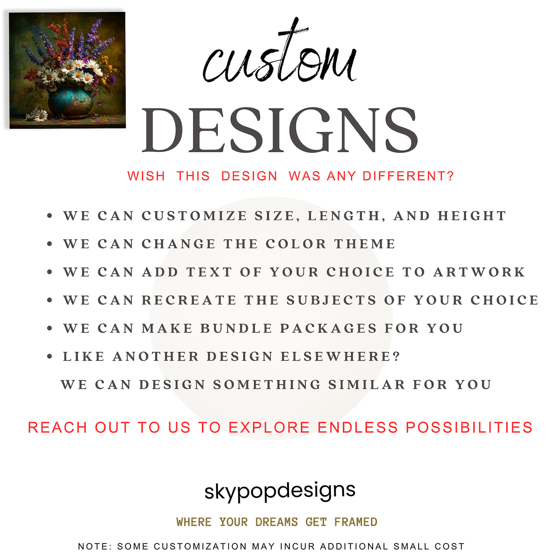 At SKYPOPDESIGNS, we specialize in high-quality canvas and poster prints designed to bring sophistication and style to your space. Please note that our designs are not created with 3D textures or as original oil, acrylic, or watercolor paintings; they are instead HD reproductions of original artwork. This approach allows us to offer these visually stunning pieces at competitive prices, ensuring you receive top-tier, maintenance-free art that’s easy to enjoy.
