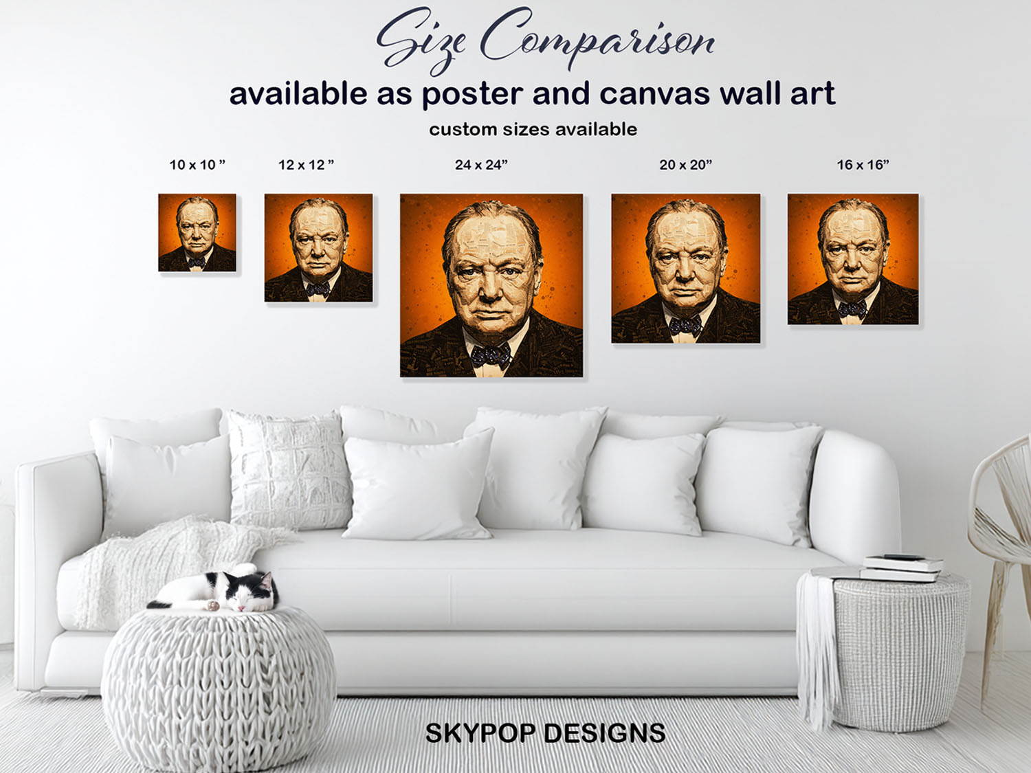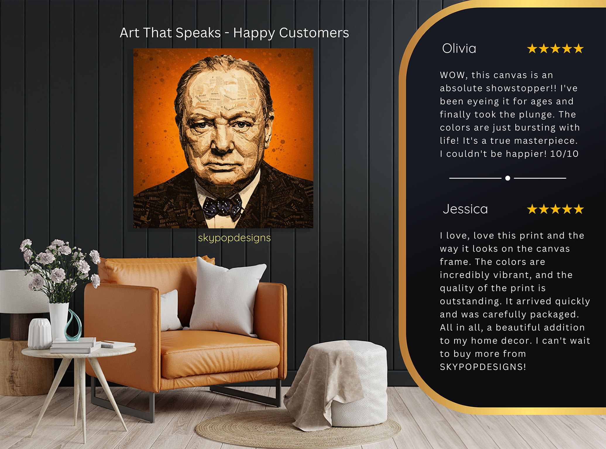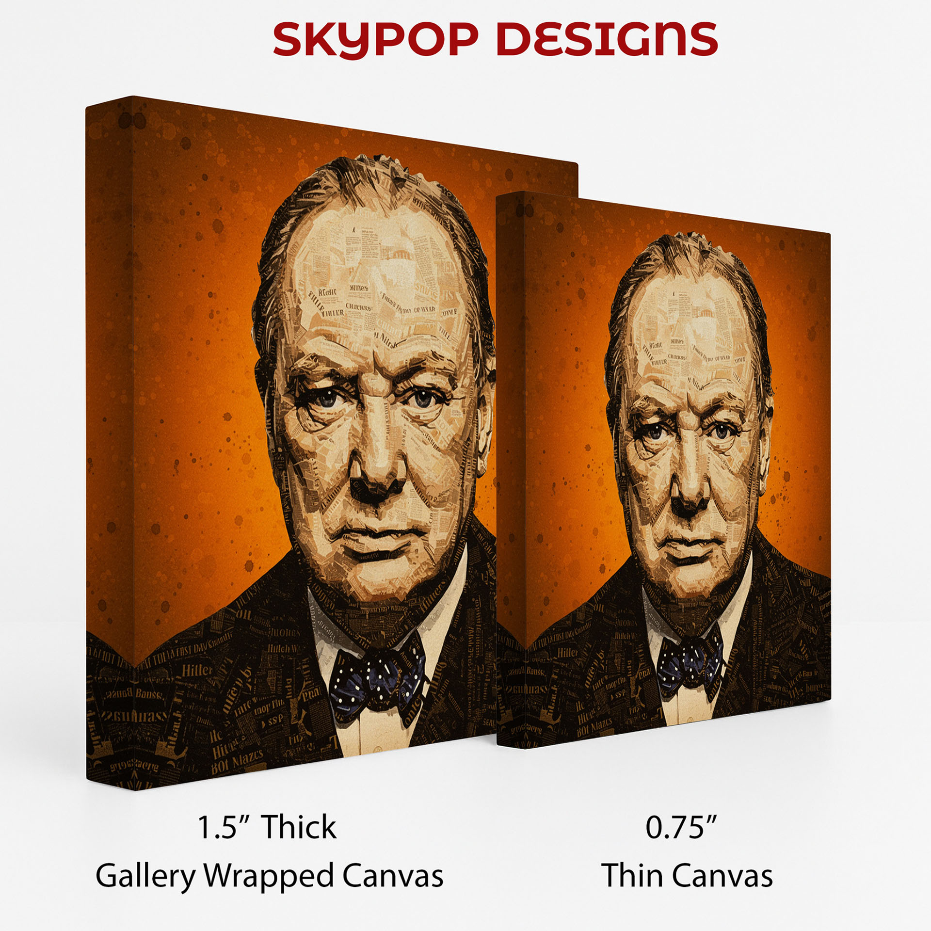 Transform your space with this striking Winston Churchill canvas wall art, a unique collage piece that captures the essence of iconic leadership. This poster or canvas wall art is perfect for creating a bold statement in a modern office or an inspiring focal point in a living room. The intricate detail of text and imagery woven into Churchill’s portrait offers a captivating visual experience, making it ideal for industrial or contemporary decor styles. The rich brown and black tones, accented with subtle gold and orange hues, create a sophisticated and powerful aesthetic that can elevate any space. This figurative art piece celebrates a pivotal historical figure, making it a great conversation starter and a thoughtful gift for history buffs, leaders, or anyone who appreciates inspirational wall art. The newspaper texture adds a unique depth and character, showcasing classic typography and historical references that resonate with strength and resilience. Whether displayed as a large-format canvas wall art or a smaller print, this artwork brings a sense of gravitas and historical significance to your home library or game room. High-quality printing ensures every word and subtle nuance of the collage is captured with stunning clarity. Elevate your surroundings with this exceptional Churchill poster that blends historical narrative with striking visual art. Make this powerful Winston Churchill artwork a distinguished addition to your collection today.