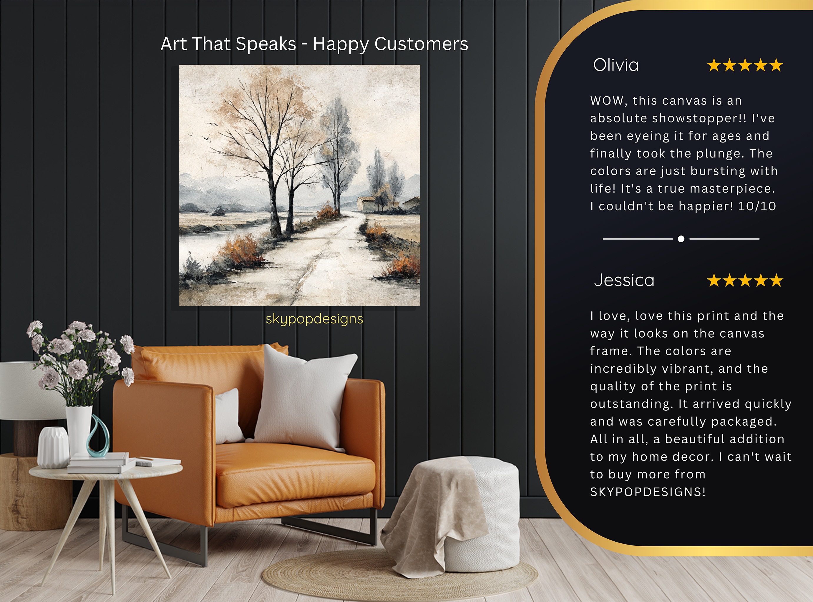 At SKYPOPDESIGNS, we specialize in high-quality canvas and poster prints designed to bring sophistication and style to your space. Please note that our designs are not created with 3D textures or as original oil, acrylic, or watercolor paintings; they are instead HD reproductions of original artwork. This approach allows us to offer these visually stunning pieces at competitive prices, ensuring you receive top-tier, maintenance-free art that’s easy to enjoy.