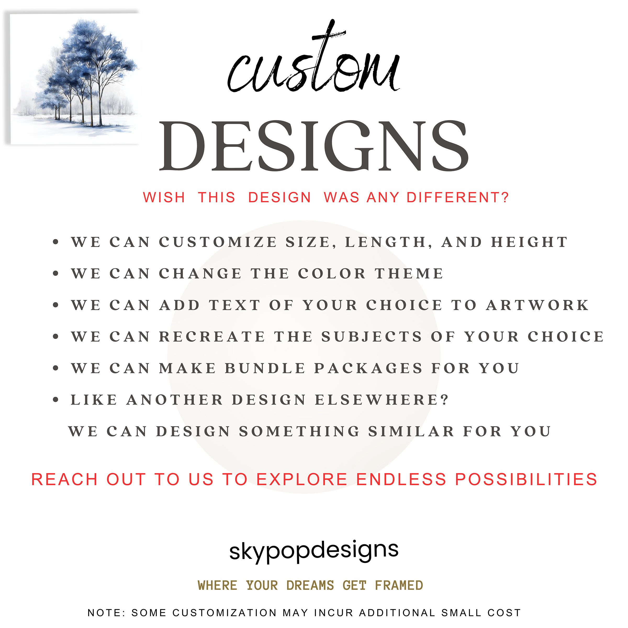 Looking for a custom design, or do you love a particular design but need it in a different size or orientation? Perhaps you’ve found a design elsewhere and wish for us to create something similar for you? Drop us a message! We’re dedicated to meeting your needs and will work closely with you to ensure your vision comes to life.