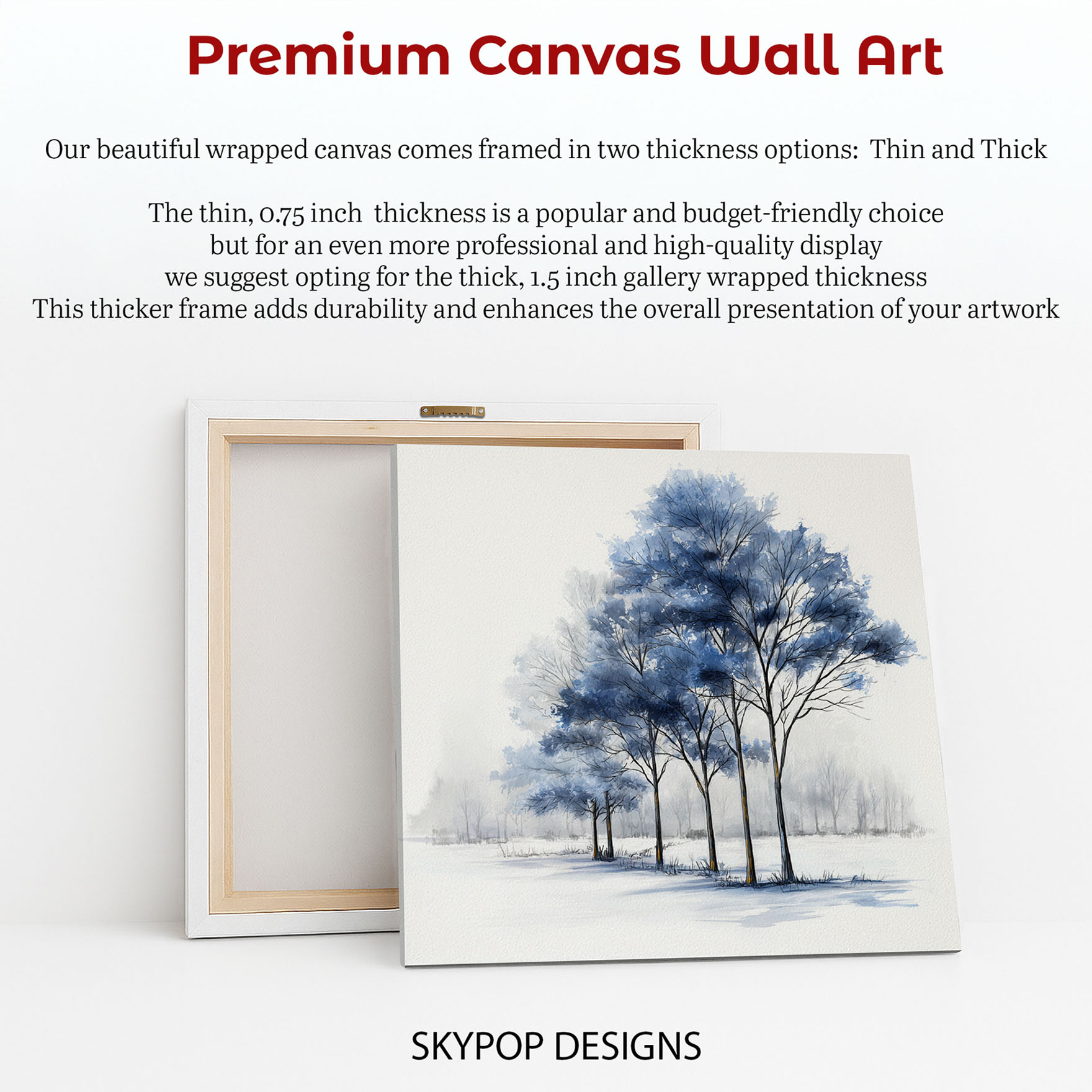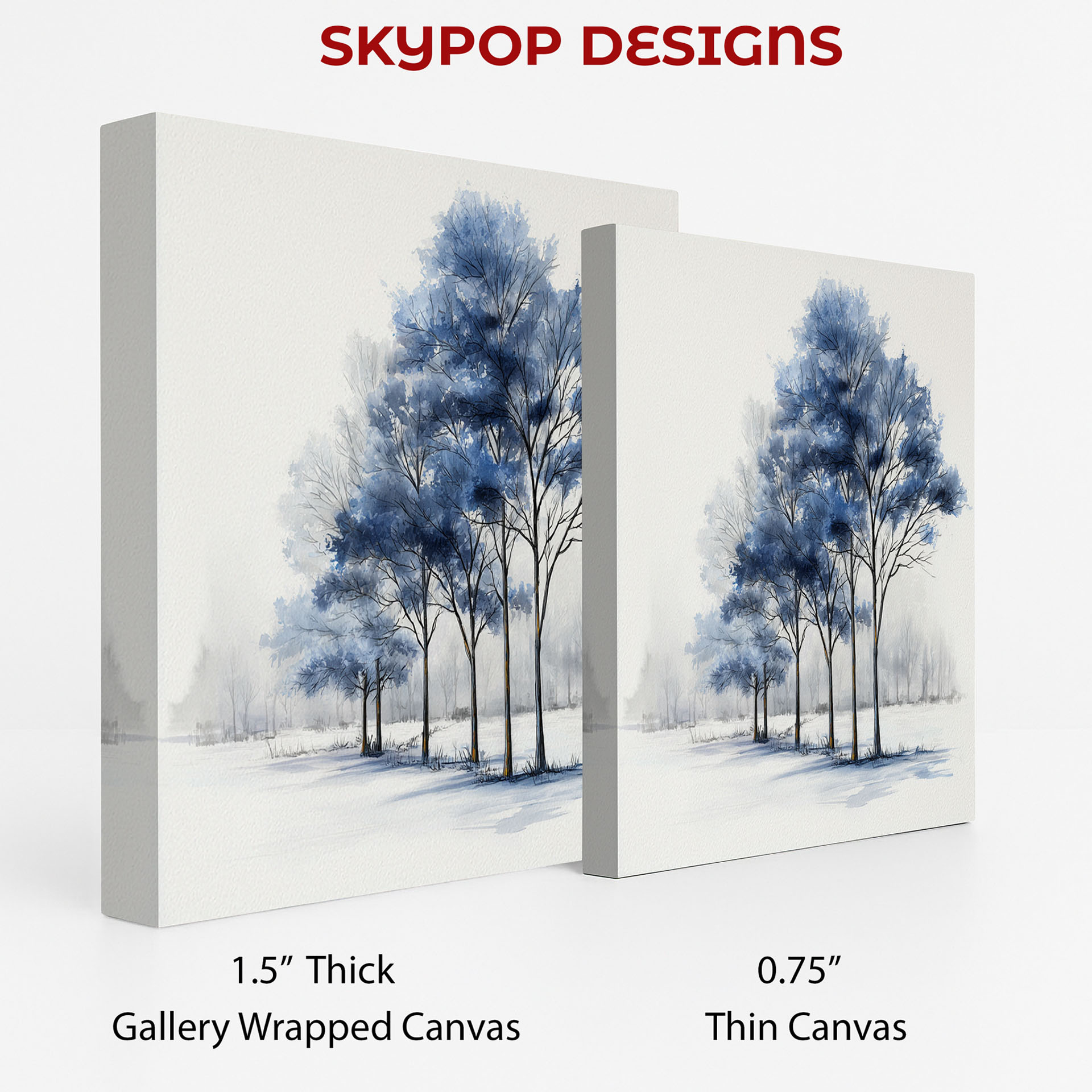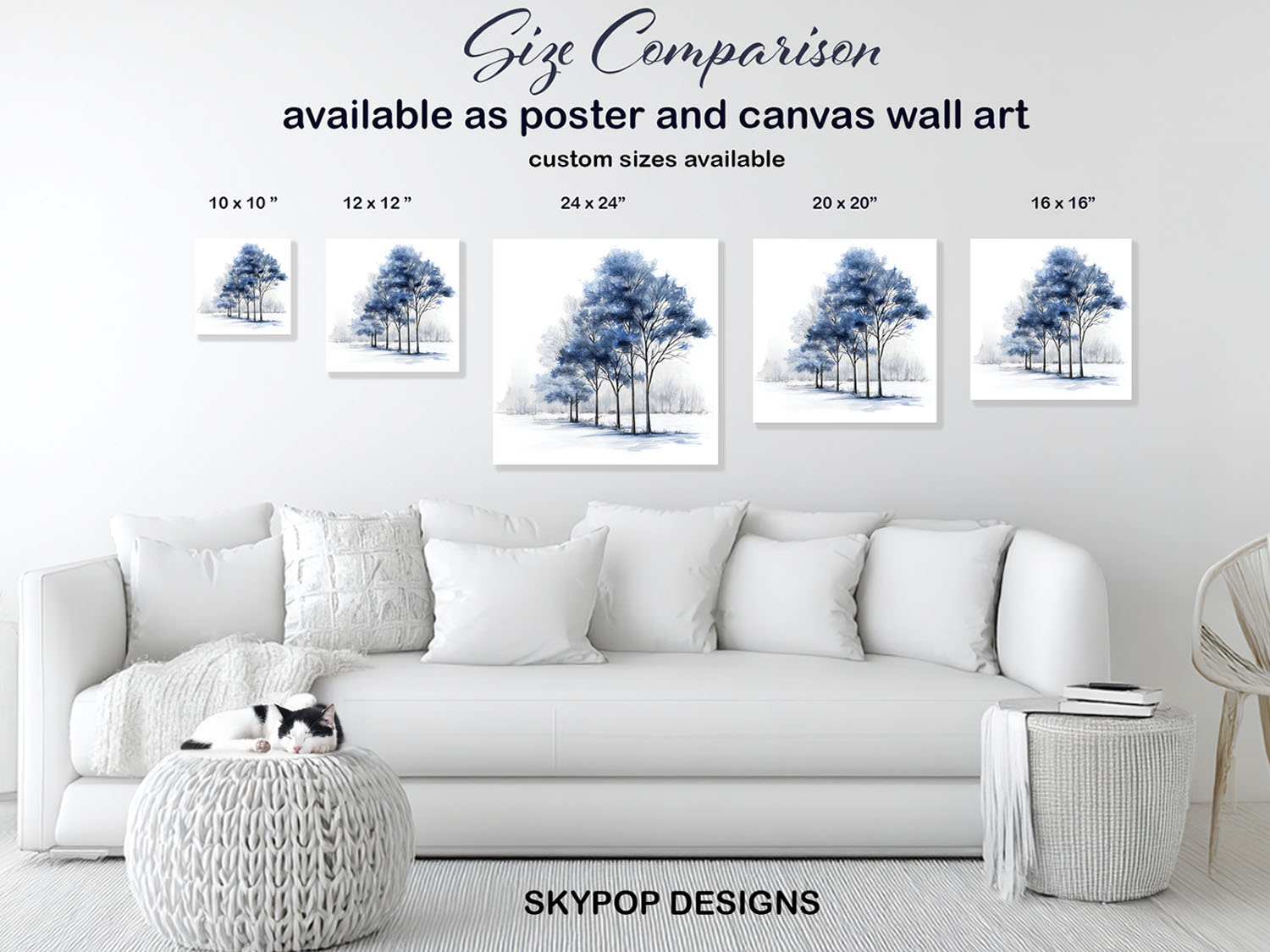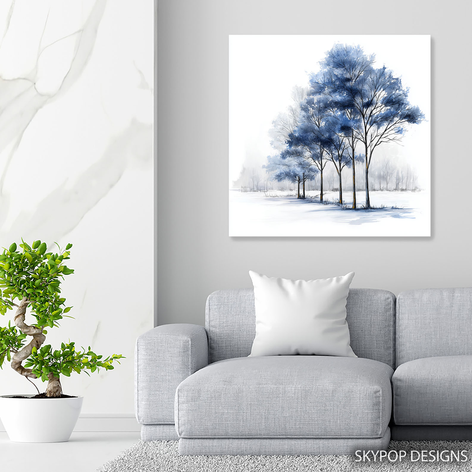 Winter Trees Art, Canvas or Poster, Nature Minimalist Decor, Living Room Bedroom Office Wall Art, Blue White Grey and Black