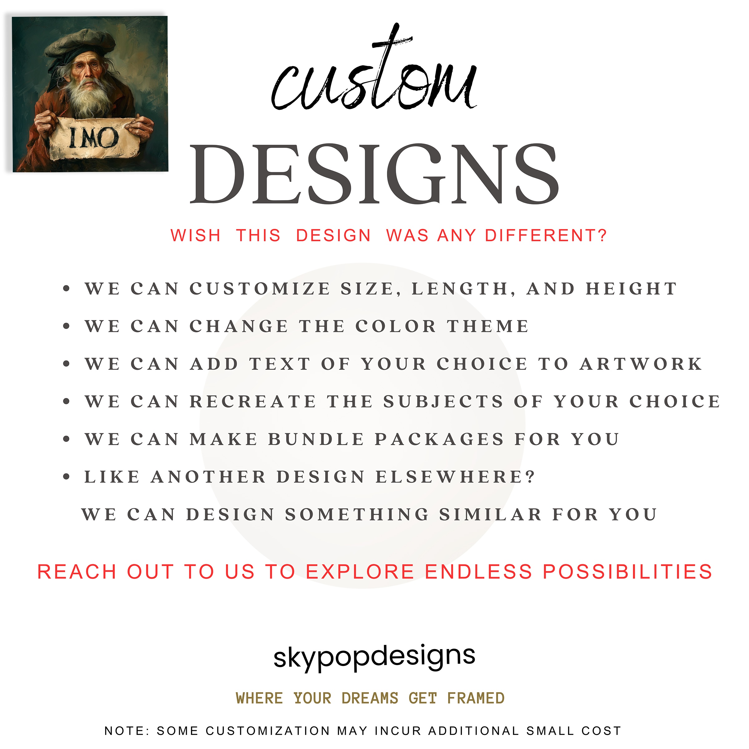 At SKYPOPDESIGNS, we specialize in high-quality canvas and poster prints designed to bring sophistication and style to your space. Please note that our designs are not created with 3D textures or as original oil, acrylic, or watercolor paintings; they are instead HD reproductions of original artwork. This approach allows us to offer these visually stunning pieces at competitive prices, ensuring you receive top-tier, maintenance-free art that’s easy to enjoy.