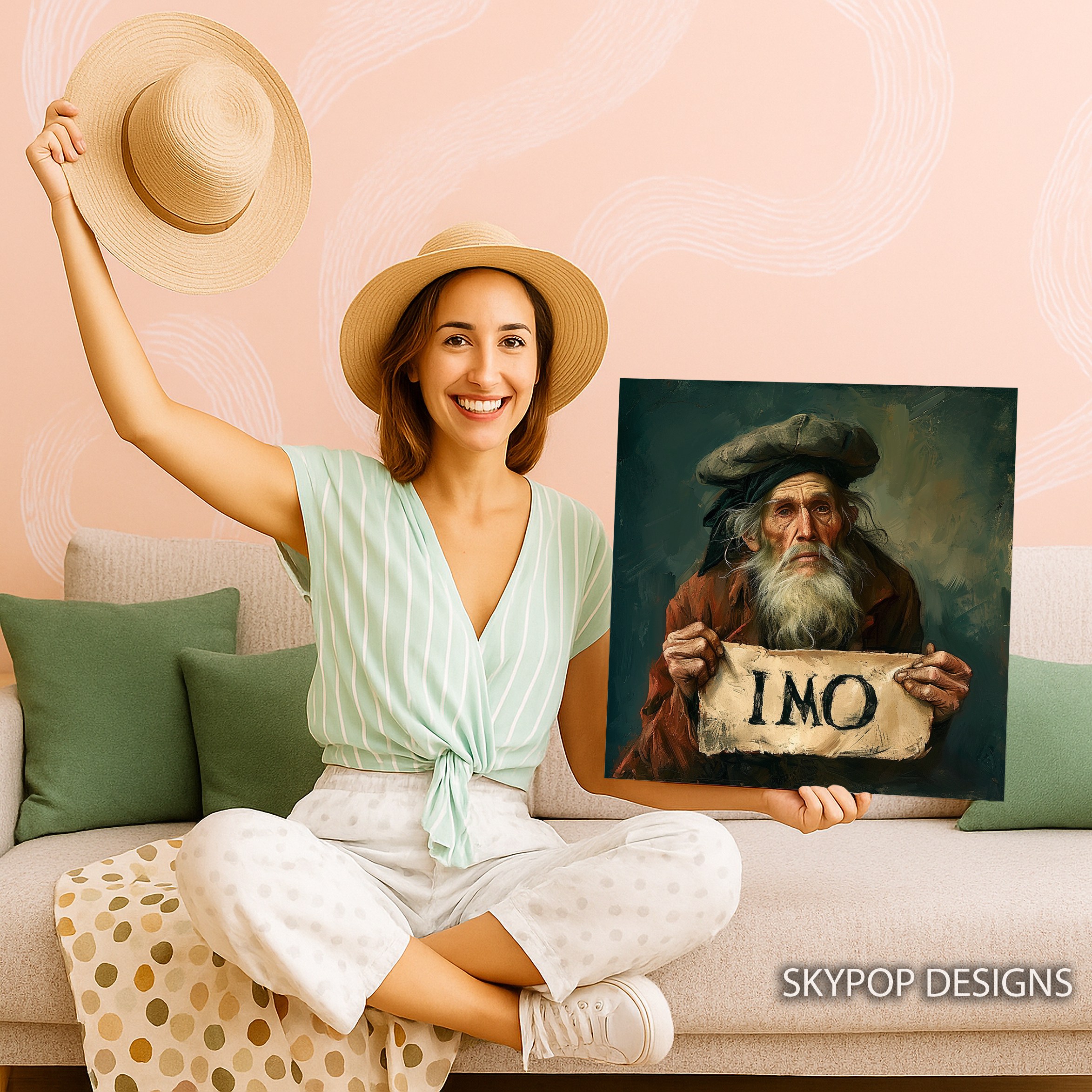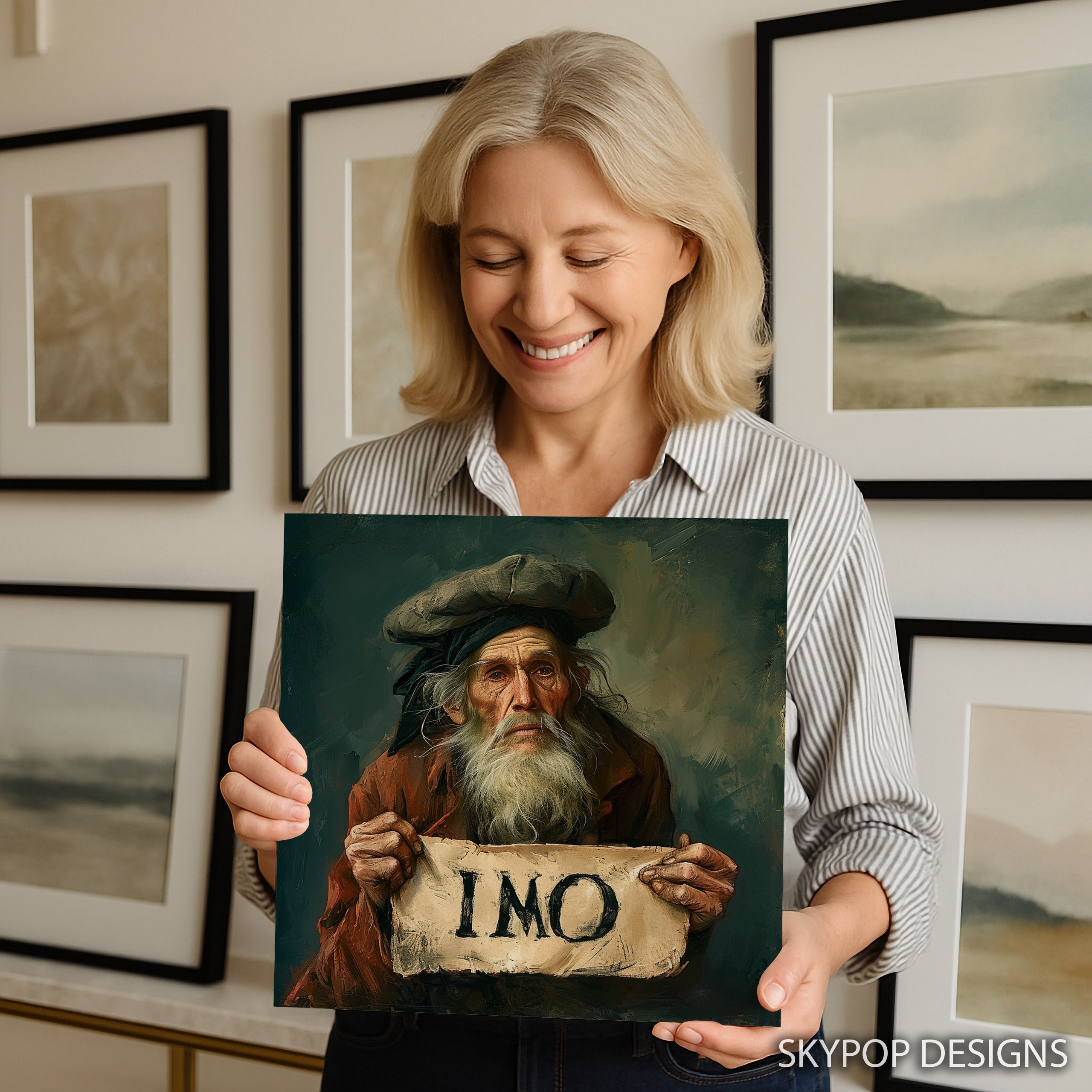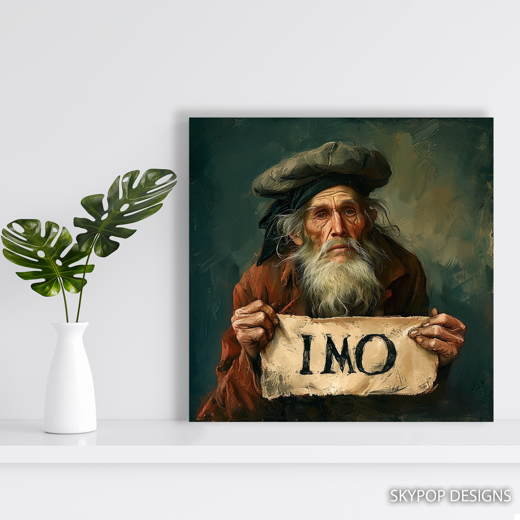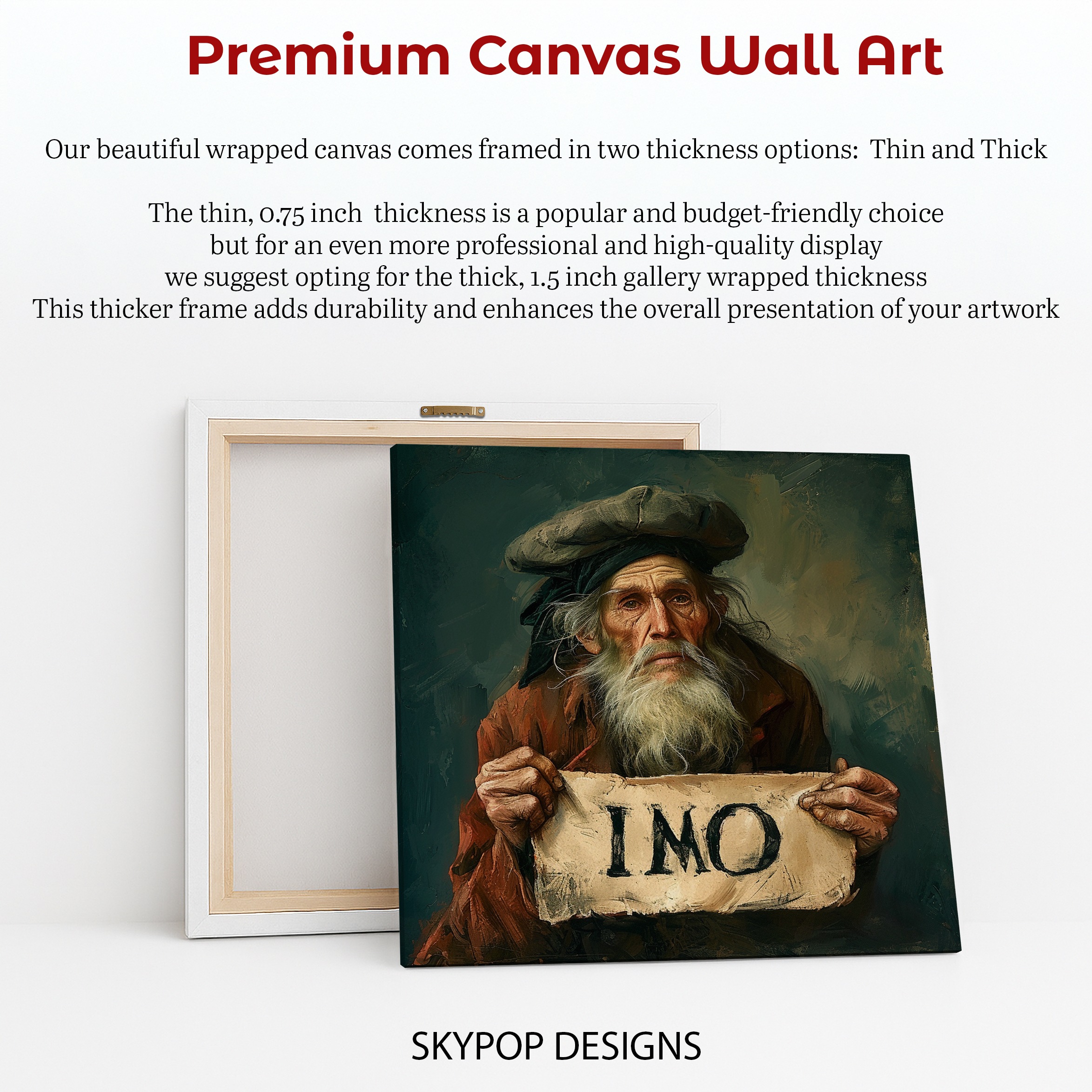 Elevate your space with this captivating canvas wall art featuring a striking portrait of an elderly man. This timeless piece transforms any room with its rich, earthy tones and intricate details, perfect for adding depth and character to traditional or rustic decor. The subject’s weathered face and penetrating gaze draw viewers in, while his flowing white beard and oversized hat create a sense of wisdom and dignity. Ideal for a home office or library, this canvas art serves as a daily inspiration and conversation starter. The bold “IMO” sign held by the figure adds an intriguing element, inviting contemplation and discussion. Whether displayed in a Victorian-style living room or a cozy study, this artwork enhances the atmosphere with its classic charm and vintage appeal. The masterful brushwork and warm color palette create a stunning focal point that complements various interior styles. Perfect as a thoughtful gift for history buffs or art enthusiasts, this versatile canvas adapts beautifully to different spaces and lighting conditions. High-quality printing captures every nuance, from the subject’s expressive eyes to the texture of his rustic attire. Transform your walls with this powerful piece that celebrates human resilience and the passage of time. Add this thought-provoking canvas art to your collection and create a sophisticated ambiance in your home or office today.