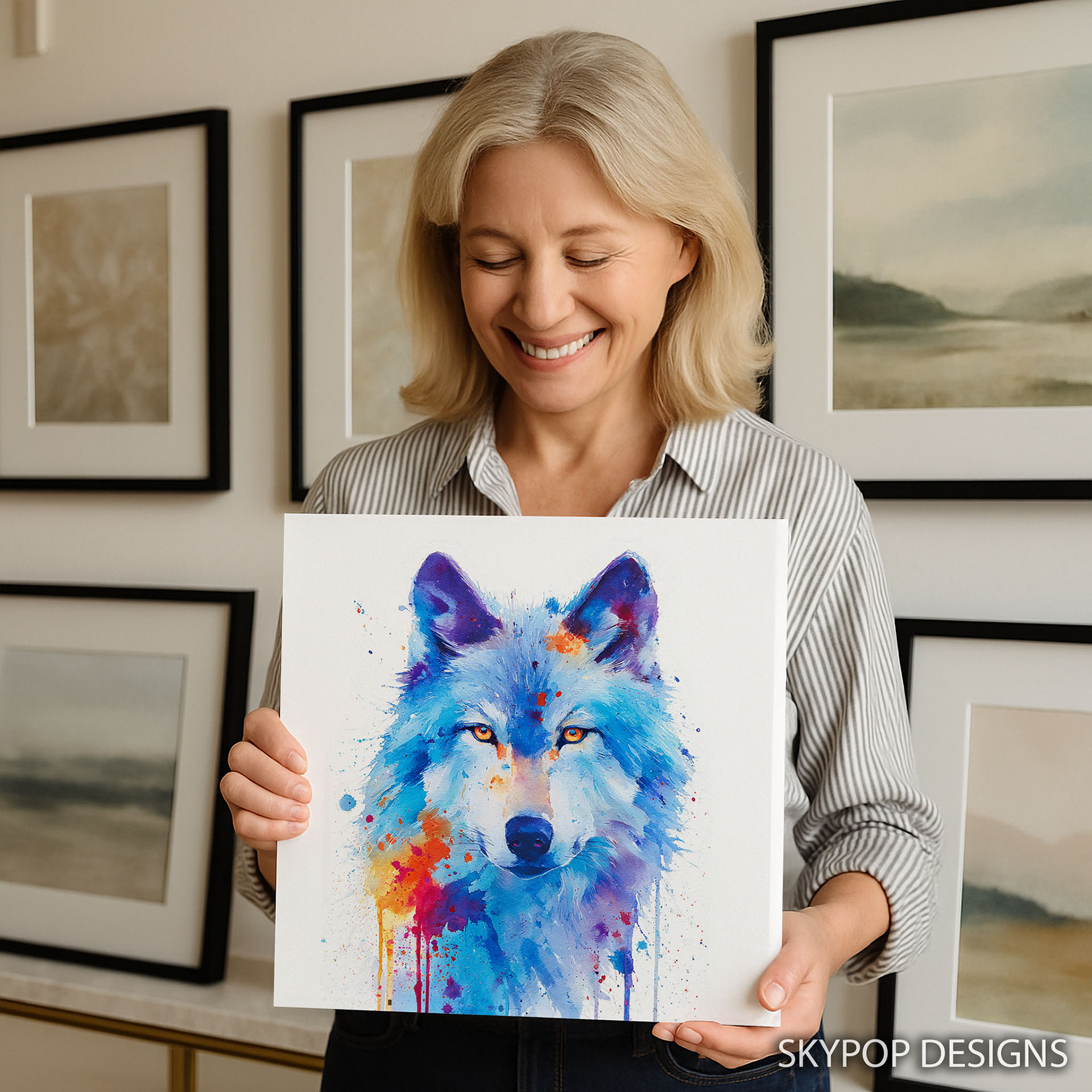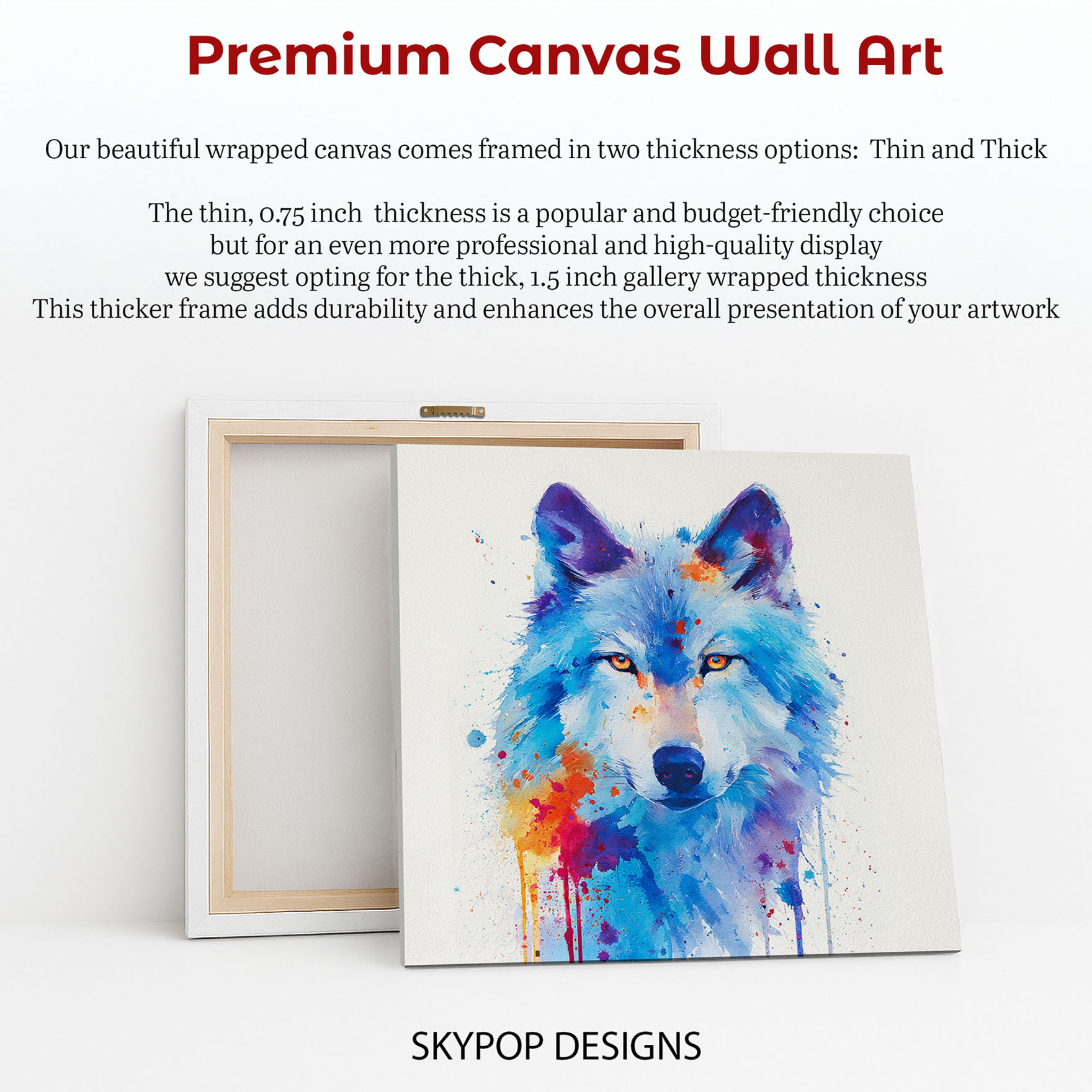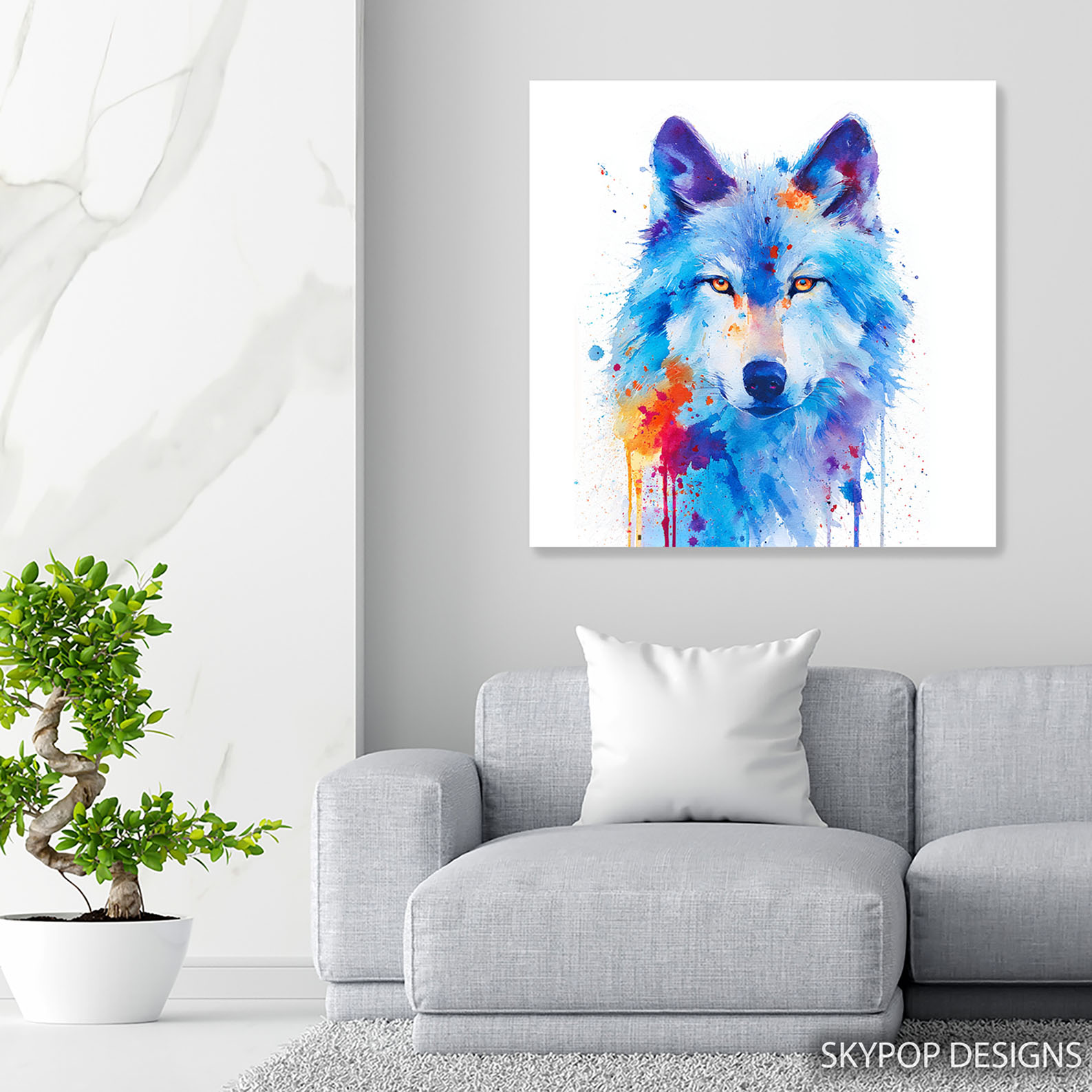 Transform your home with this striking Wolf canvas wall art, a captivating piece that features a wolf rendered in a vibrant, abstract watercolor style. This poster or canvas wall art is perfect for adding a bold statement to modern living room decor or inspiring creativity in your office space. The fusion of vivid blues, purples, and oranges creates a dynamic visual energy that captures the spirit of the wild. Ideal for bohemian interiors, this artwork brings a touch of untamed beauty and artistic flair. The abstract nature of this animal art allows for personal interpretation, making each viewing a unique experience. High-quality printing on canvas ensures the rich colors and textures pop, making this poster or canvas wall art a stunning focal point. Elevate your bedroom or entryway with this eye-catching piece that sparks conversation and adds personality. This wolf art works wonderfully in contemporary settings, complementing minimalist decor with its striking color palette. Perfect as a distinctive housewarming gift or for anyone who appreciates powerful nature-inspired art, this canvas wall art delivers lasting impact. The splash of orange and purple against the dominant blue hues symbolizes passion and intuition, adding emotional depth to your decor. Celebrate the untamed spirit with this exceptional piece of contemporary animal wall art. Make your space come alive with this breathtaking Wolf canvas art today.