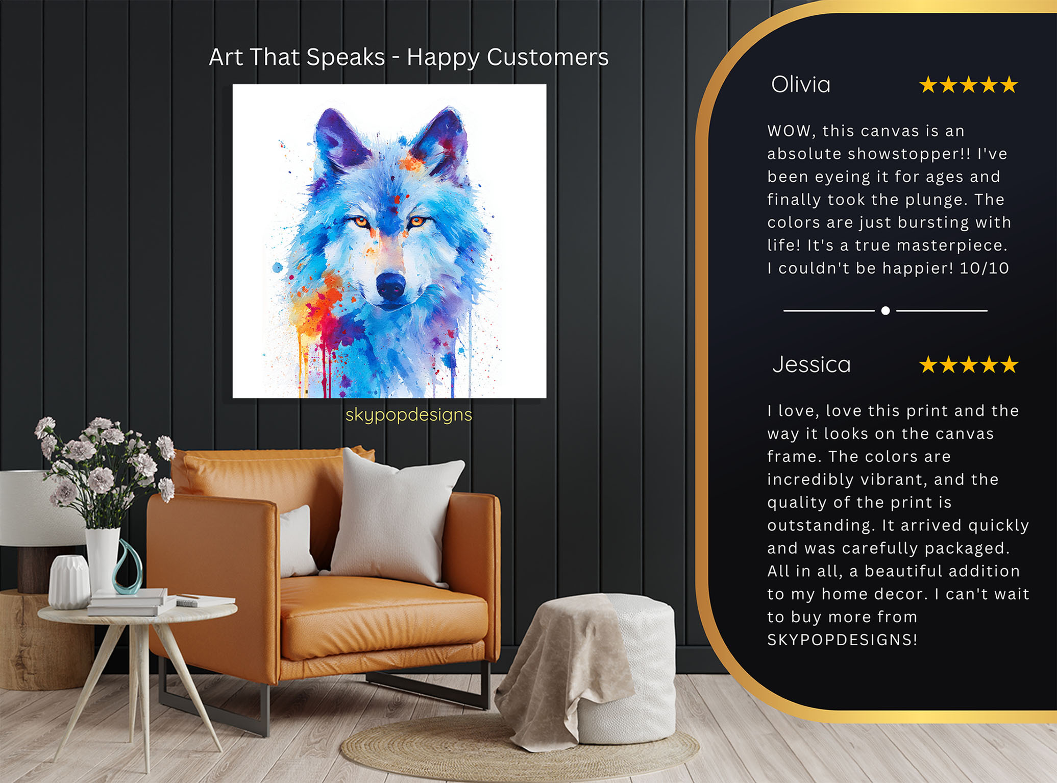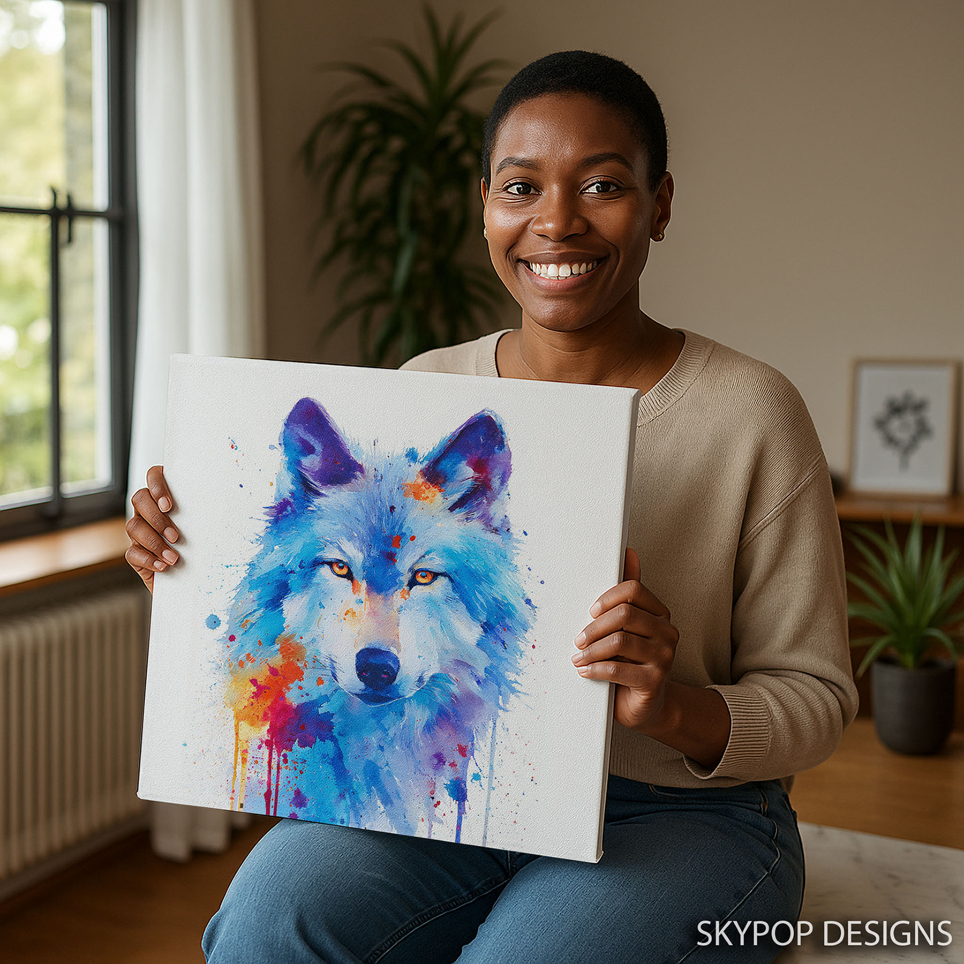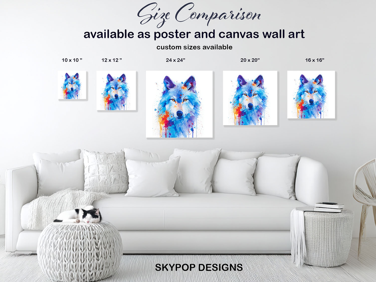 Transform your home with this striking Wolf canvas wall art, a captivating piece that features a wolf rendered in a vibrant, abstract watercolor style. This poster or canvas wall art is perfect for adding a bold statement to modern living room decor or inspiring creativity in your office space. The fusion of vivid blues, purples, and oranges creates a dynamic visual energy that captures the spirit of the wild. Ideal for bohemian interiors, this artwork brings a touch of untamed beauty and artistic flair. The abstract nature of this animal art allows for personal interpretation, making each viewing a unique experience. High-quality printing on canvas ensures the rich colors and textures pop, making this poster or canvas wall art a stunning focal point. Elevate your bedroom or entryway with this eye-catching piece that sparks conversation and adds personality. This wolf art works wonderfully in contemporary settings, complementing minimalist decor with its striking color palette. Perfect as a distinctive housewarming gift or for anyone who appreciates powerful nature-inspired art, this canvas wall art delivers lasting impact. The splash of orange and purple against the dominant blue hues symbolizes passion and intuition, adding emotional depth to your decor. Celebrate the untamed spirit with this exceptional piece of contemporary animal wall art. Make your space come alive with this breathtaking Wolf canvas art today.
