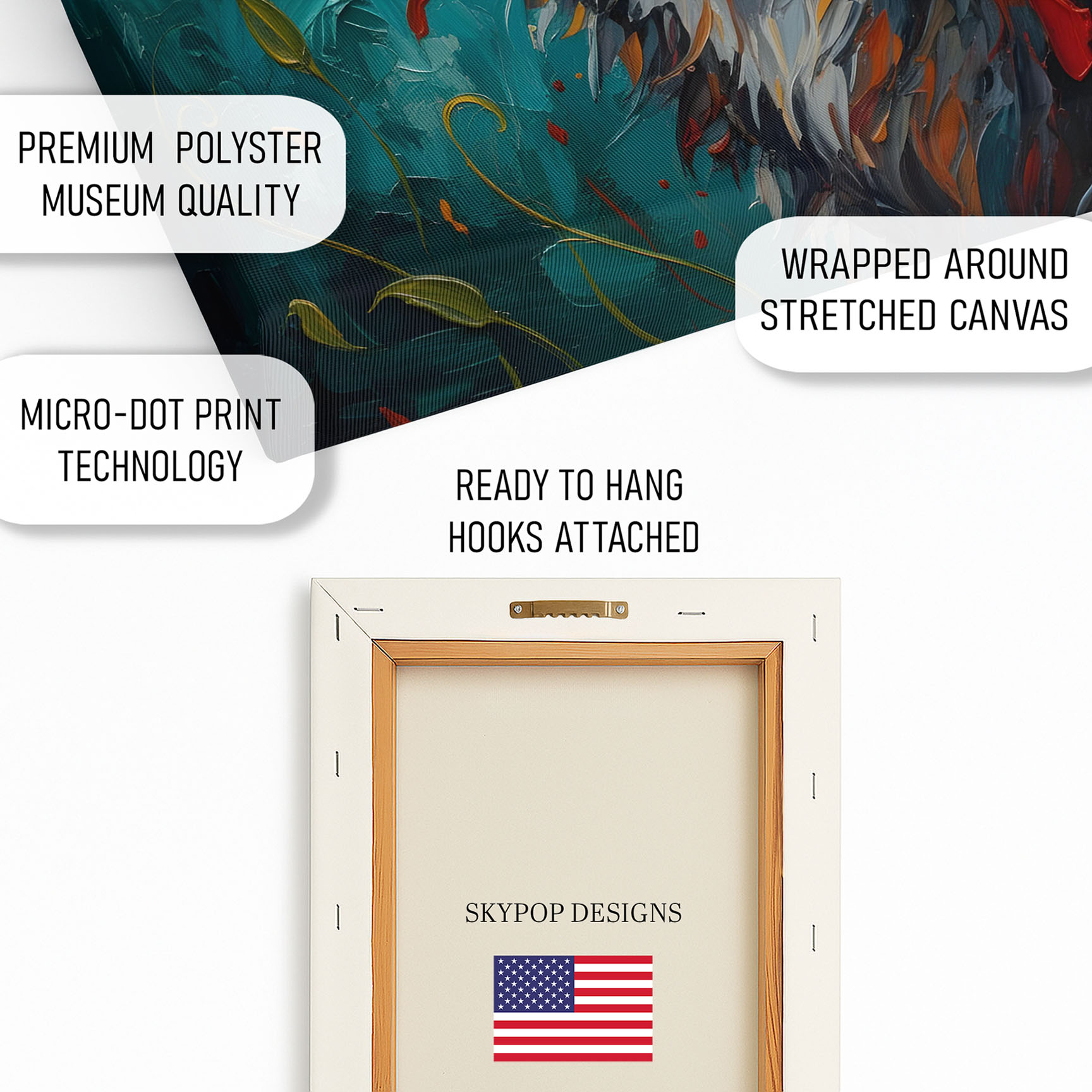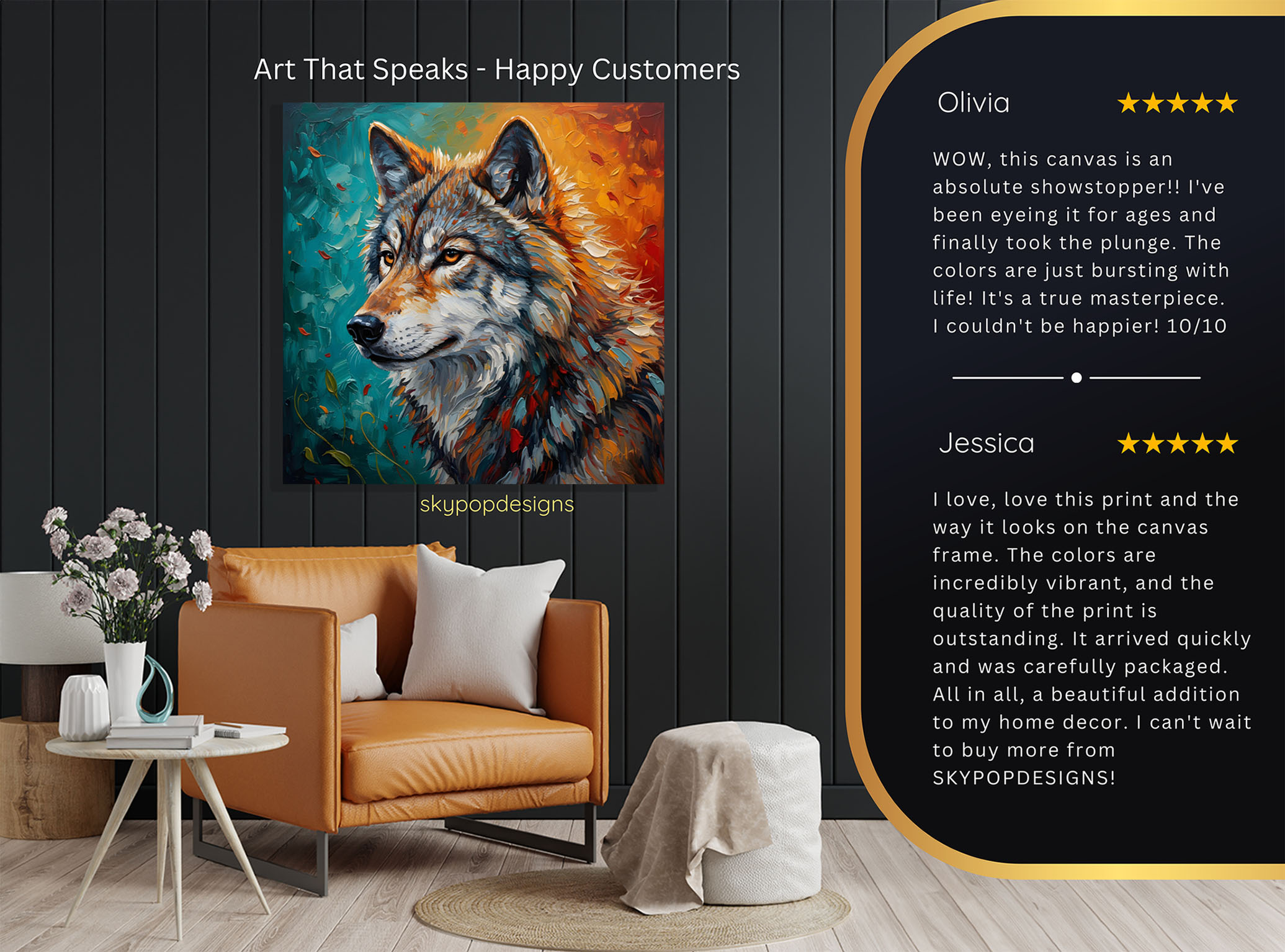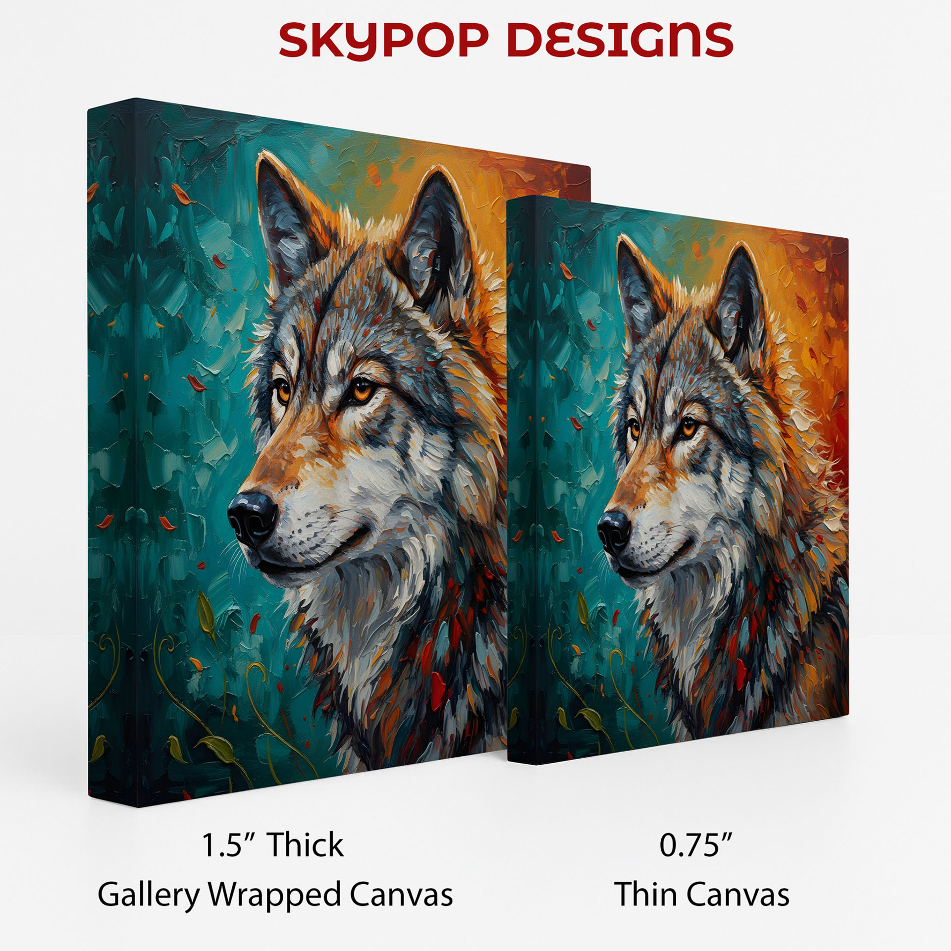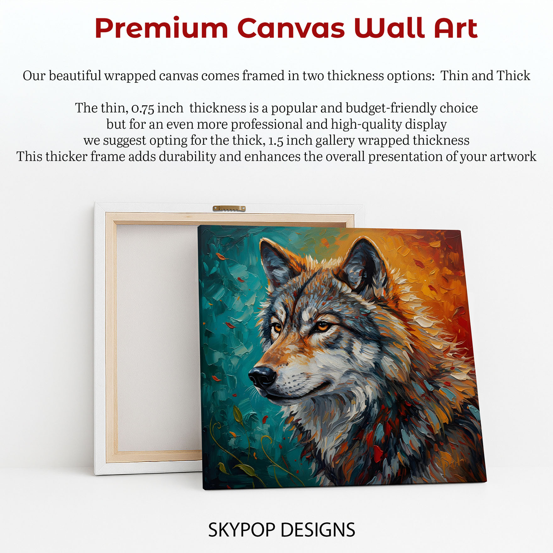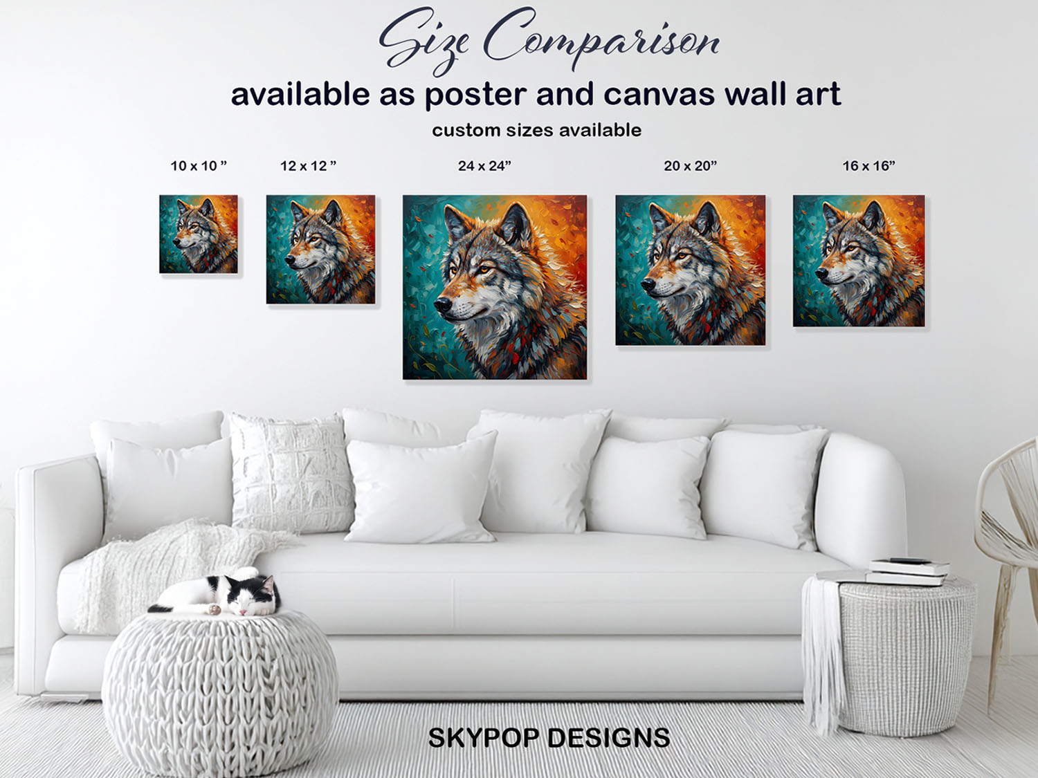 Bring the untamed spirit of nature into your home with this striking wolf canvas wall art. This captivating poster or canvas wall art features a majestic wolf rendered in a bold, textured contemporary style, perfect for transforming any living room into a statement space. The vibrant interplay of teal and fiery orange hues creates a dramatic backdrop, highlighting the wolf’s intense gaze and rich fur textures. Ideal for modern and rustic decor, this animal art piece adds a touch of wild elegance to your office or entryway. The dynamic brushstrokes and liberal use of paint give this wolf artwork a sense of depth and movement, making it a true focal point. Its sophisticated color palette evokes feelings of strength and natural beauty, enhancing the overall mood of your interior design. This versatile canvas wall art is a fantastic gift for nature lovers, birthdays, or housewarming celebrations, offering a unique addition to their collection. The high-quality printing ensures the rich colors and intricate details are preserved, making this wolf poster a lasting treasure. Elevate your wall decor with this powerful wolf artwork that celebrates the beauty and resilience of the wild. This stunning piece is designed to inspire conversation and bring a touch of the extraordinary to your everyday life. Embrace the raw beauty of wildlife with this unforgettable wolf canvas art today.