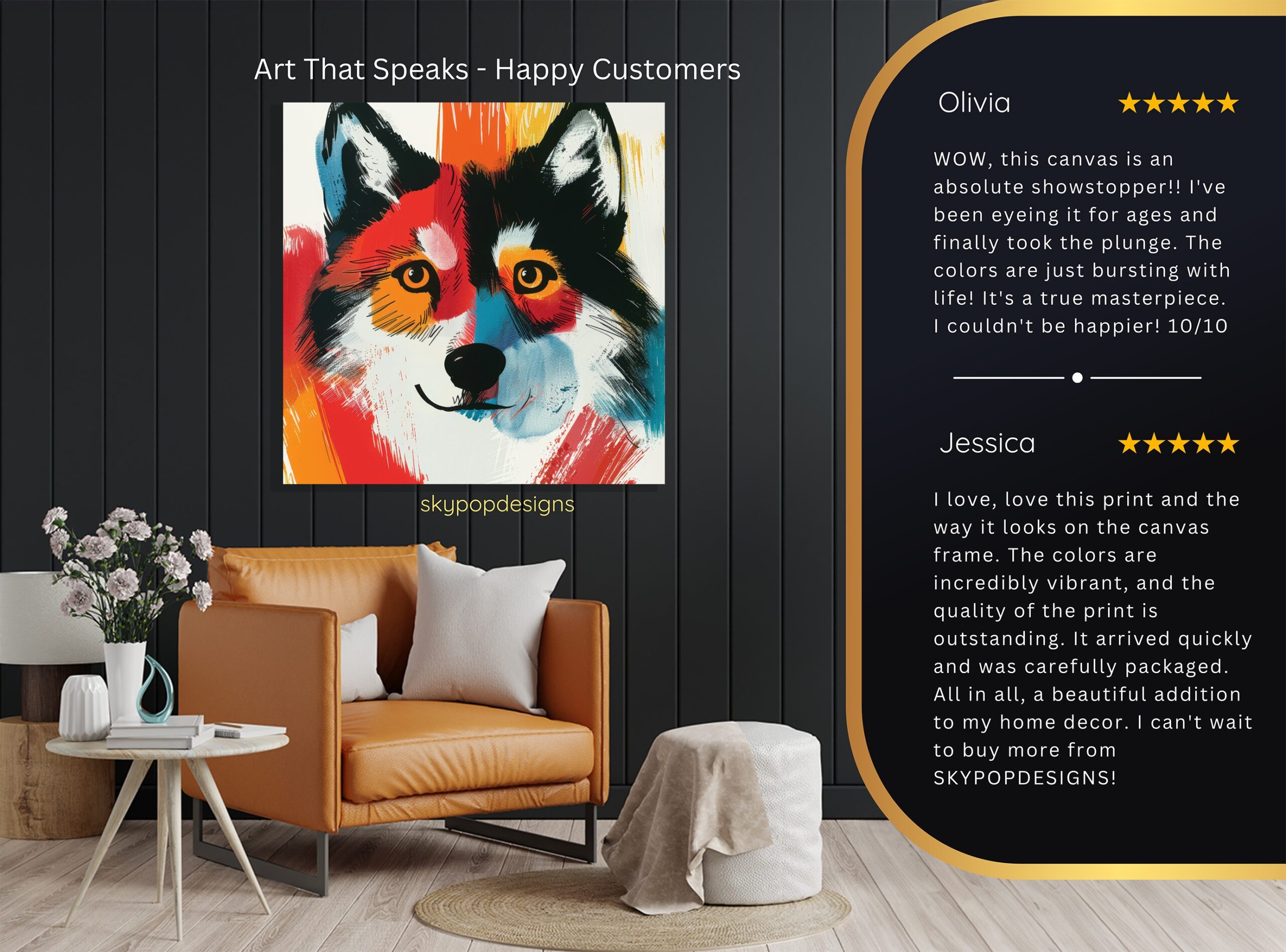 Keywords: abstract art, animal art, contemporary art, modern decor, minimalist decor, living room art, bedroom art, office decor, entryway decor, multicolor art, red art, blue art, orange art, wolf art, abstract wolf art, wolf canvas art, wall art, canvas print, home decor, statement piece, modern wall art, contemporary wall art, living room decor, bedroom decor, office wall art, housewarming gift, unique gift, art for home, vibrant art, animal lover gift